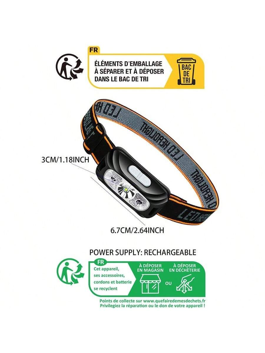 مصباح رأس صغير محمول فائق الخفة مزود بمستشعر حركة - قطعة واحدة