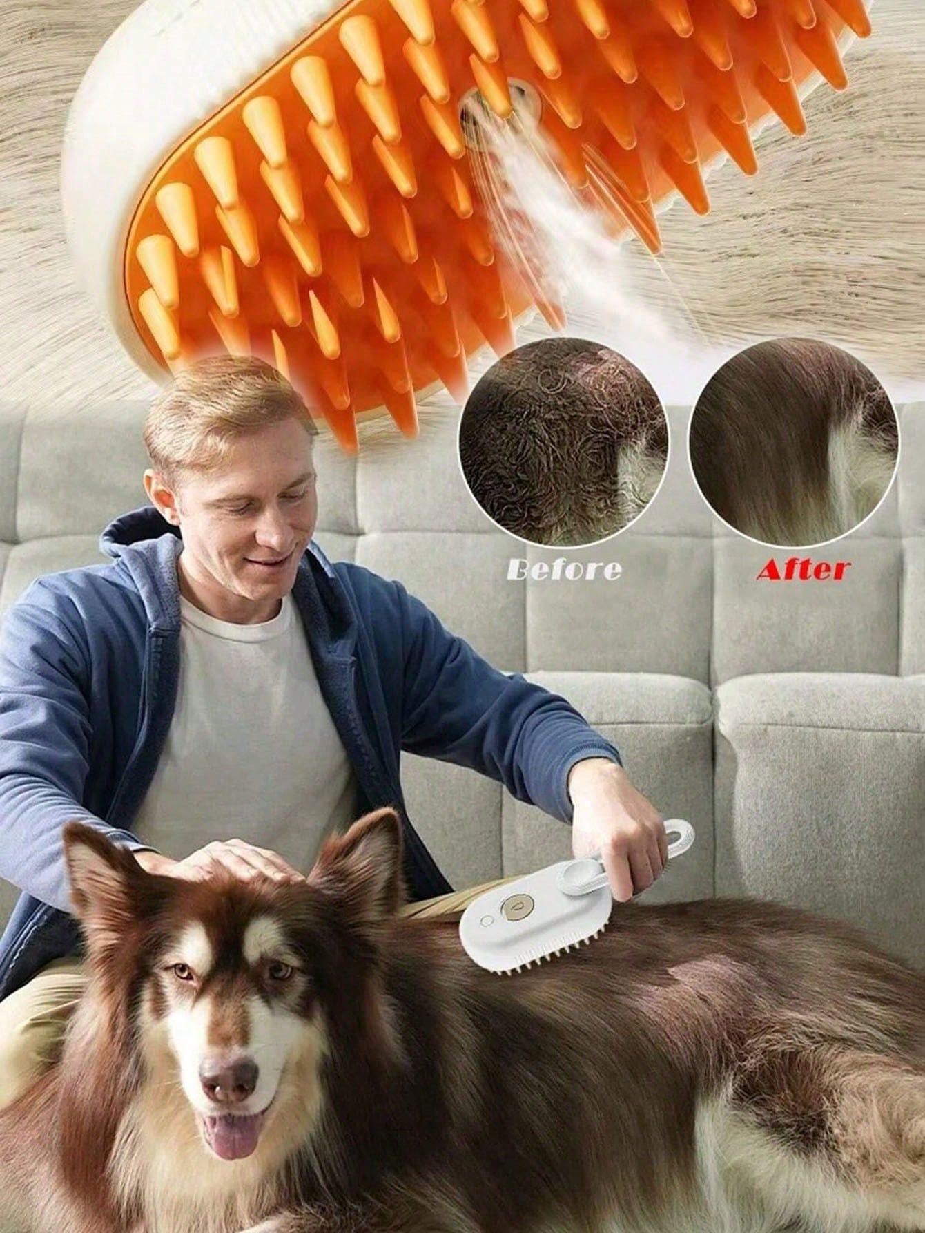 فرشاة تدليك للحيوانات الأليفة قابلة لإعادة الشحن عبر منفذ USB، 3 في 1، بخاخ ماء، مشط كهربائي لإزالة شعر القطط