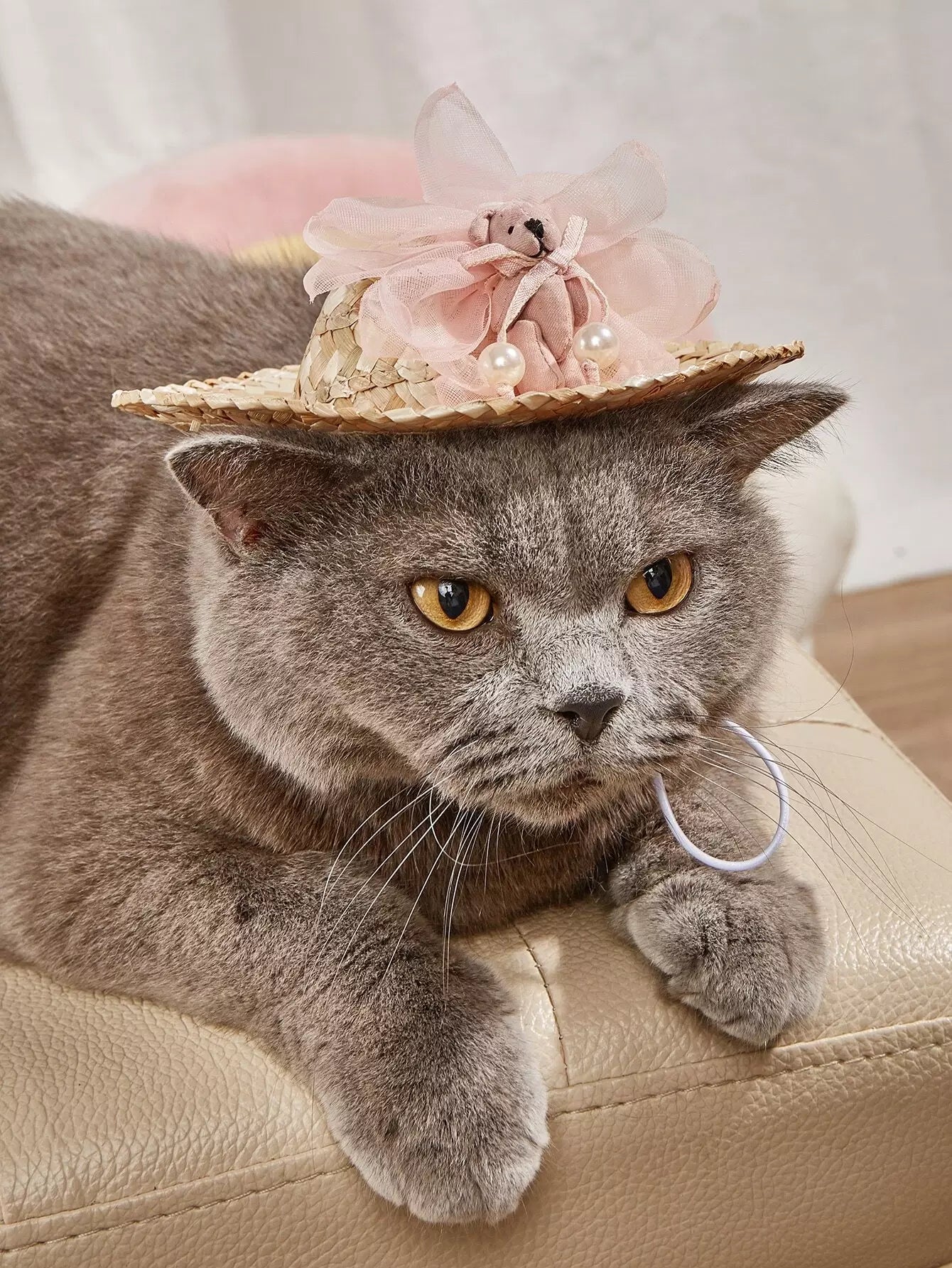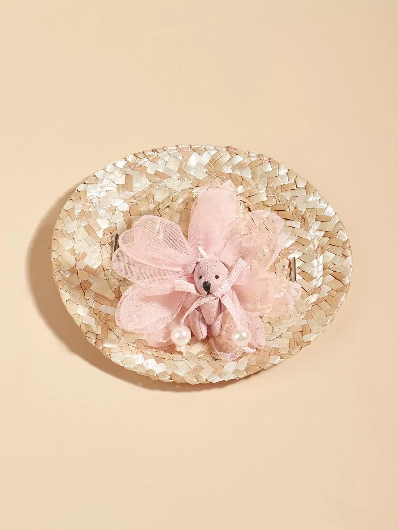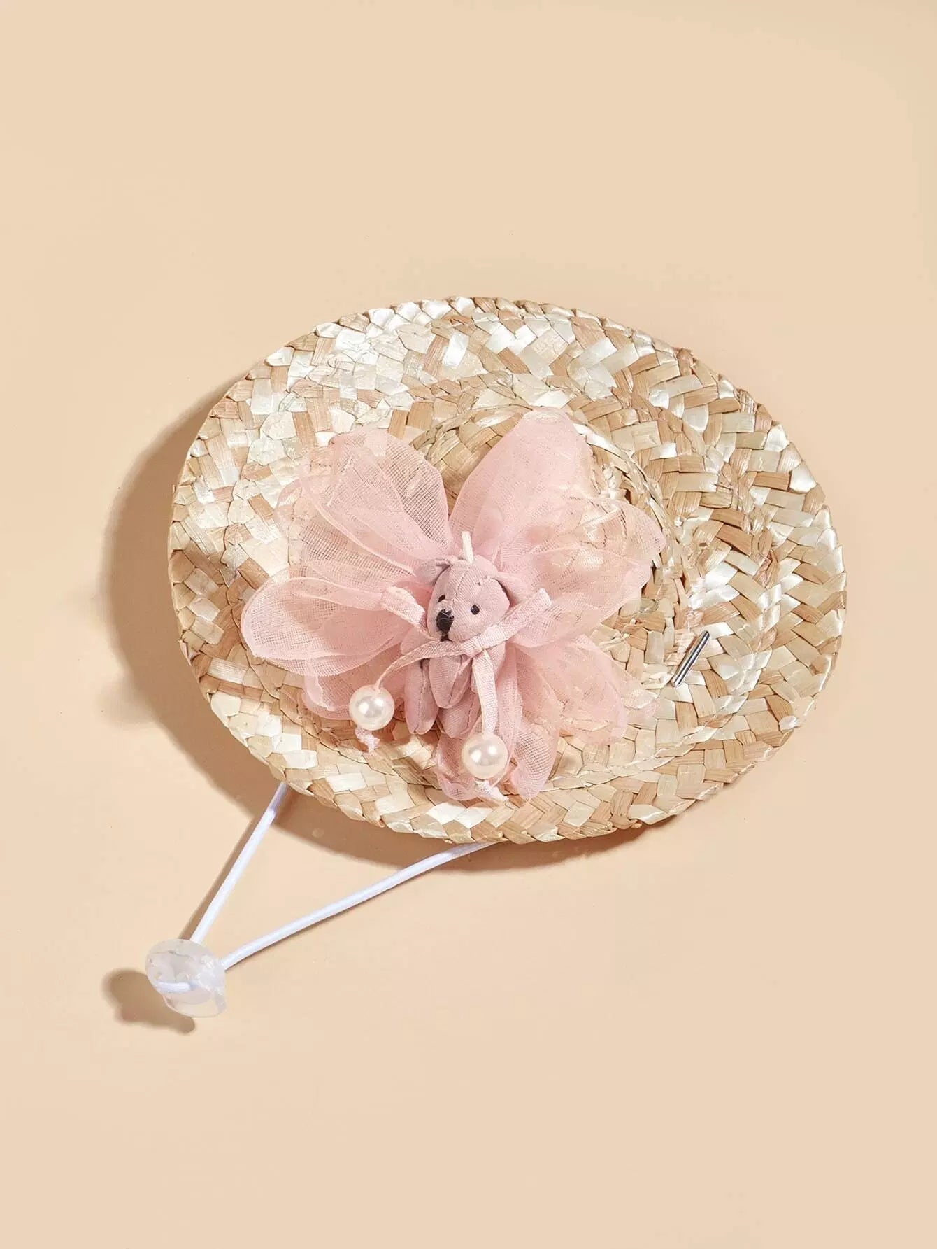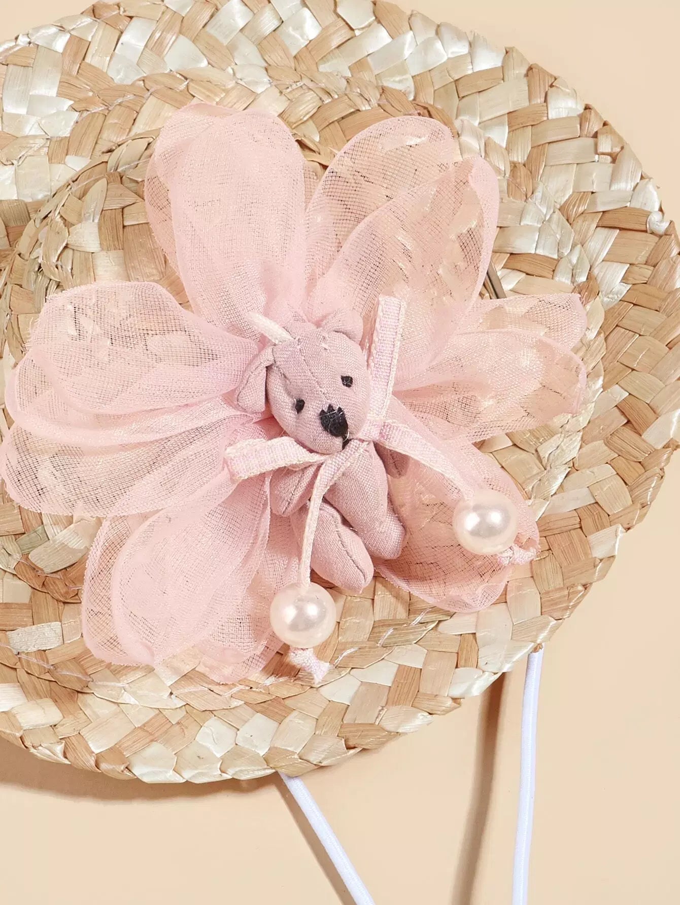 قبعة من القش مزينة بديكور دب من الدانتيل