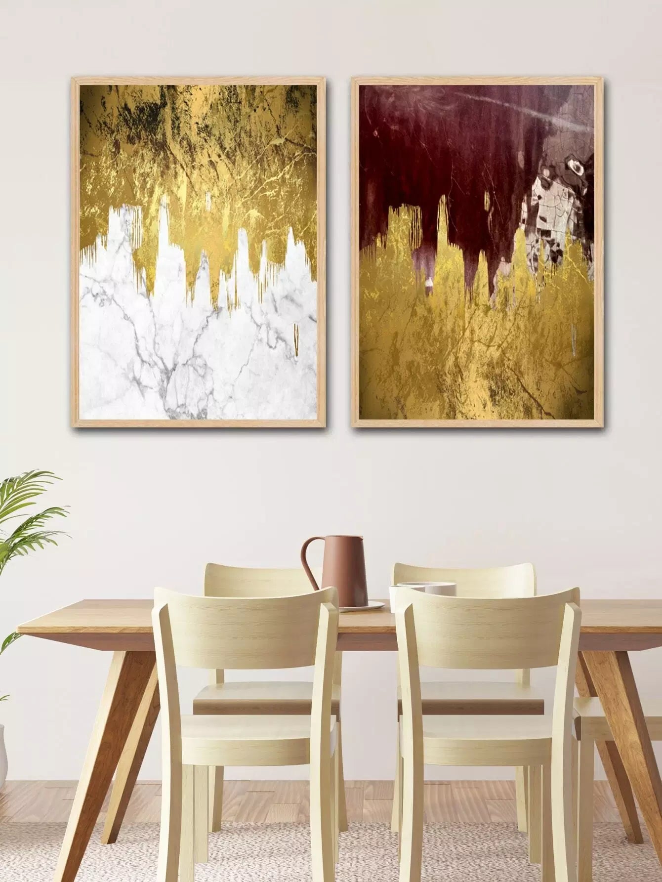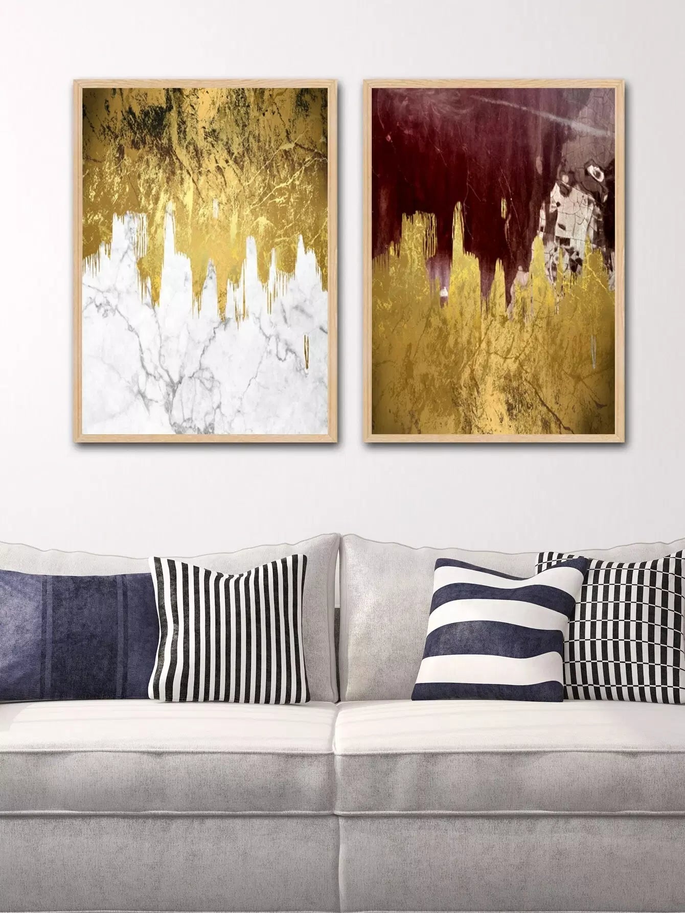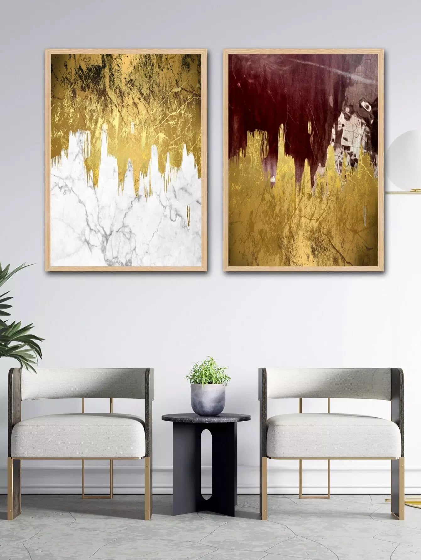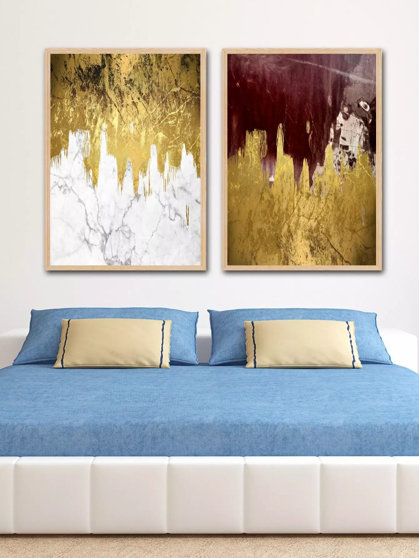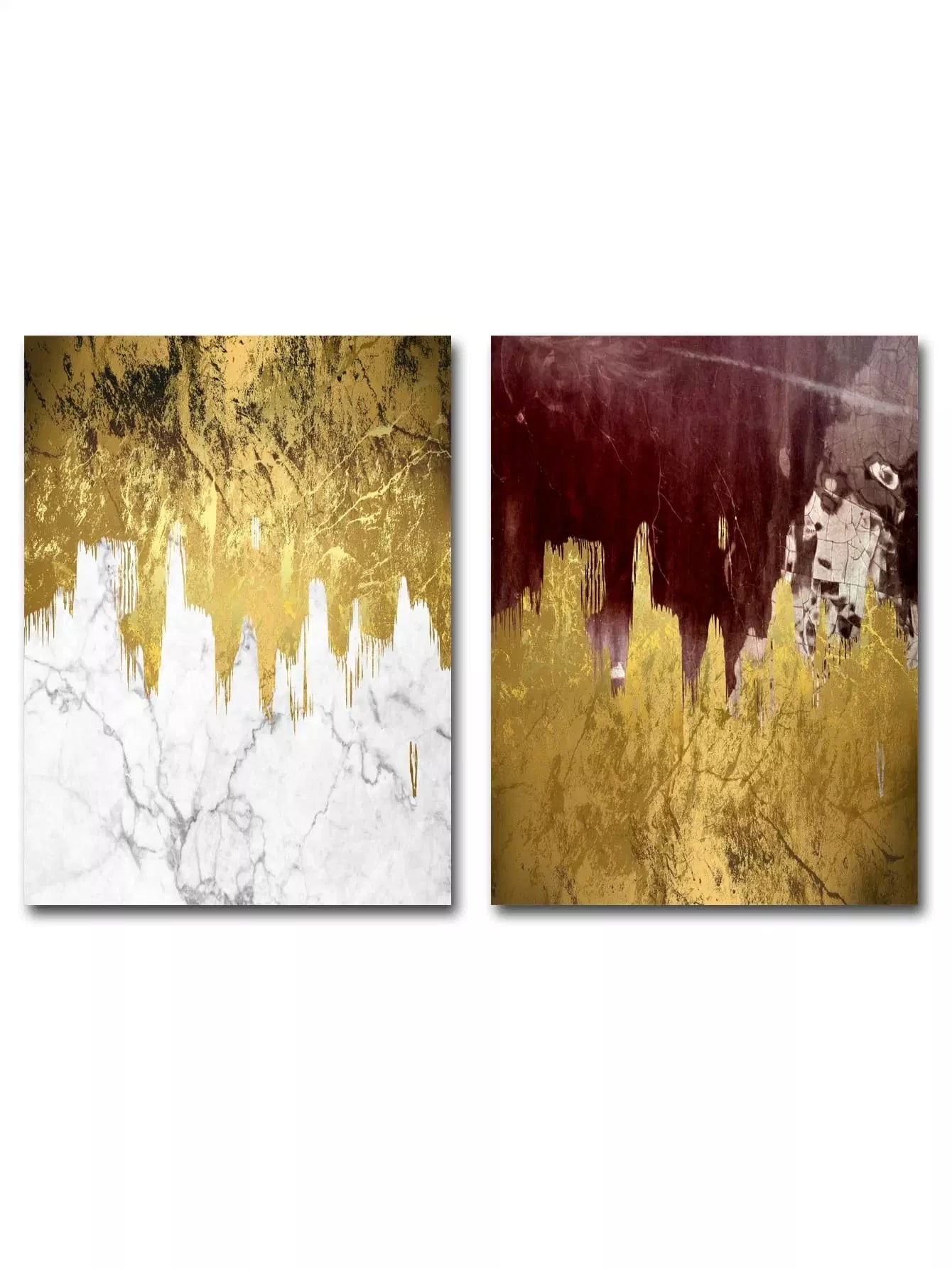 2 قطعة لوحة تجريدية بنمط تجريدي غير مؤطر