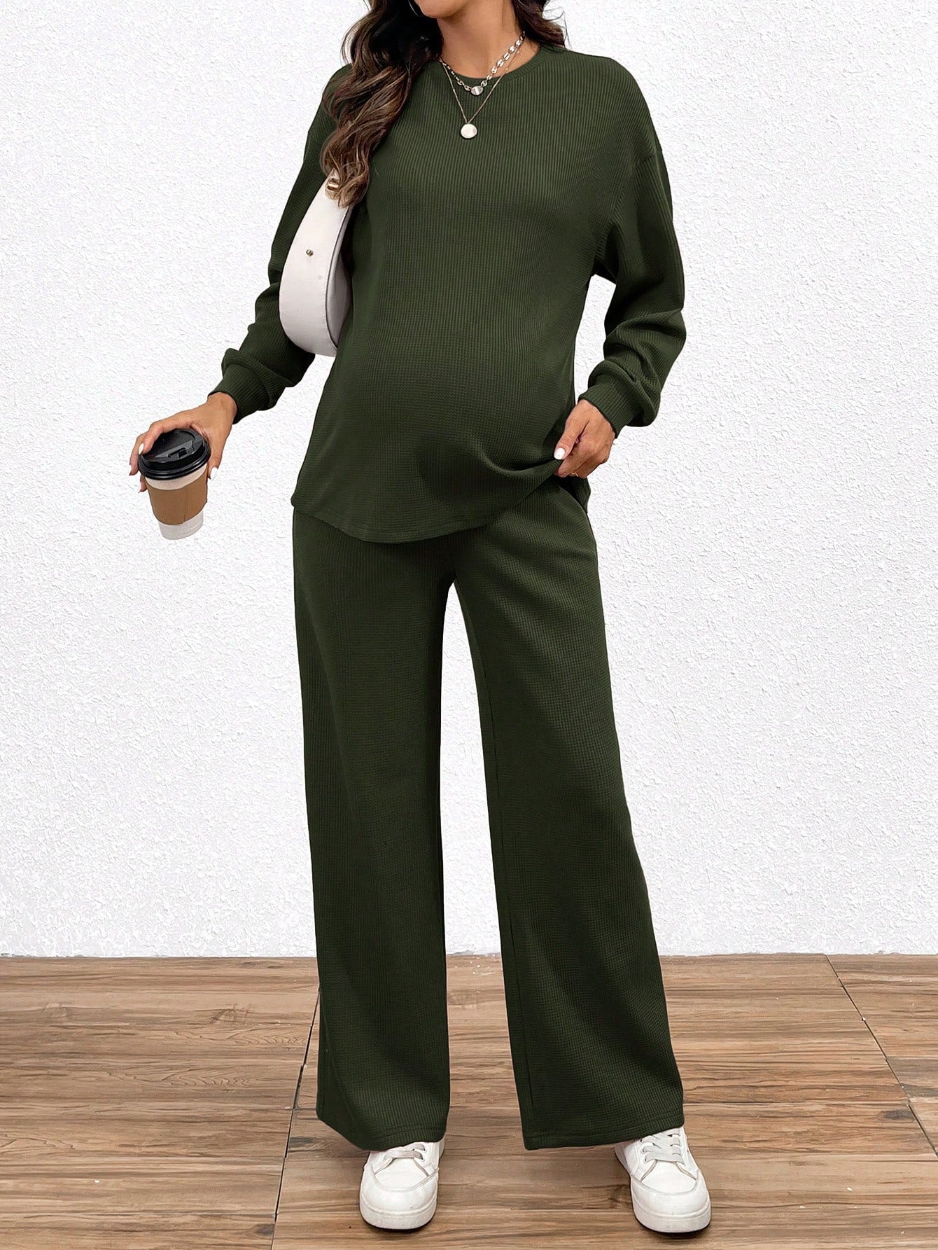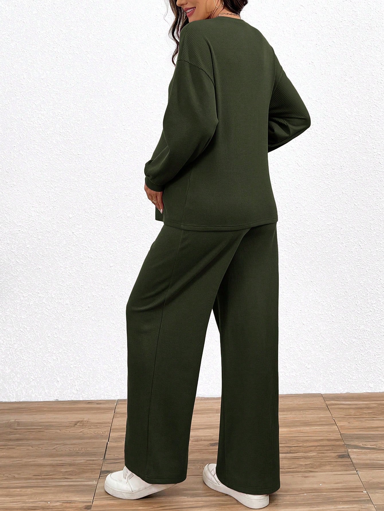 2pcs/Set Maternity Casual Solid Color Long Sleeve Top And Long Pants Set, Autumn