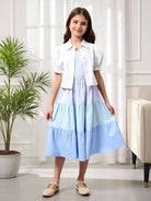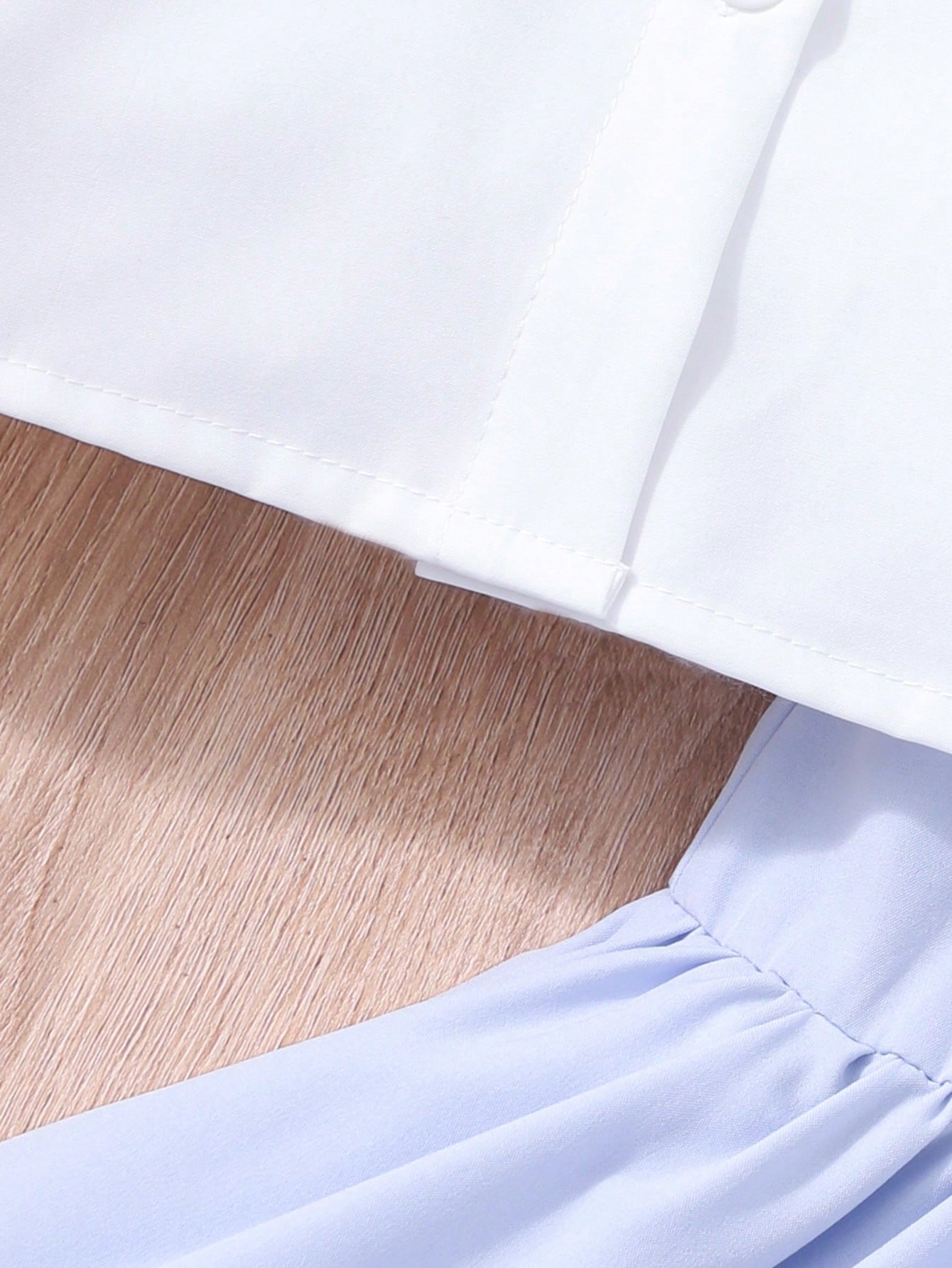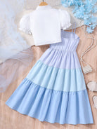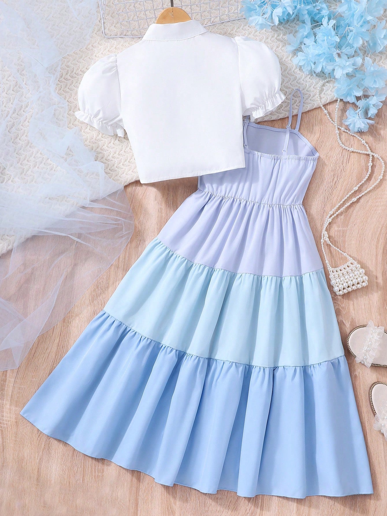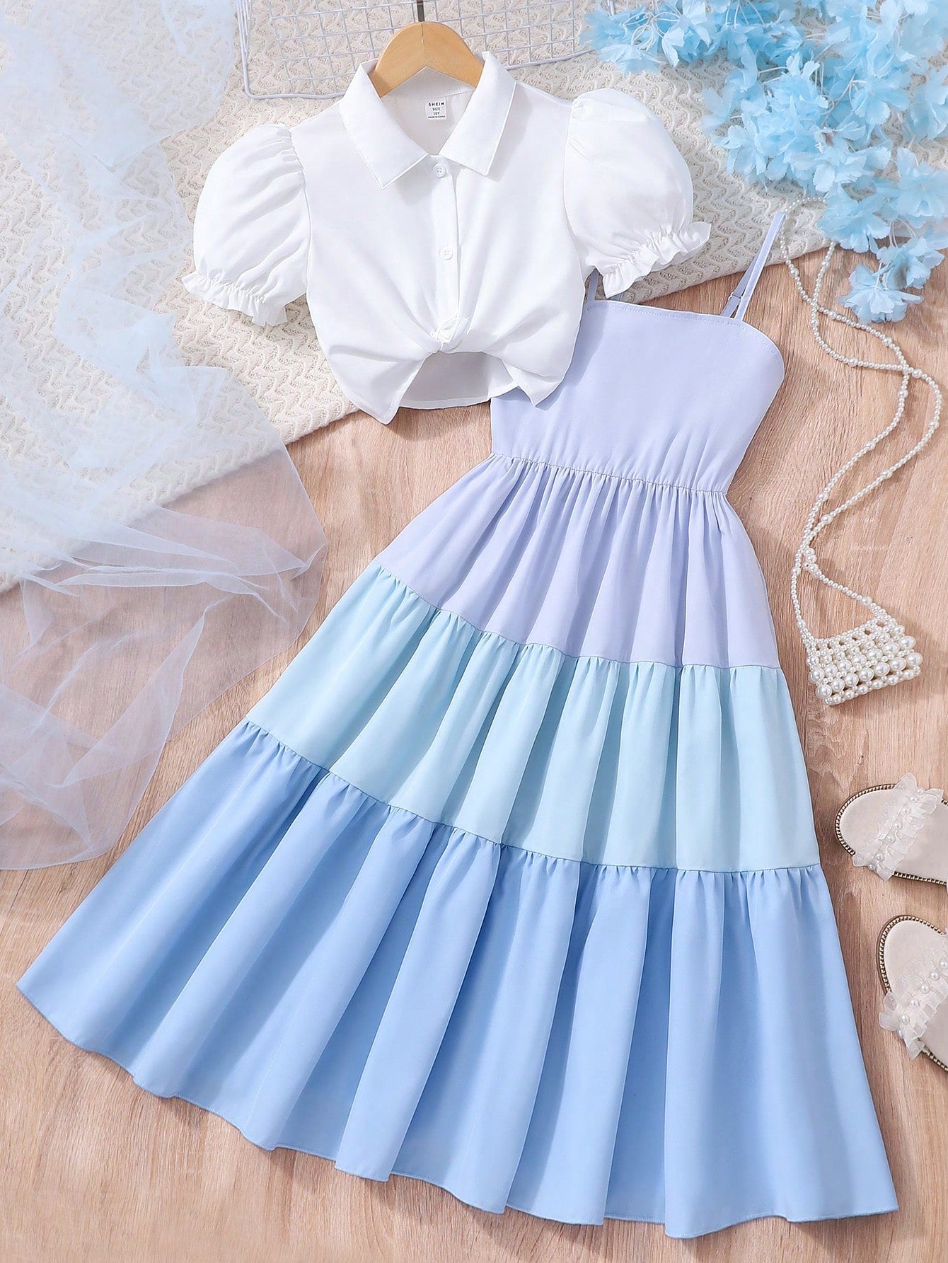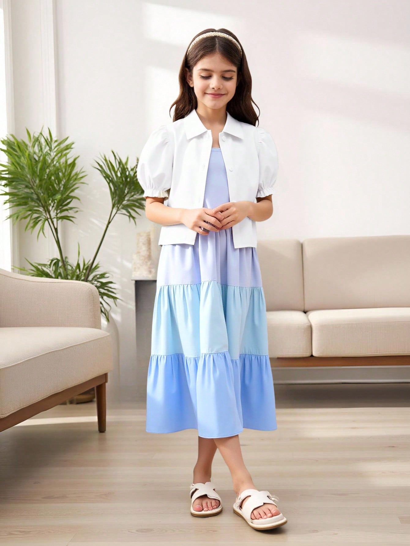2pcs/Set Tween Girls Casual Light Shirt + Ombre Camisole Dress Summer Outfits,Holiday,Summer,Travel