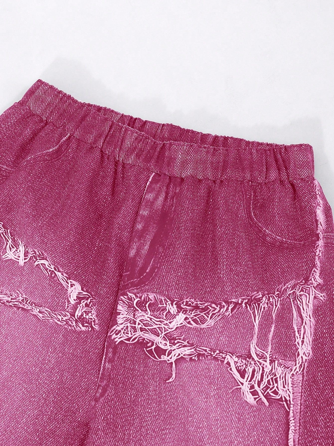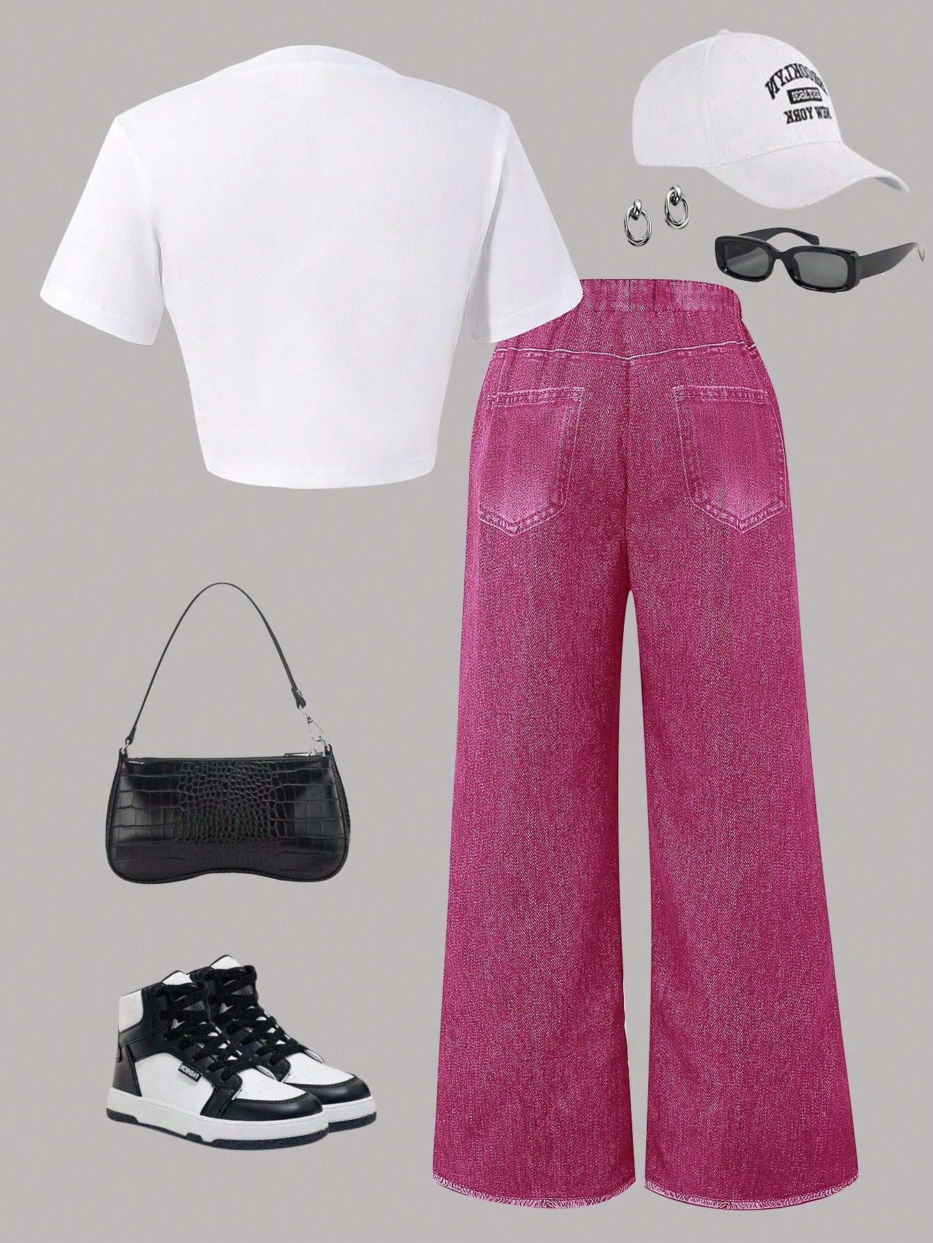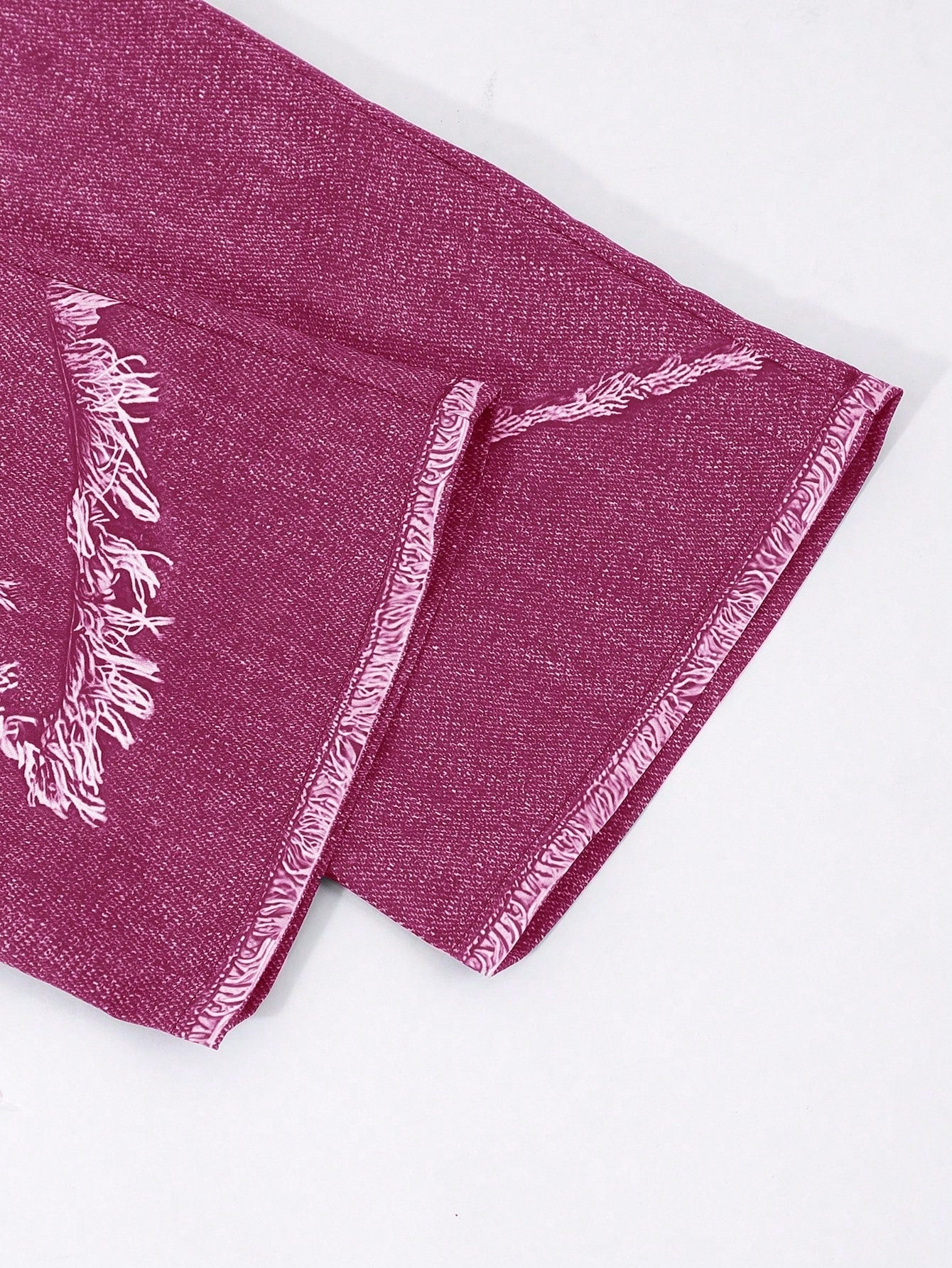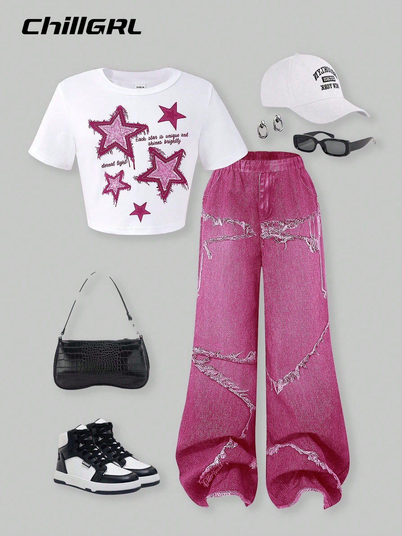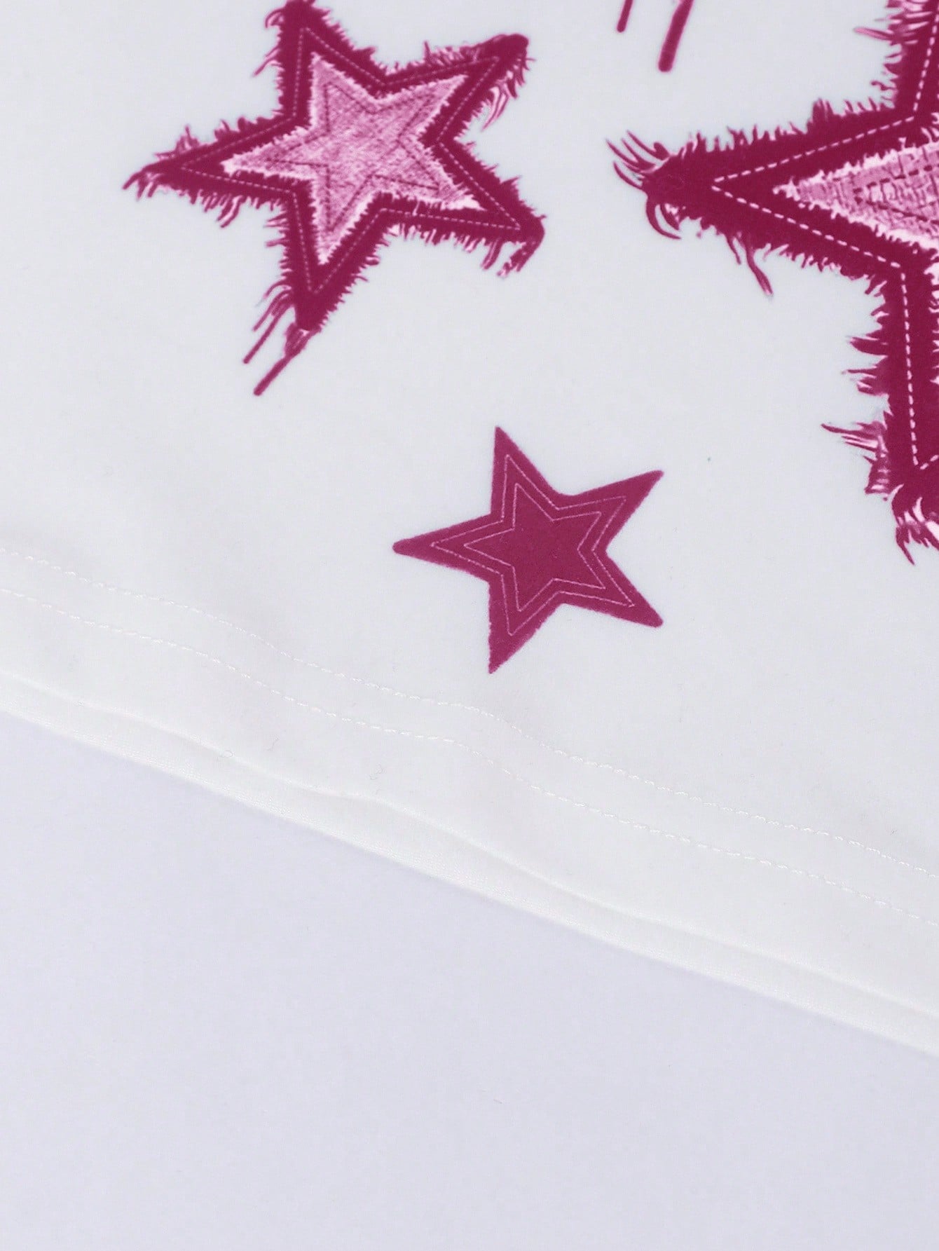 Explorewe 2pcs Girls Street Chic Casual Versatile Baddie Style Star Pattern Applique Fitted Short Knit