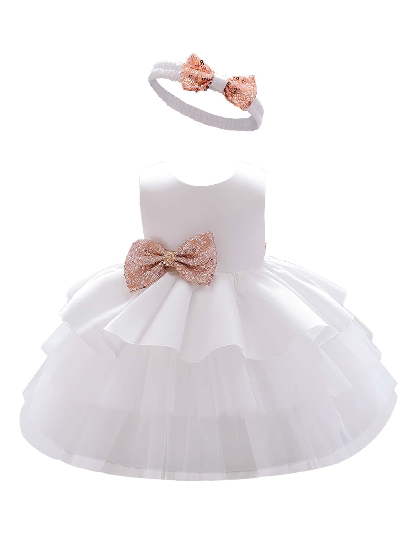 Toddler Girls Big Bow Layered Mesh Dress With Headband