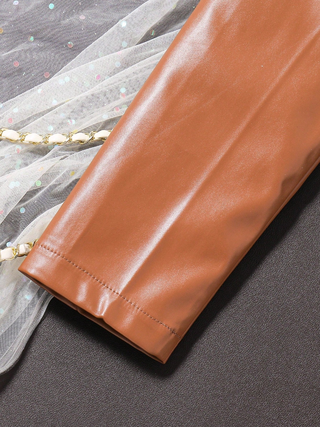 جاكيت من الجلد الصناعي بأكمام طويلة مع فستان شبكي للبنات المراهقات، طقم من قطعتين، للشتاء