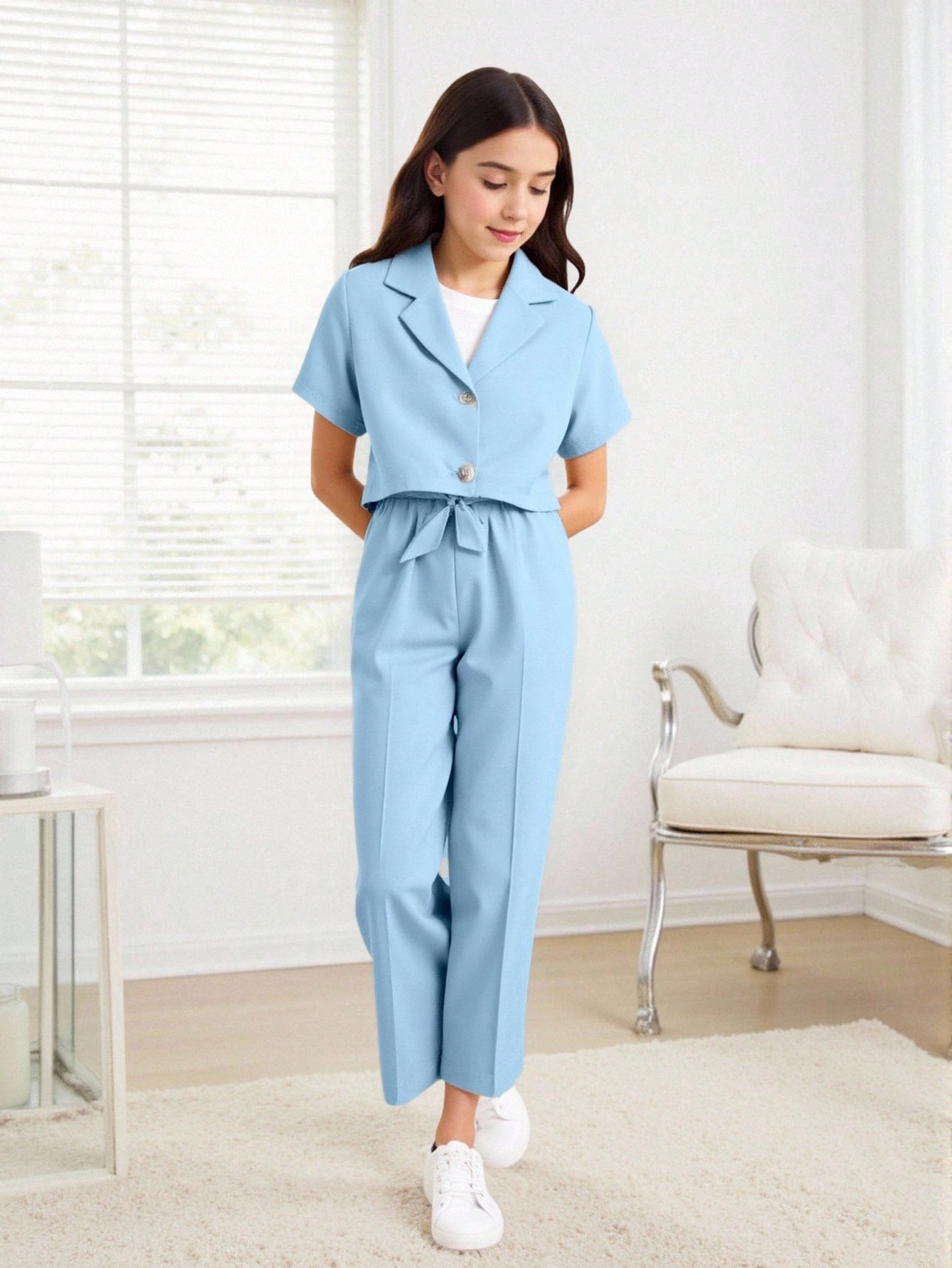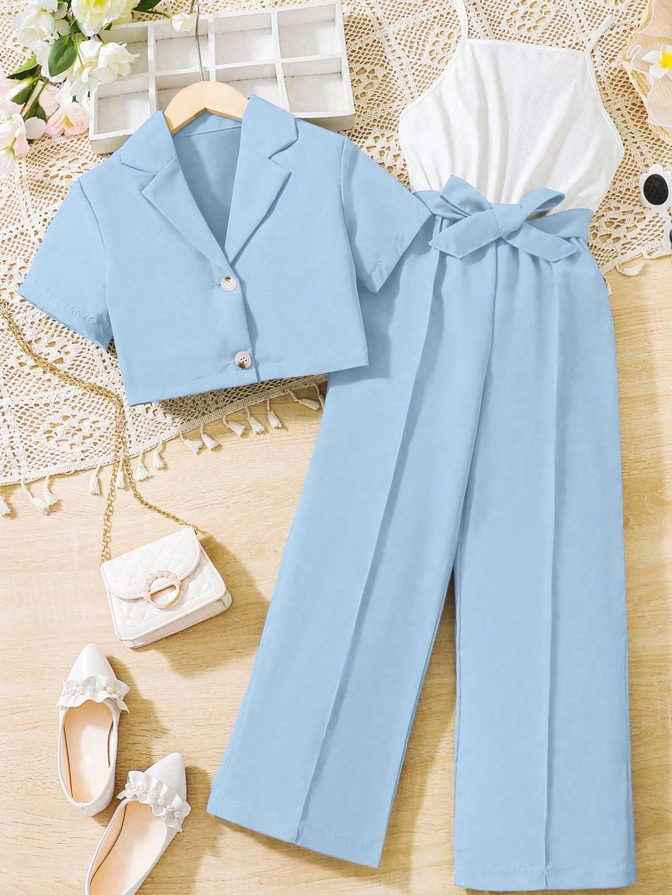 Tween Girl Two Tone Cami Jumpsuit & Lapel Neck Crop Jacket