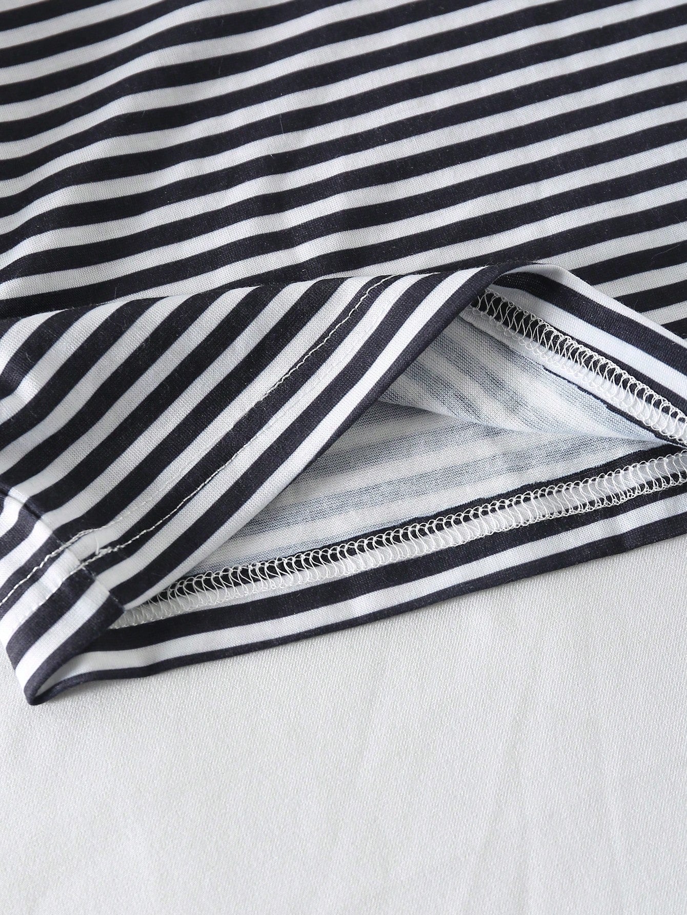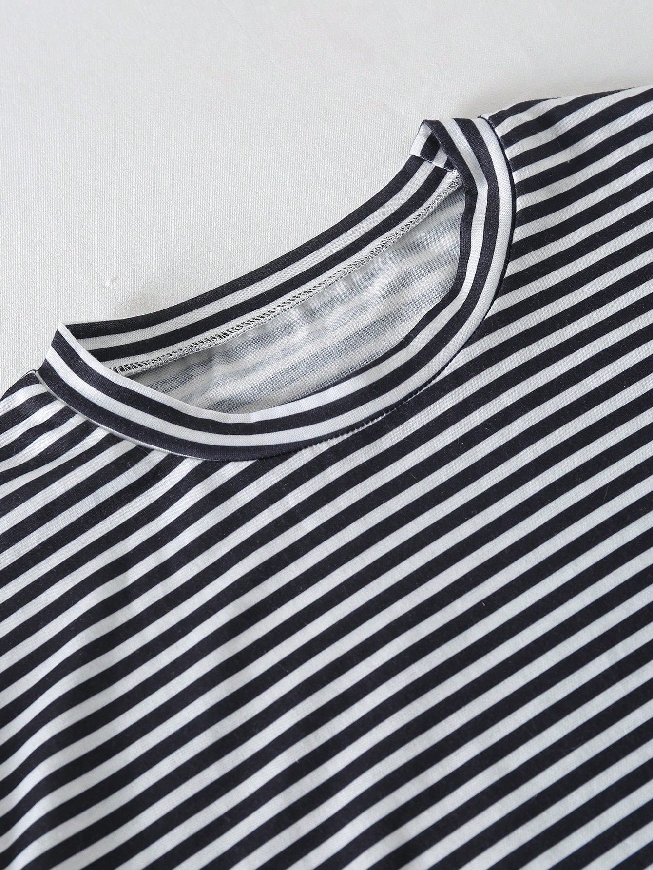تي شيرت مخطط فضفاض بأكمام منسدلة للفتيات المراهقات، مع حمالة صدر متوسطة الطول بلون سادة وخصر مرتفع