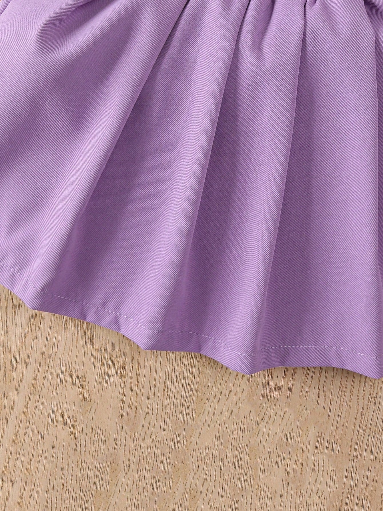 سترة بأكمام طويلة وأزرار أمامية ملونة وياقة بيسبول للفتيات الصغيرات + خصر مطاطي بنفسجي مطوي