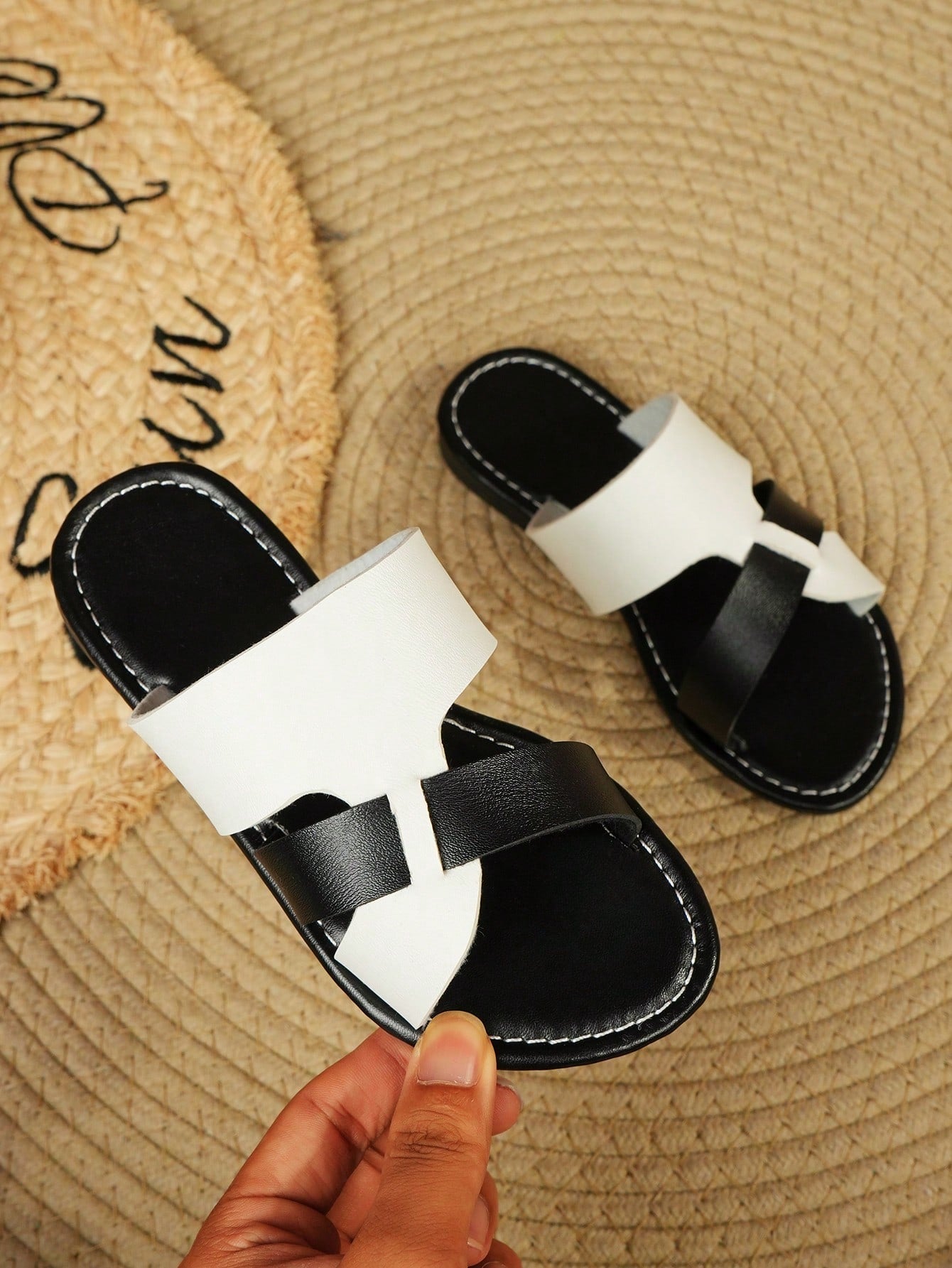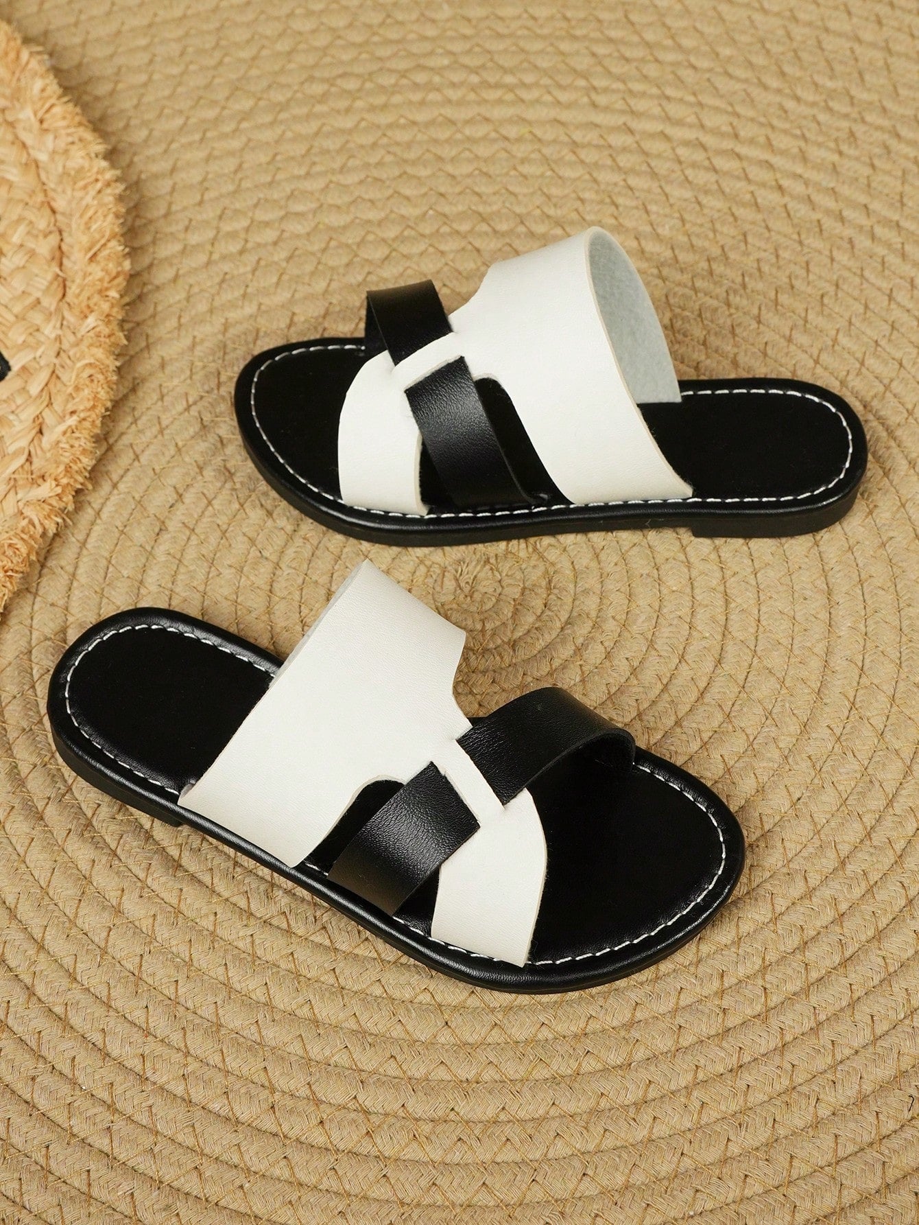 نعال شاطئ أنيقة للأطفال، مفتوحة الأصابع، بلون واحد، مسطحة، غير قابلة للانزلاق، لطيفة