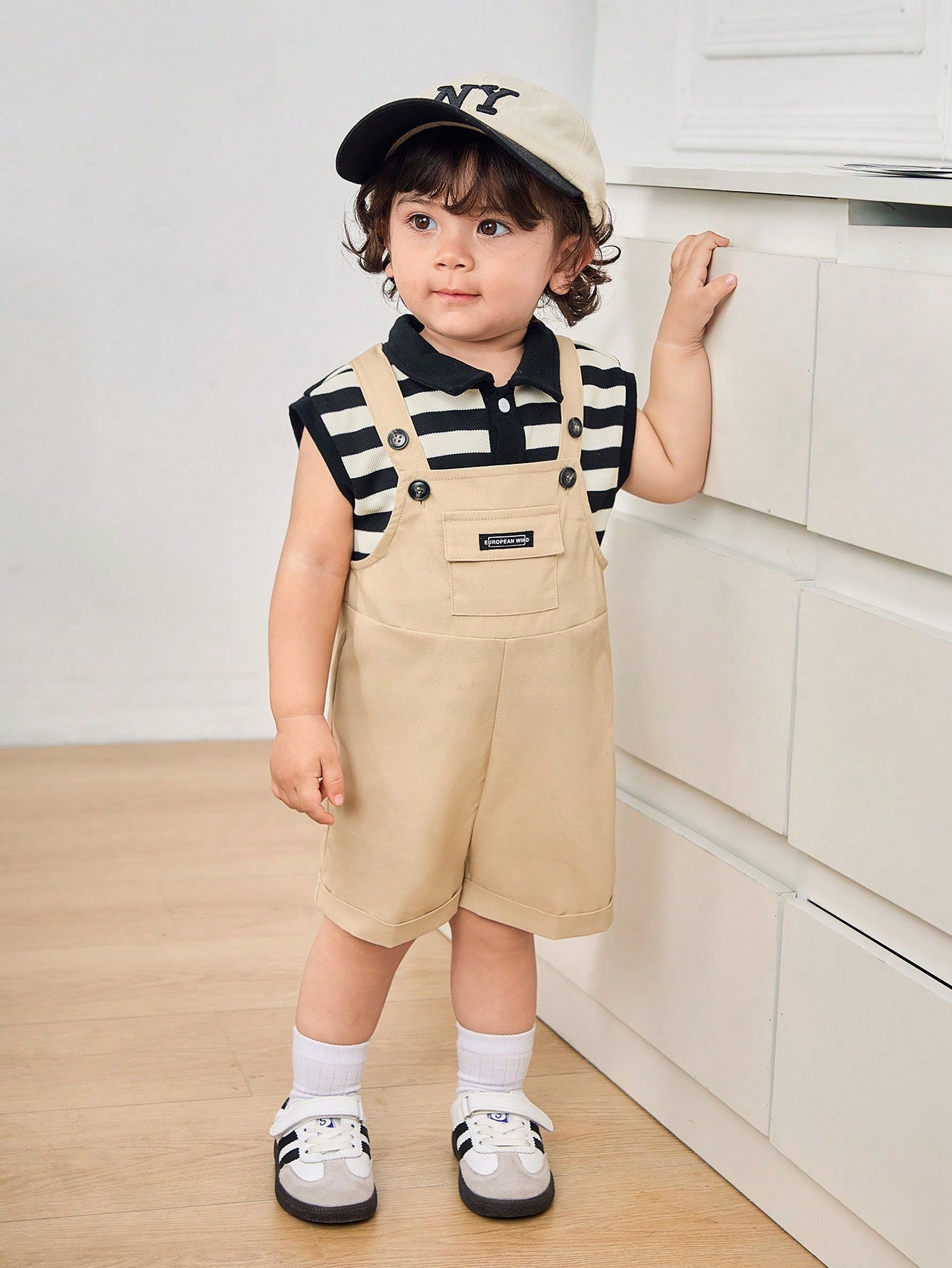 Casual Versatile Cargo Pocket Overalls/Shortalls For Baby Boys & Baby Girls, Suitable For Birthday Parties,