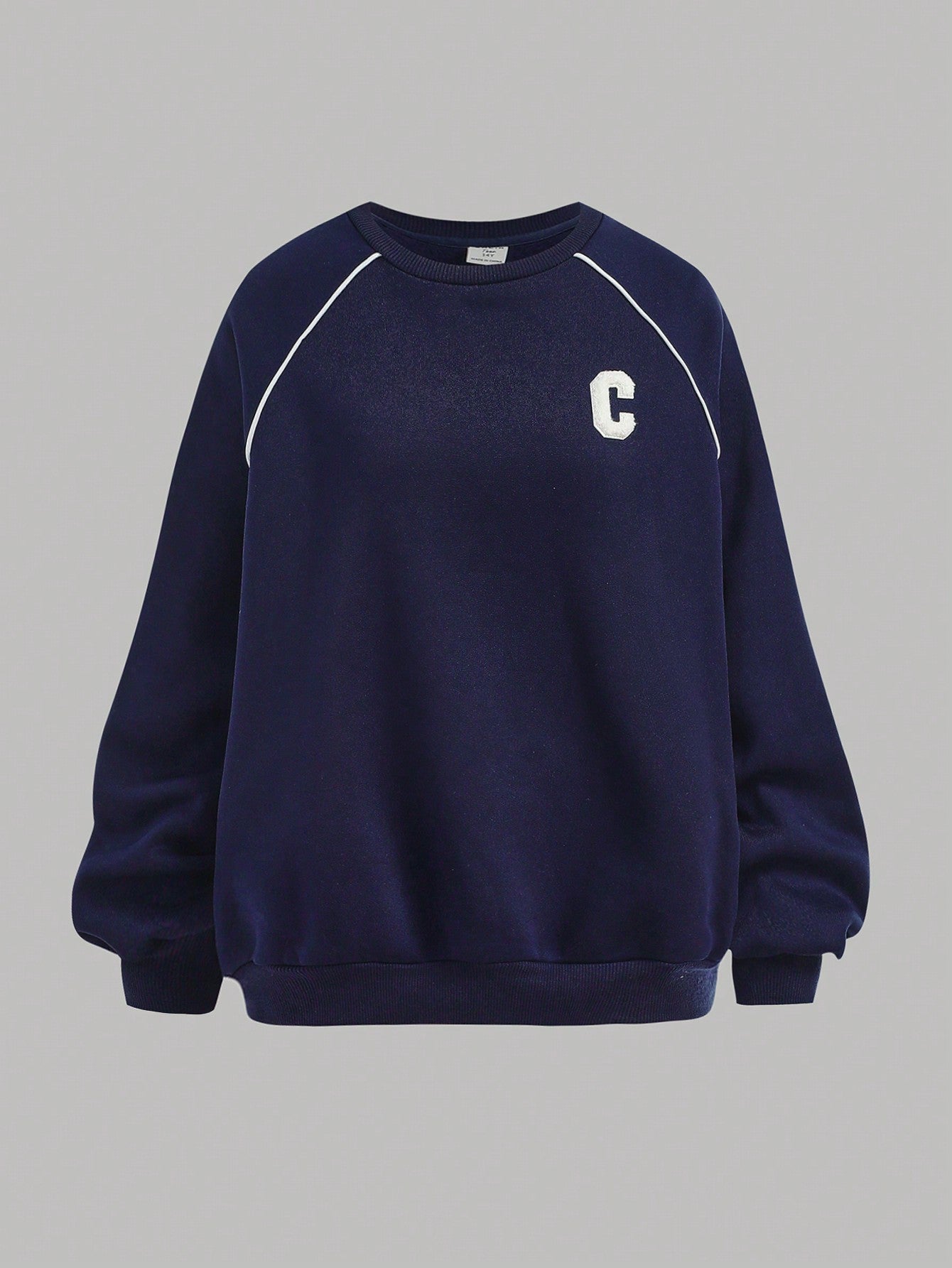 مجموعة ملابس للفتيات المراهقات مكونة من 3 قطع/مجموعة بقلنسوة بأكمام طويلة وحواف متباينة اللون ورسومات الحروف وقميص داخلي وبنطال رياضي