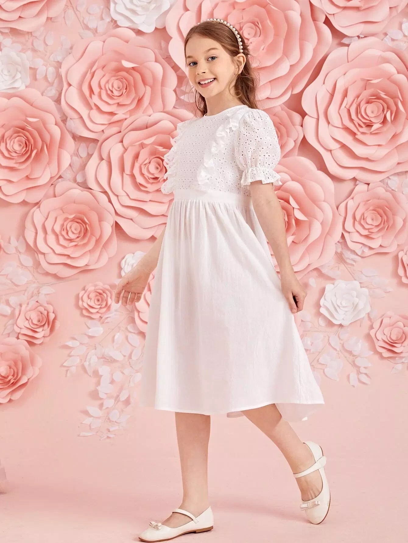 فستان شيفي بودي بحواف مكشكشة للبنات مكون من قطعة واحدة