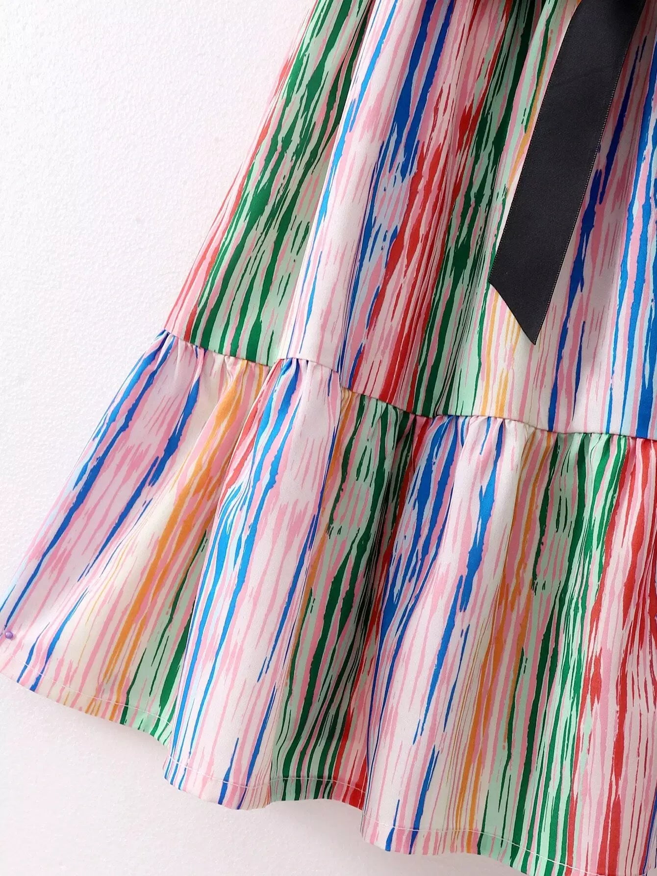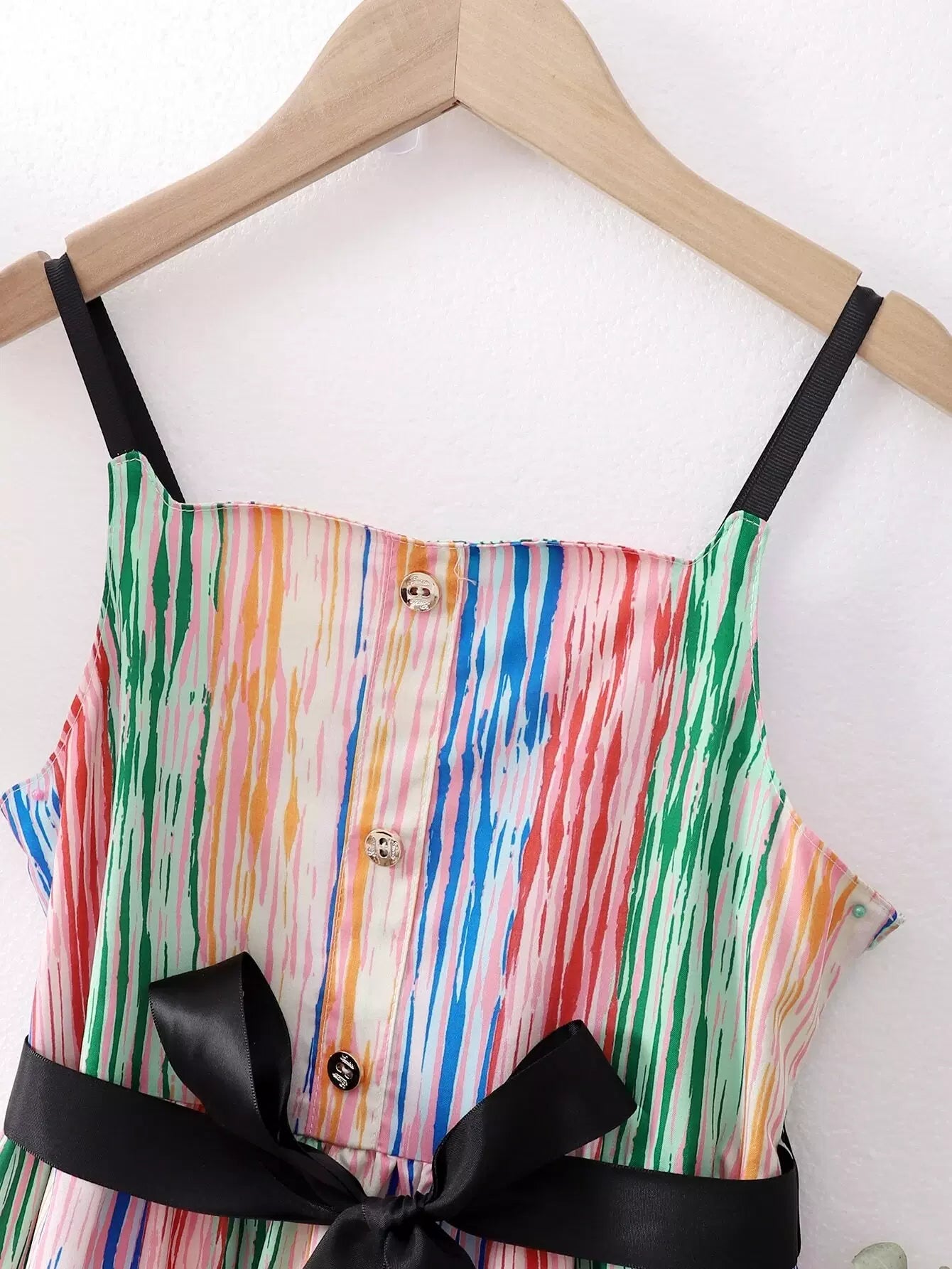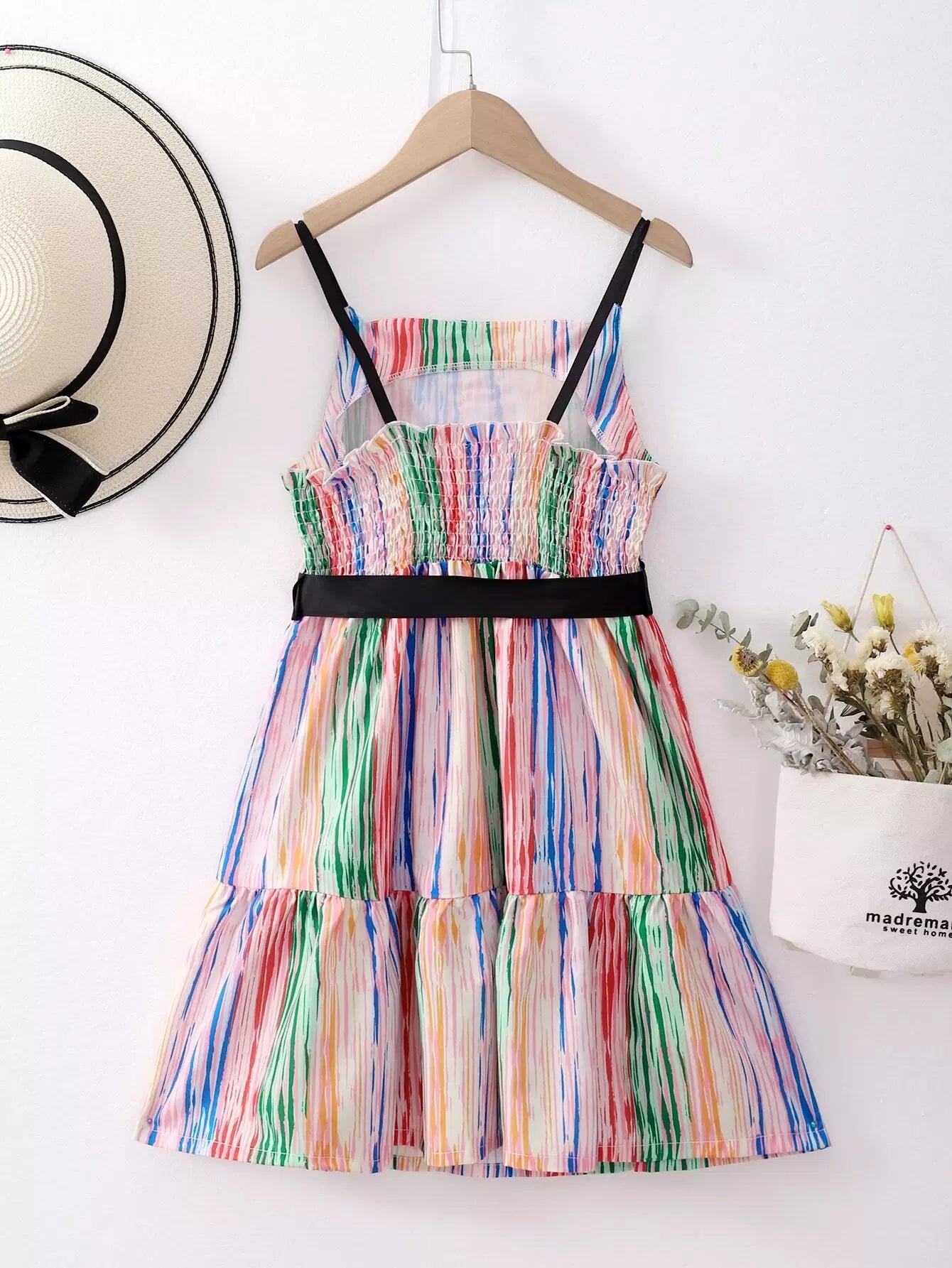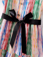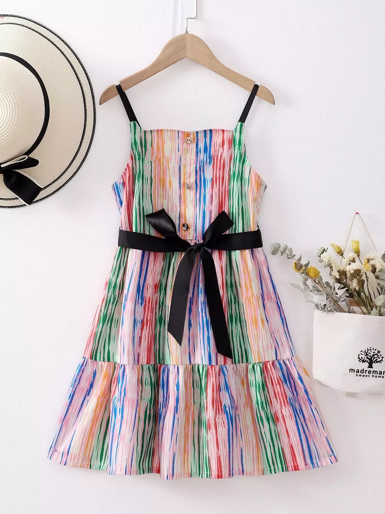 فستان بناتي كامي ملون من الخلف بشريط ملون للبنات