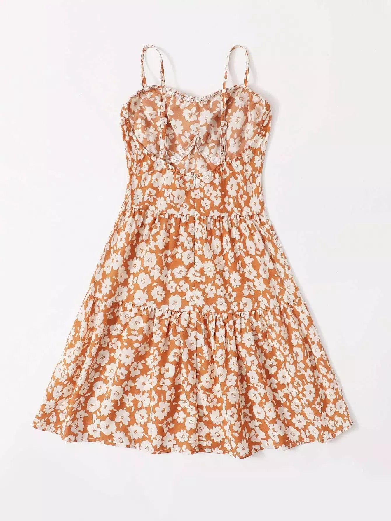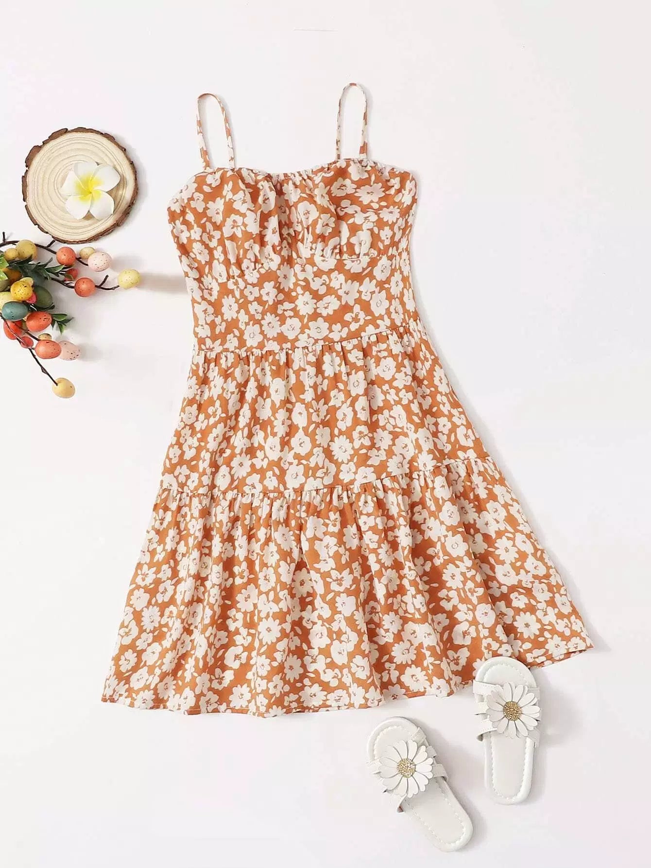 فستان صيفي للبنات مع كشكشة على الصدر وحاشية مكشكشة