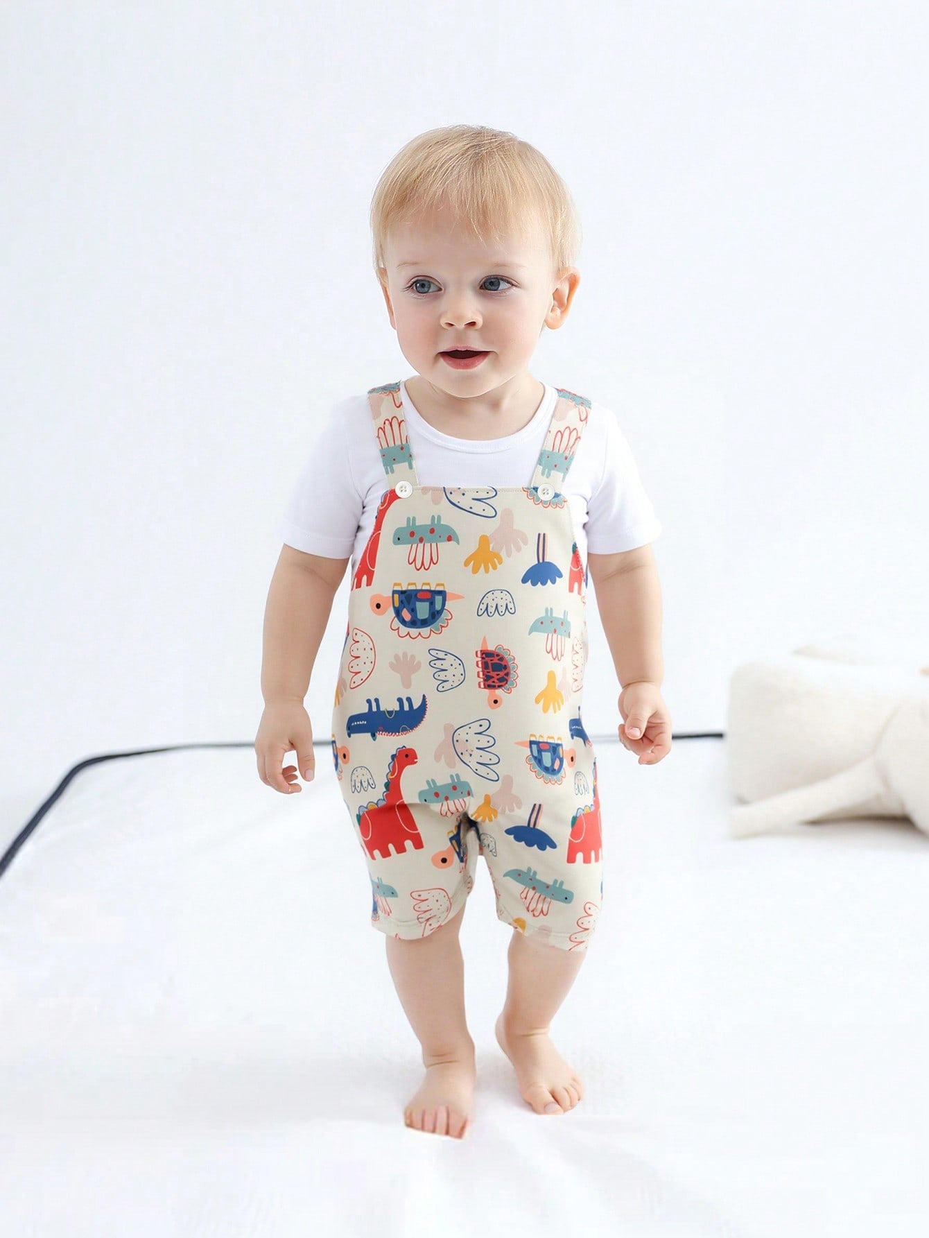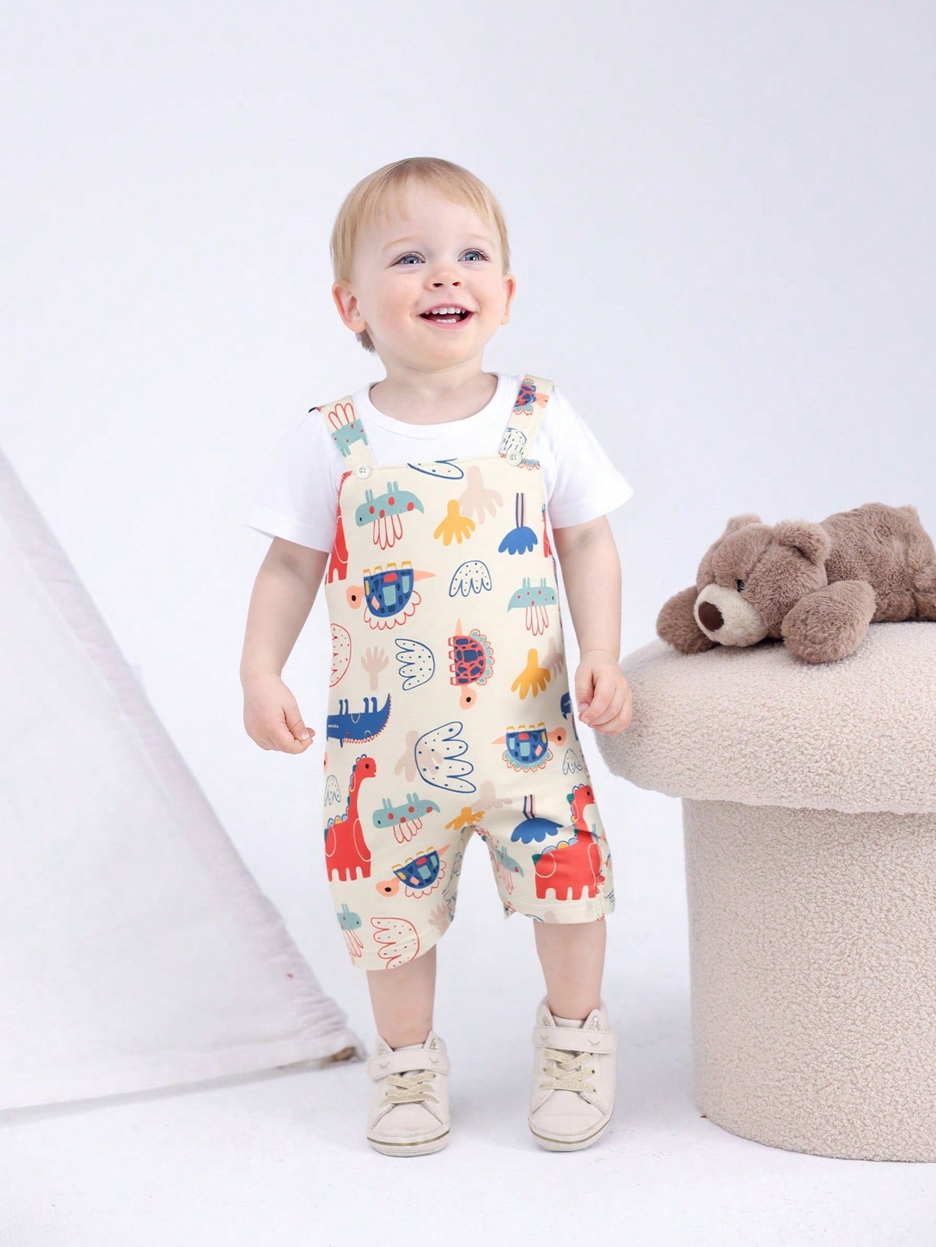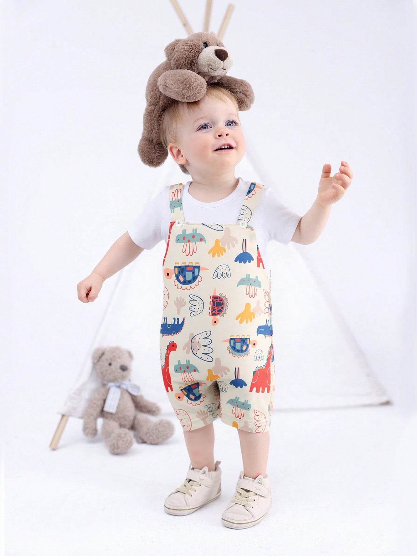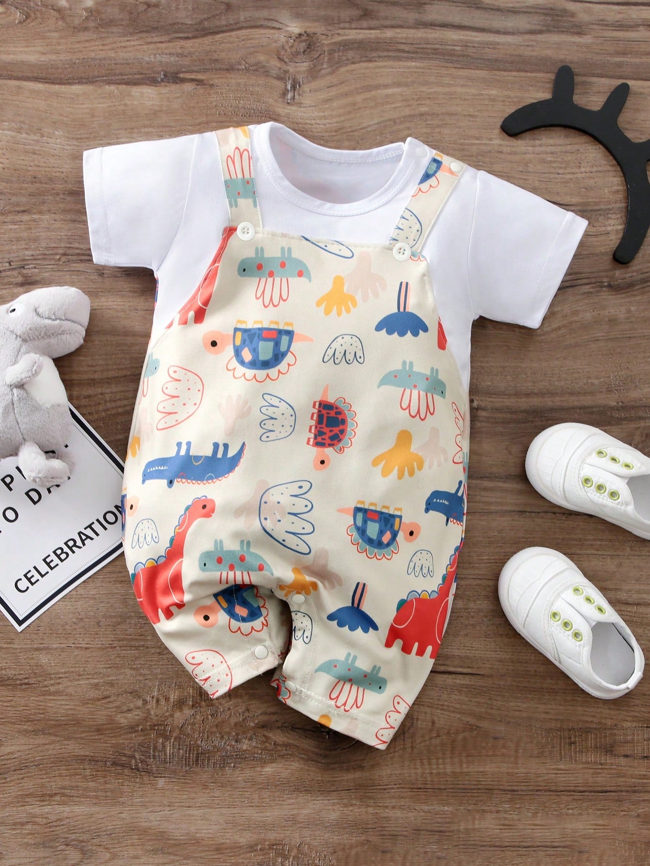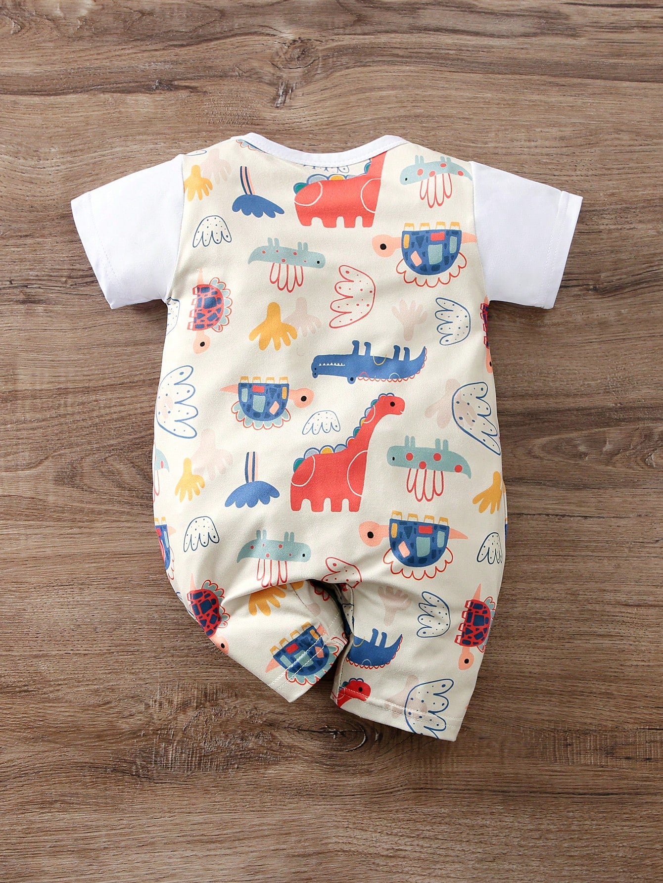 Infant Summer Short Sleeve Cute Dinosaur Pattern Romper, Comfortable Fabric Easy Care Indoor & Outdoor