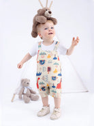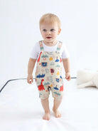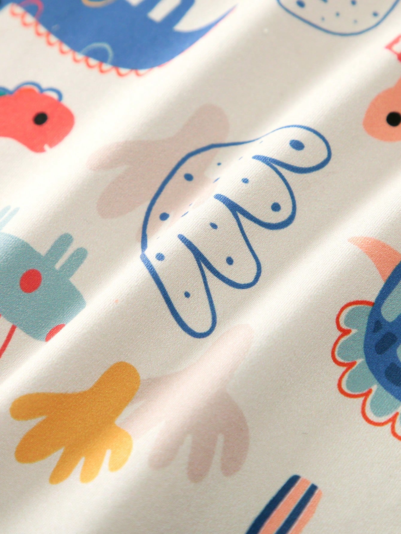 رومبر صيفي للأطفال بأكمام قصيرة ونمط ديناصور لطيف، مصنوع من قماش مريح وسهل العناية به في الأماكن المغلقة والمفتوحة