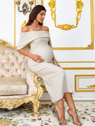 Pregnant Women Solid Color Open Shoulder Bodycon Elegant Dress Maternity Dress