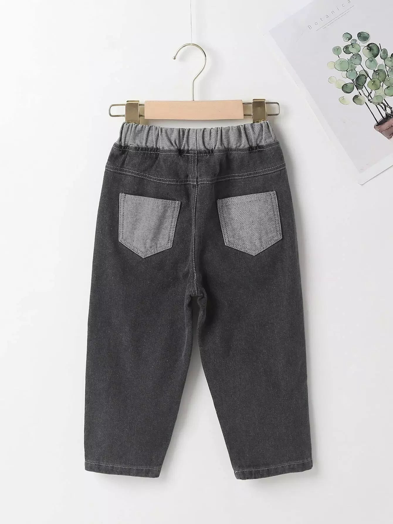بنطلون جينز بجيوب مائلة ملونة للأولاد الصغار