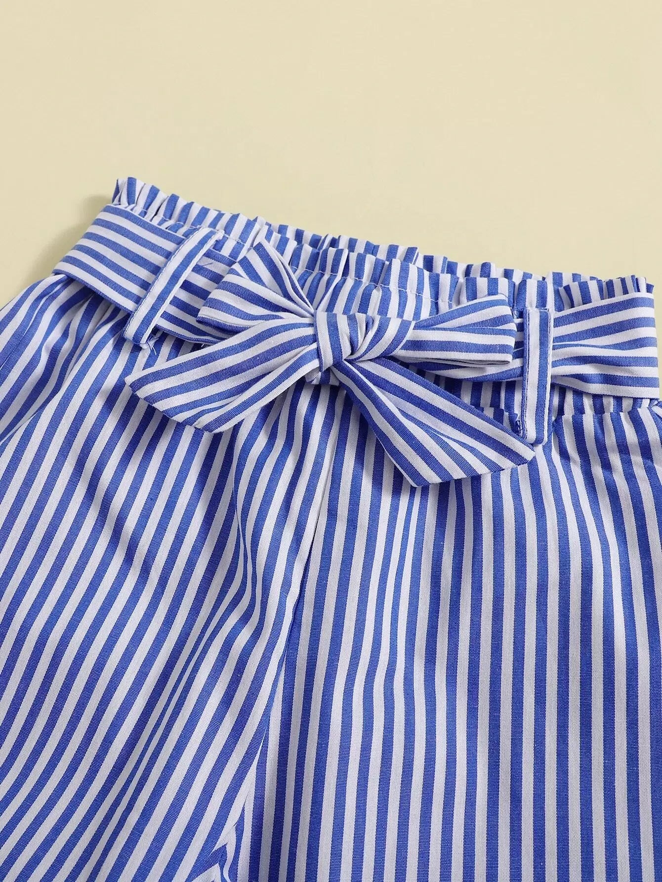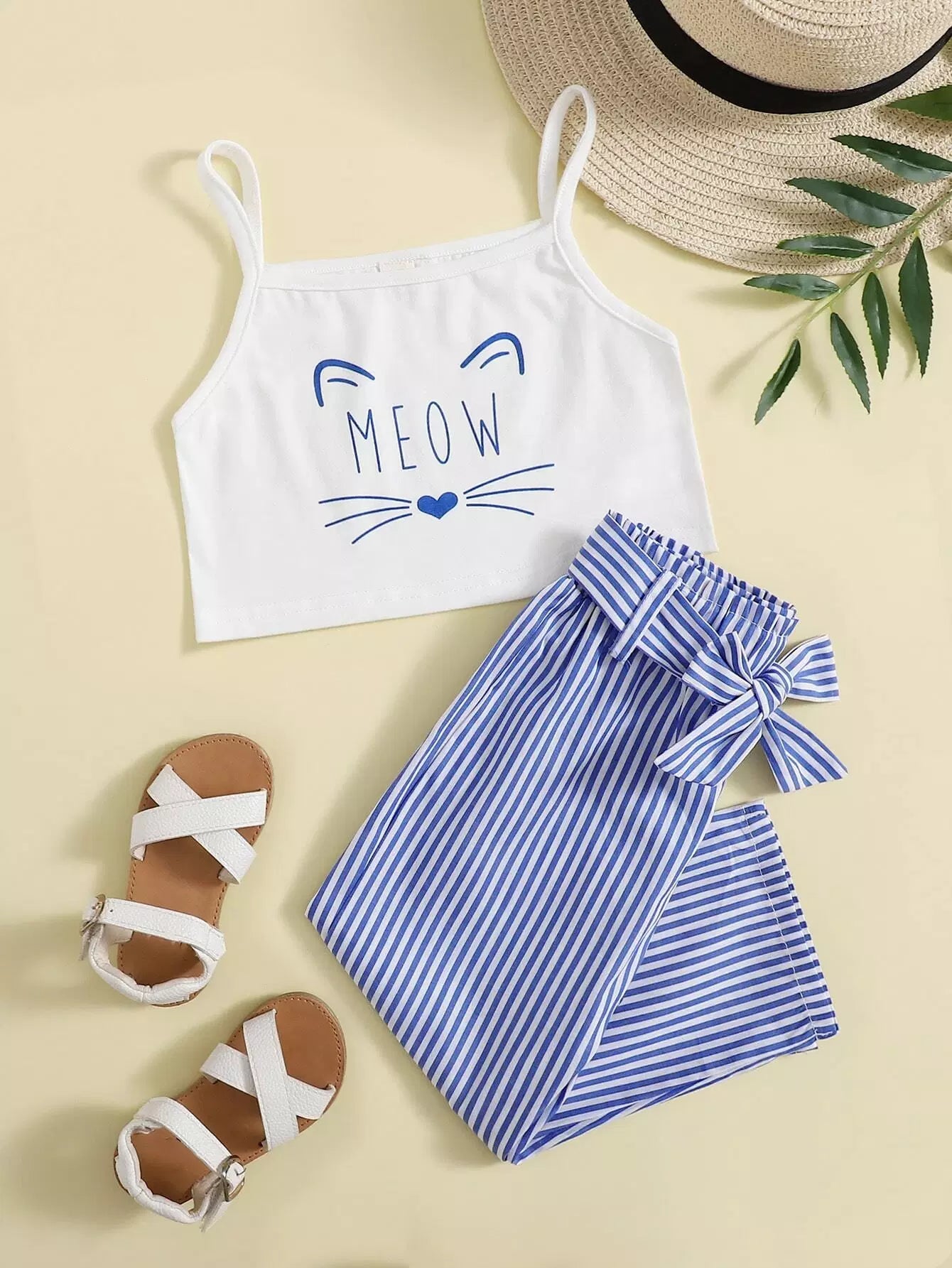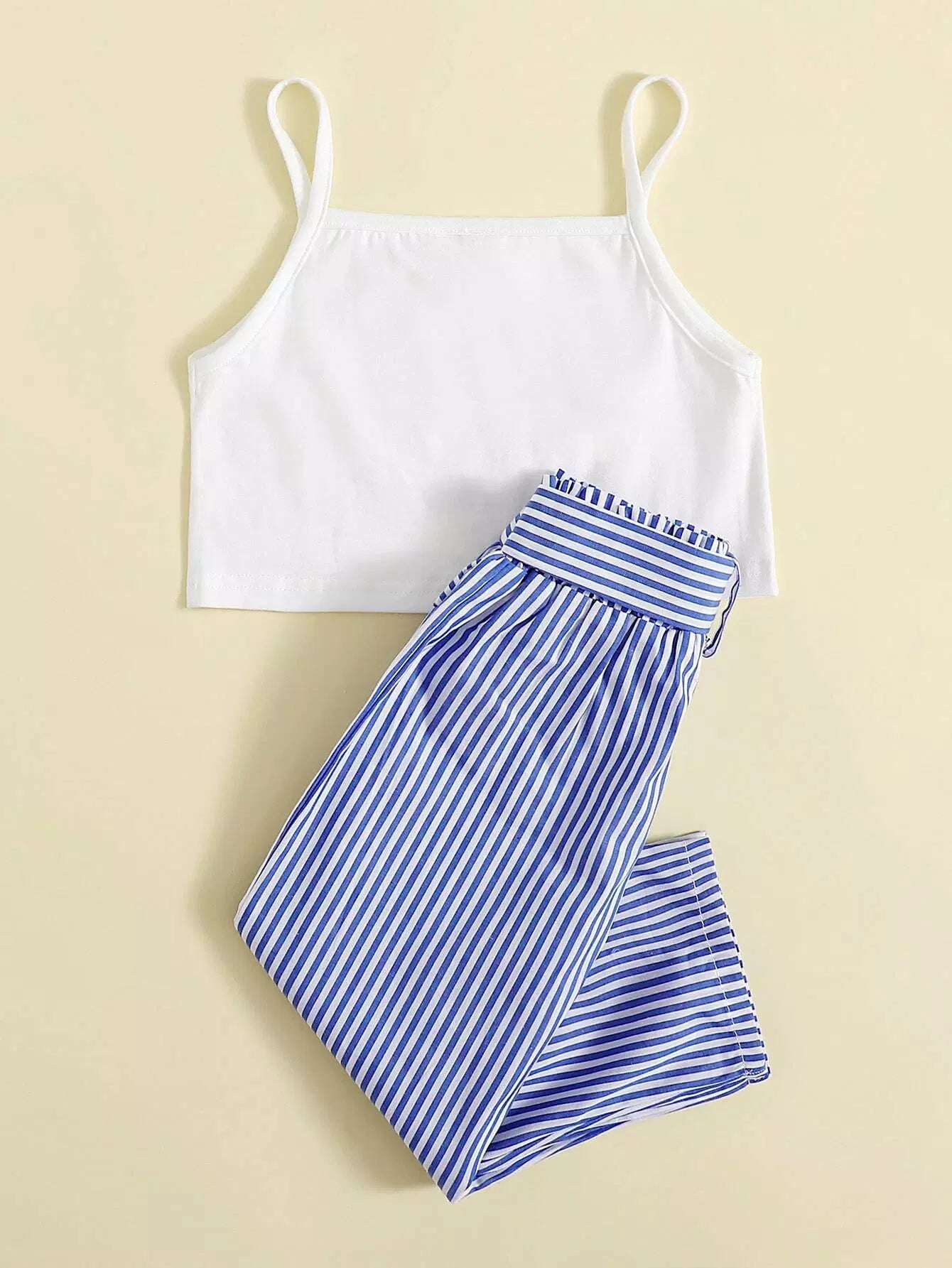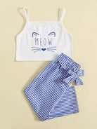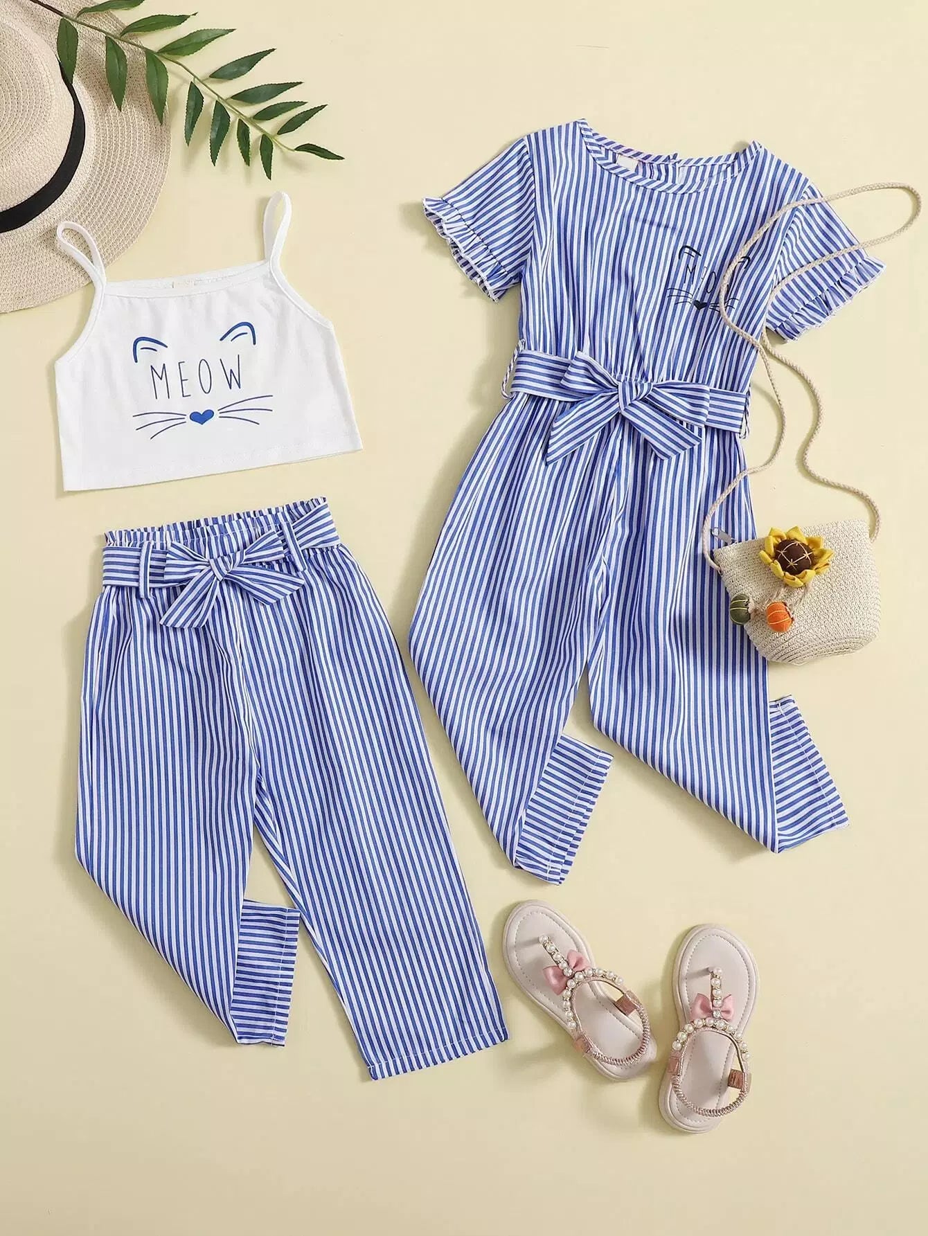 بلوزة كامي 1 برسوم كارتونية للفتيات الصغيرات وبنطلون 1 مخطط بدون حزام