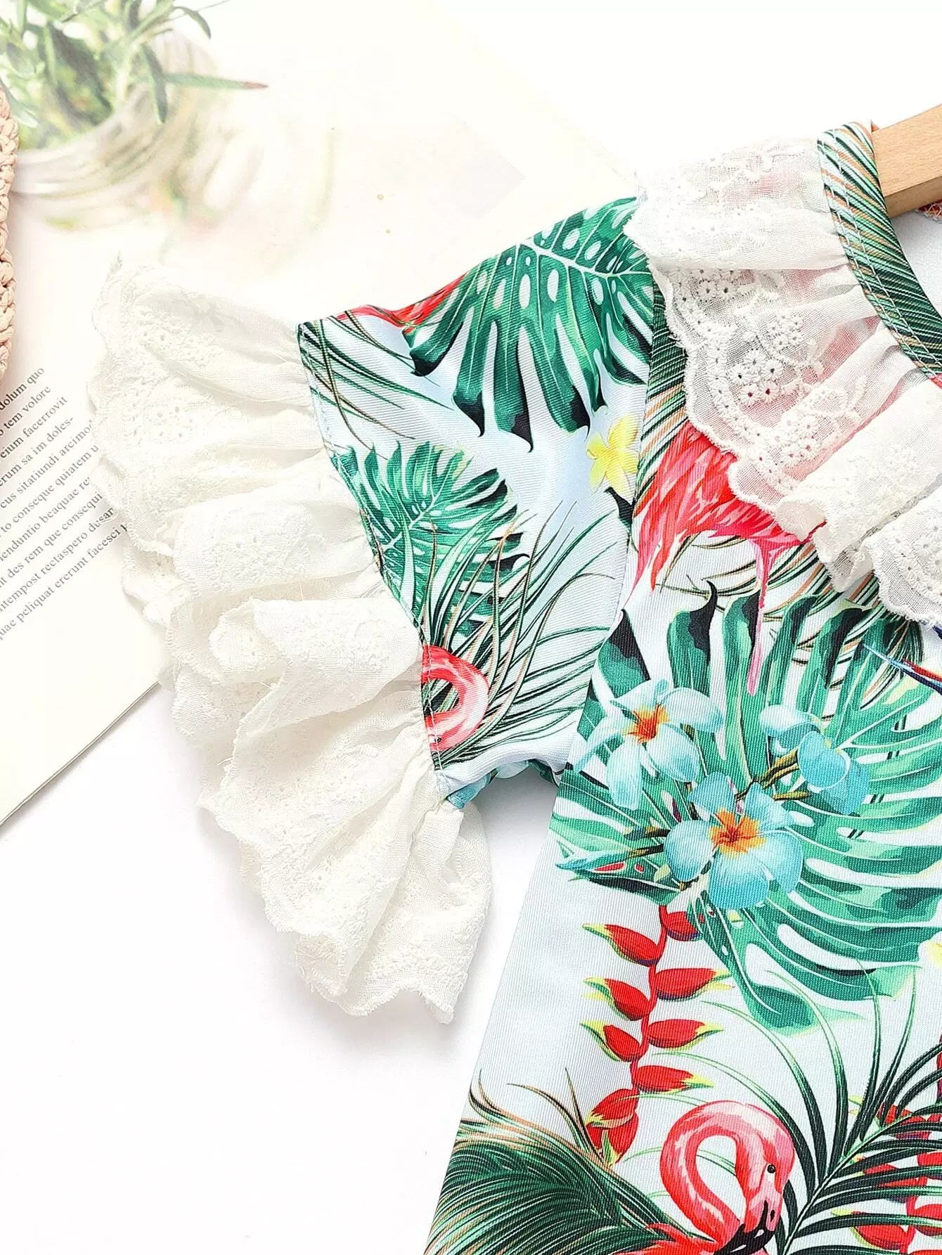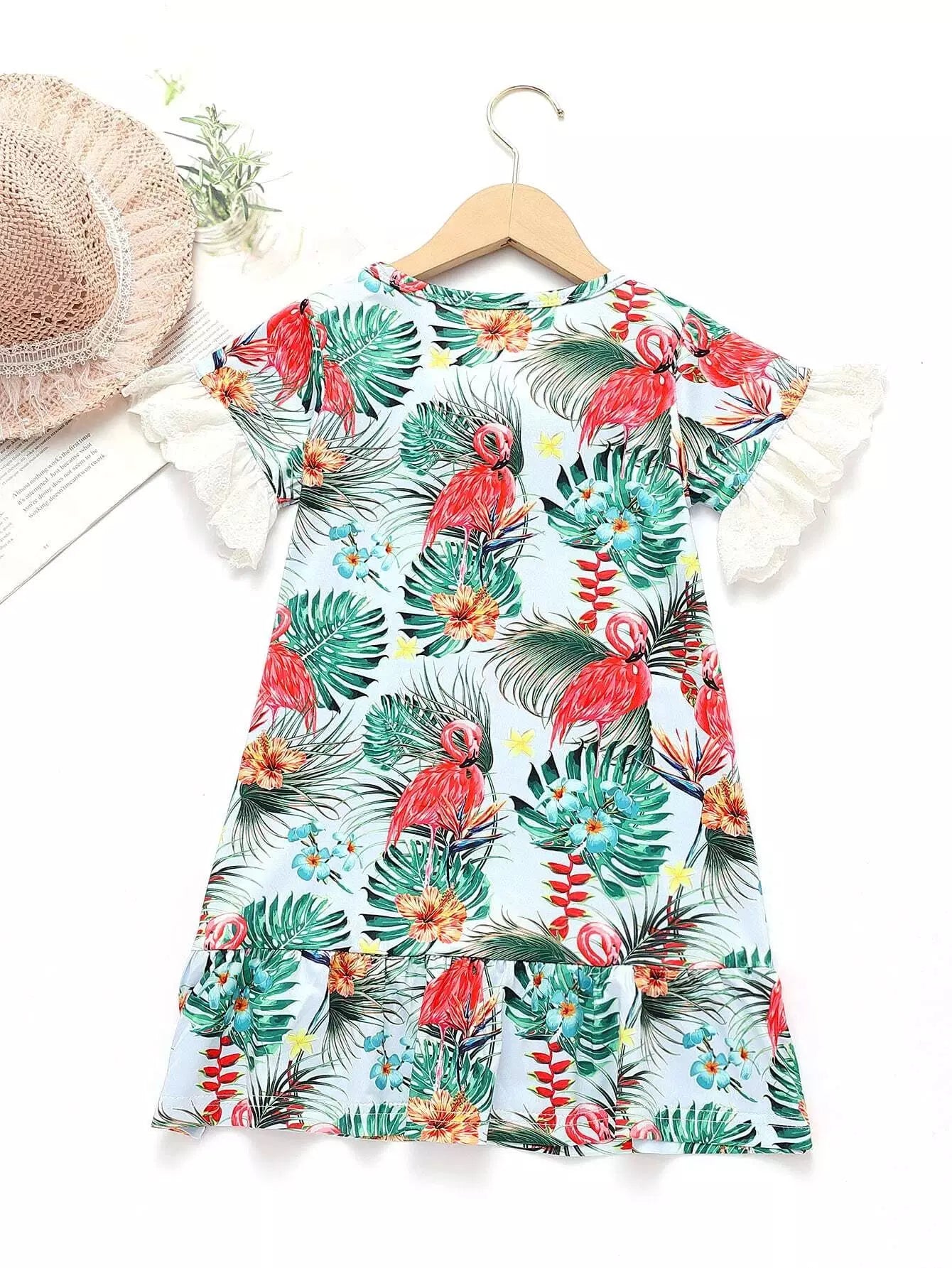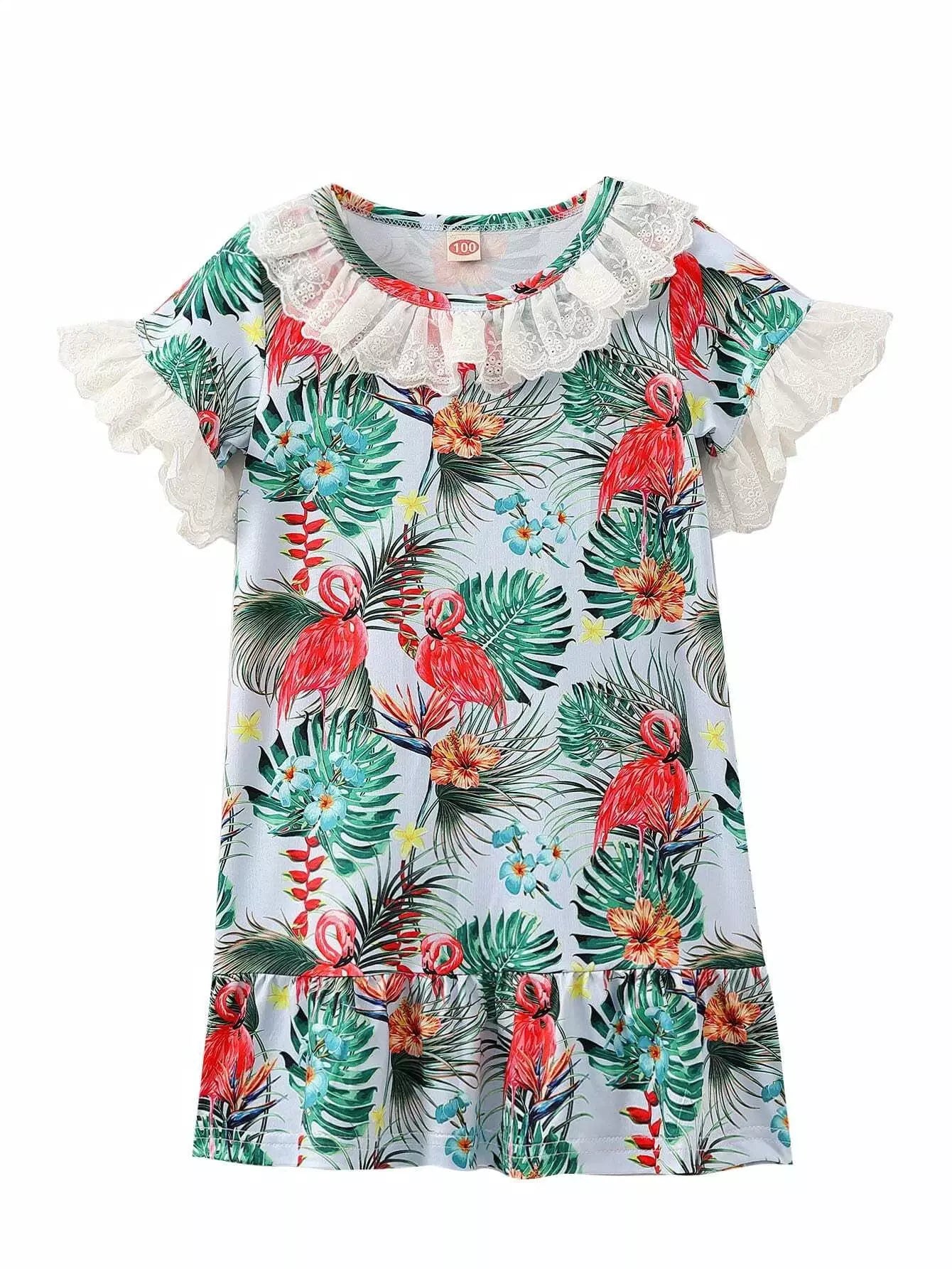فستان نوم بناتي صغيرات بطبعة فلامنغو وطبعة استوائية بلون مغاير