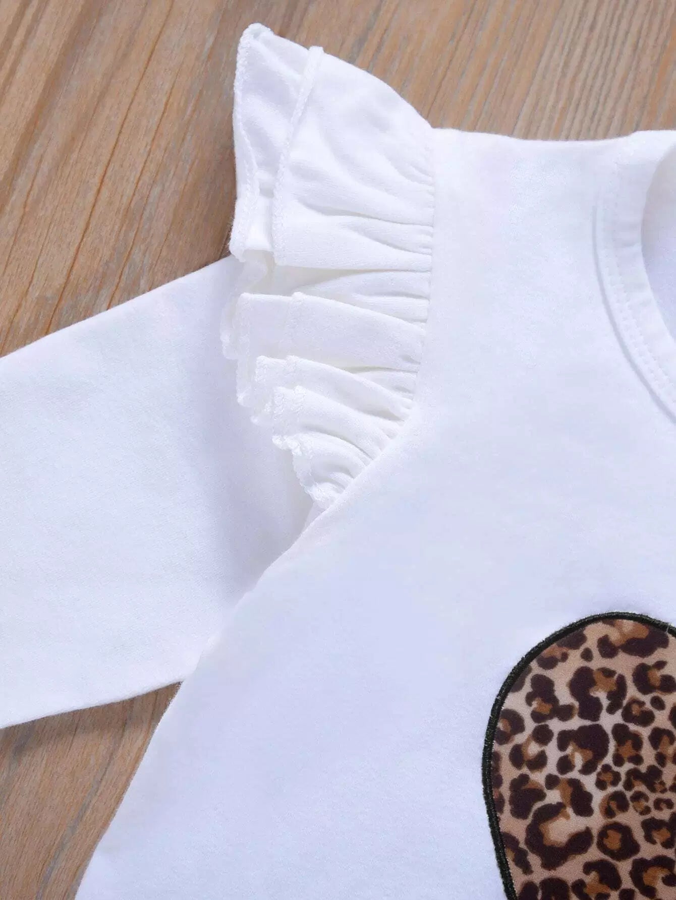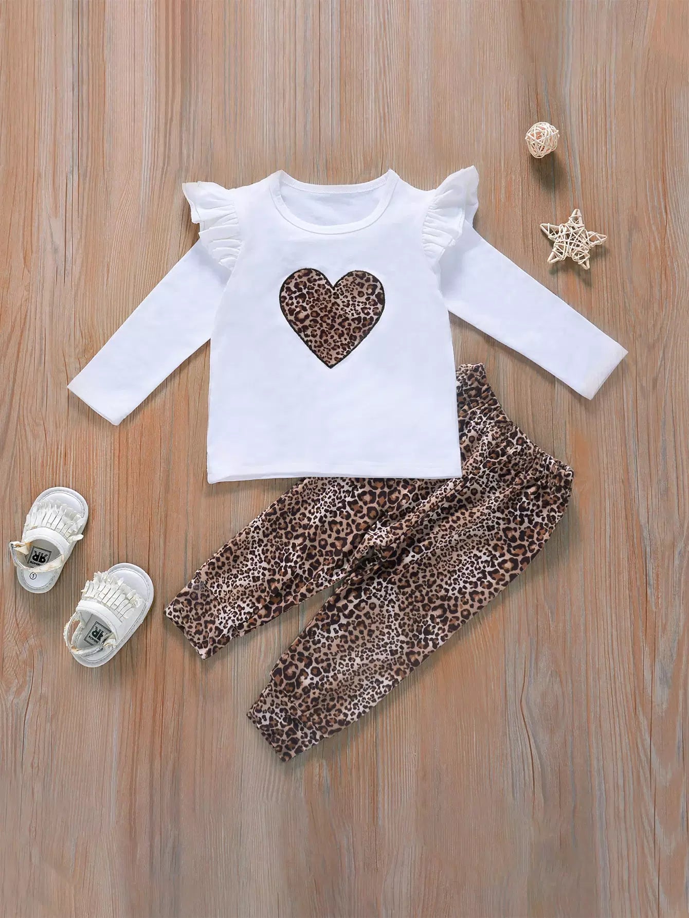 تي شيرت بطبعة نمر وقلب للبنات الصغار مع بنطلون