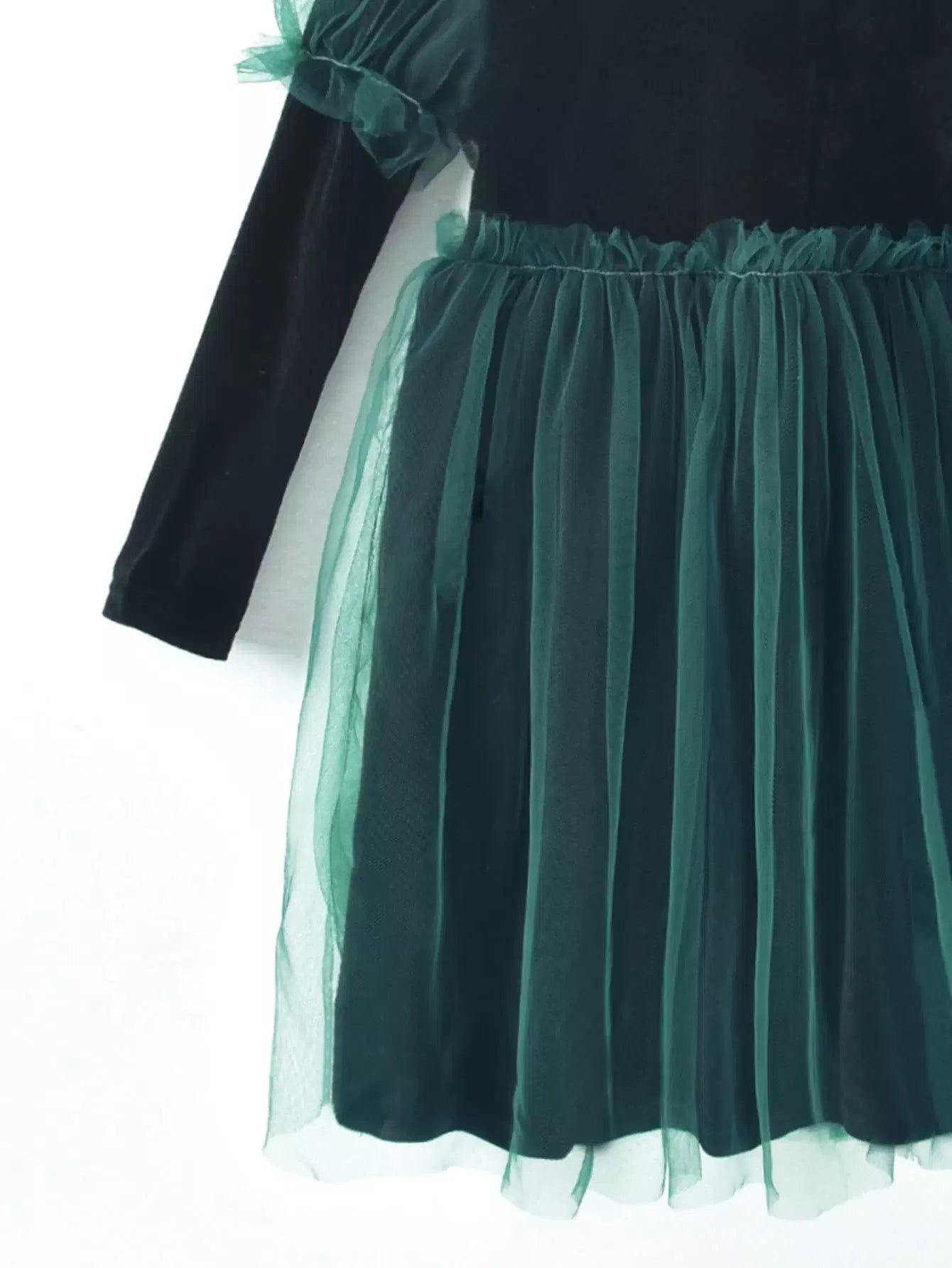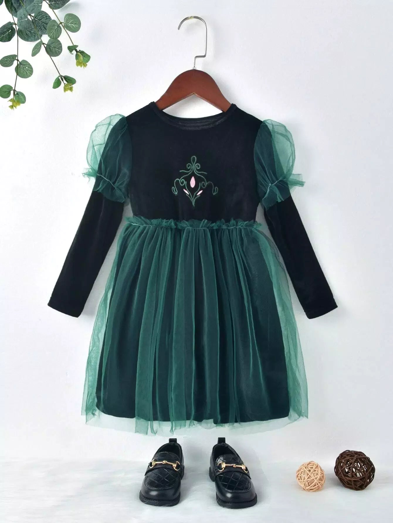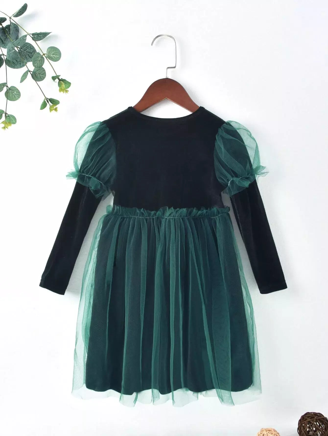 فستان مخملي بتطريز شبكي للبنات الصغار
