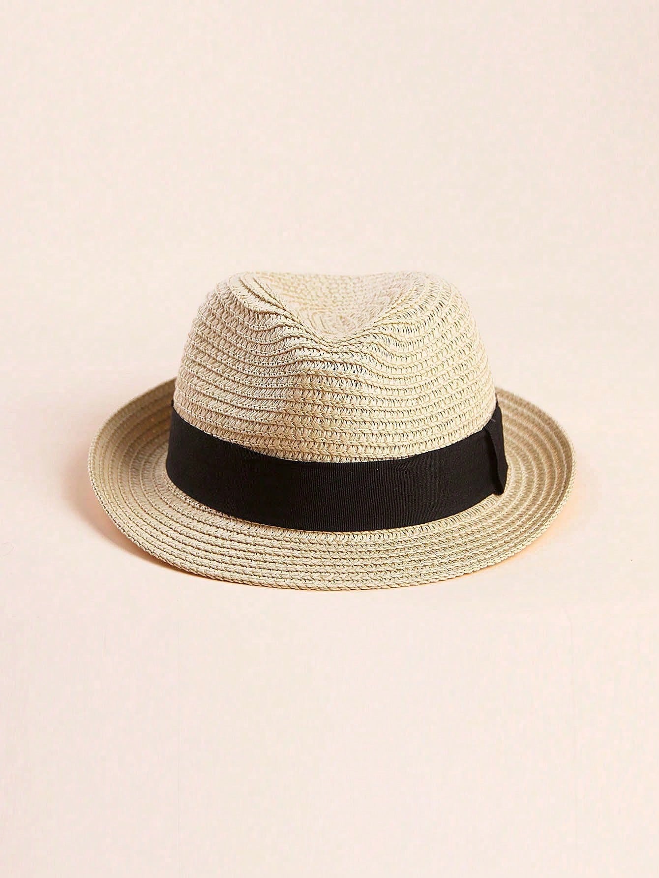 قبعة قش سادة للجنسين للأطفال/الرضع، قطعة واحدة، للحماية من الشمس، مناسبة لفصلي الربيع والصيف والخريف