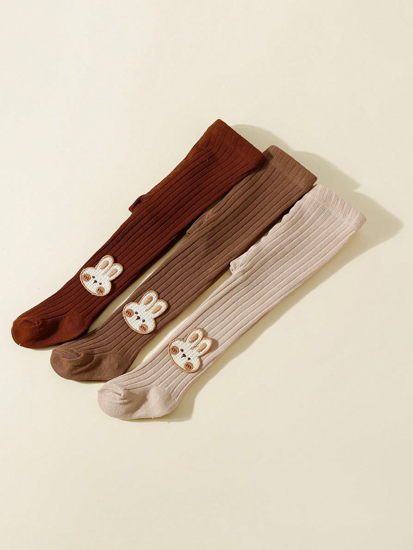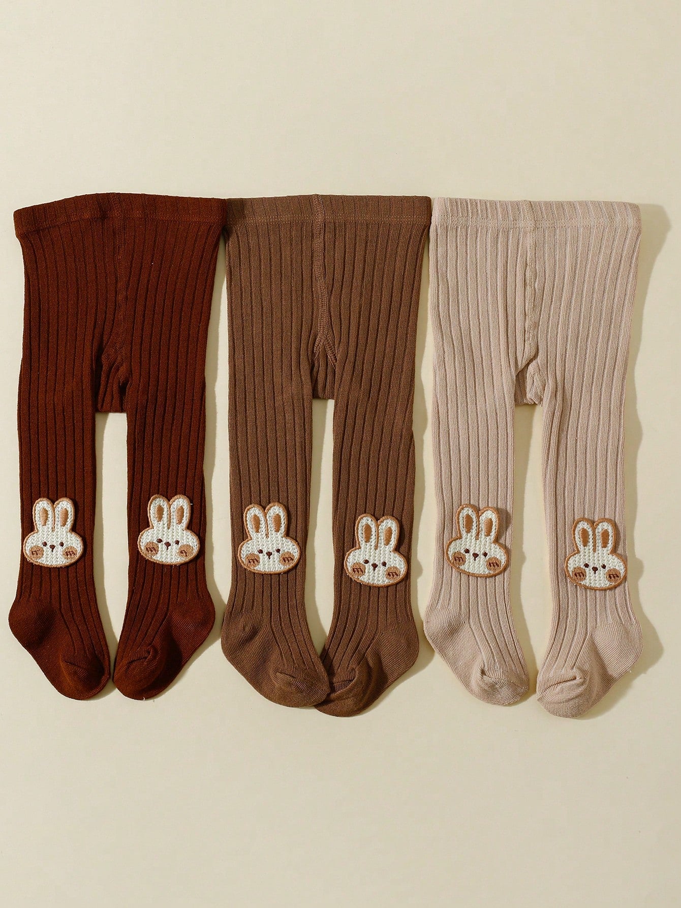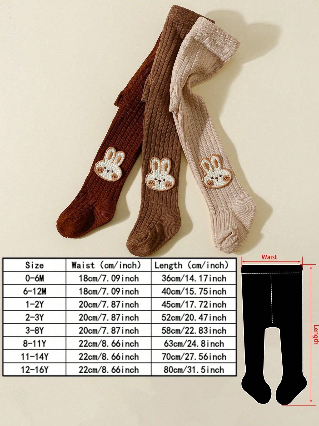 3pcs Kids' Solid Striped Stirrup Tights Pants For Daily Wear