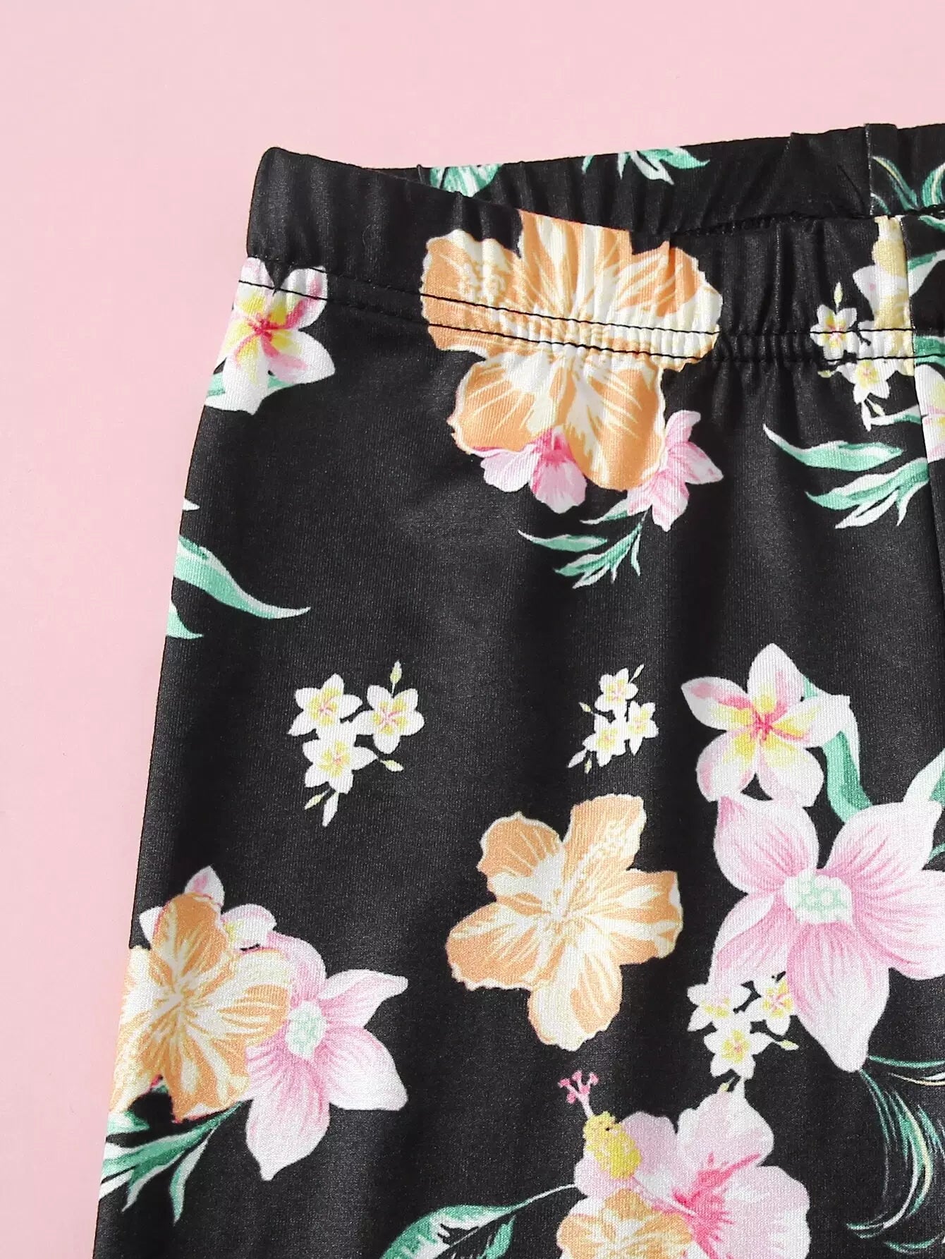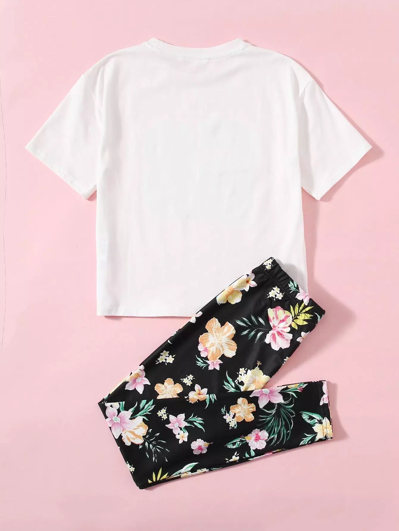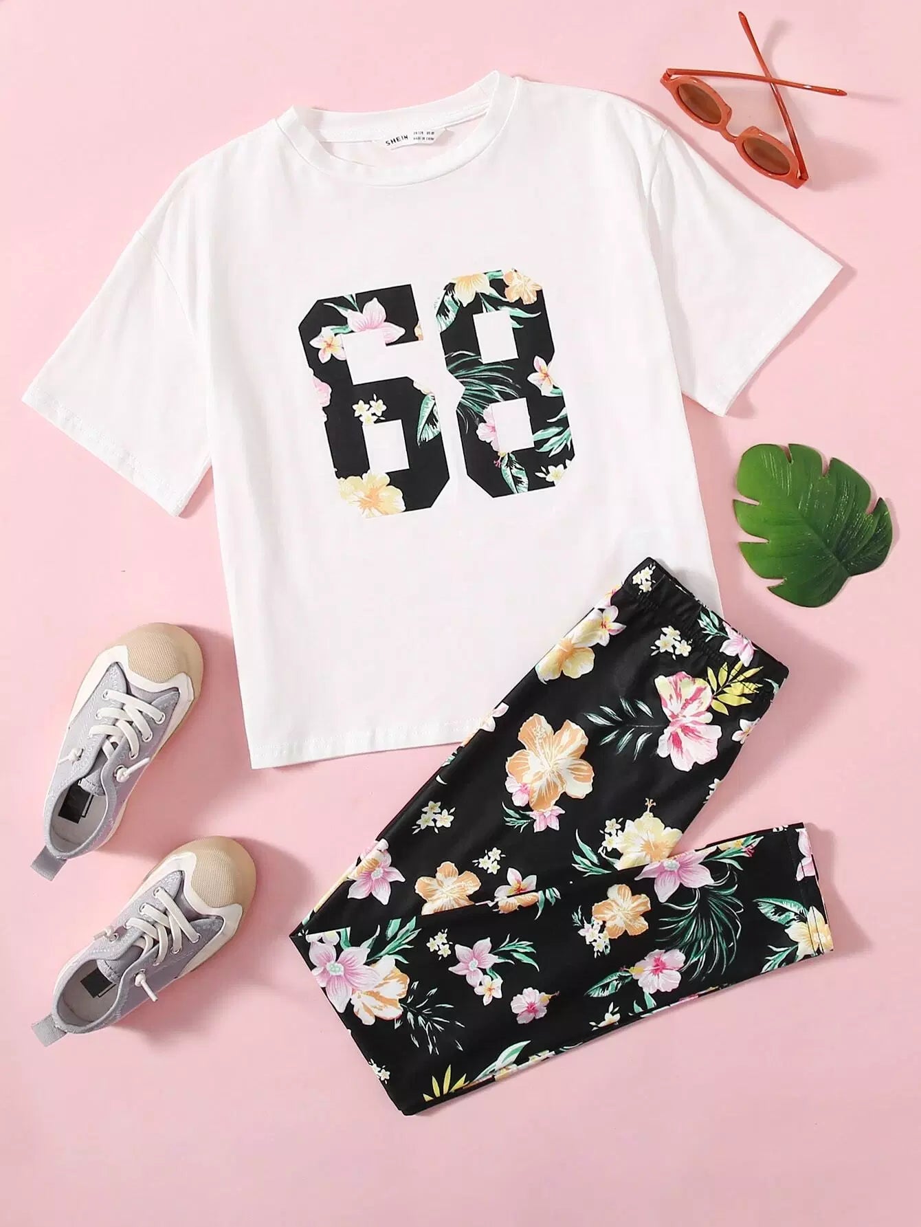 طقم بلوزة وبنطلون ضيق بطبعة أرقام زهرية للبنات