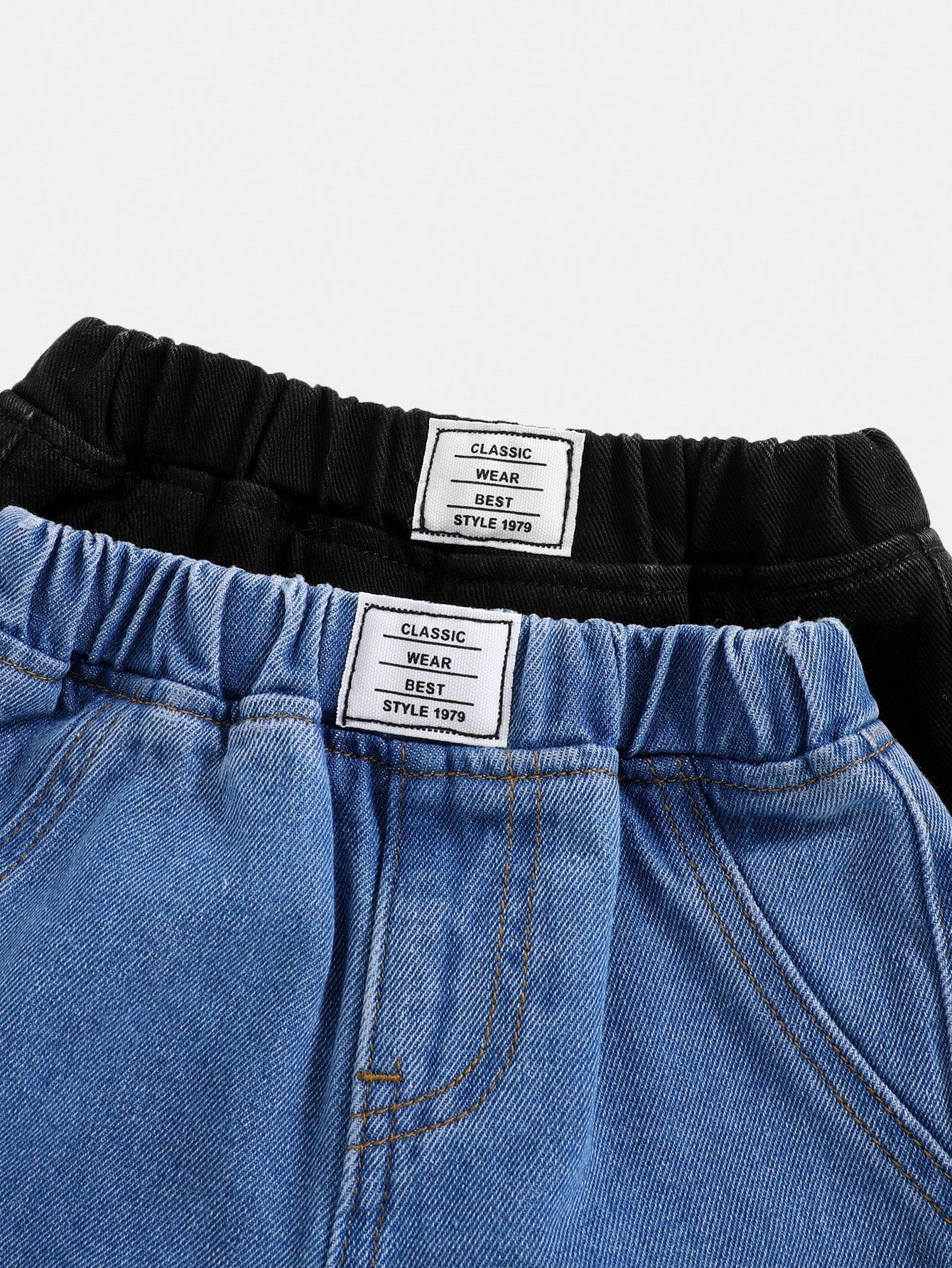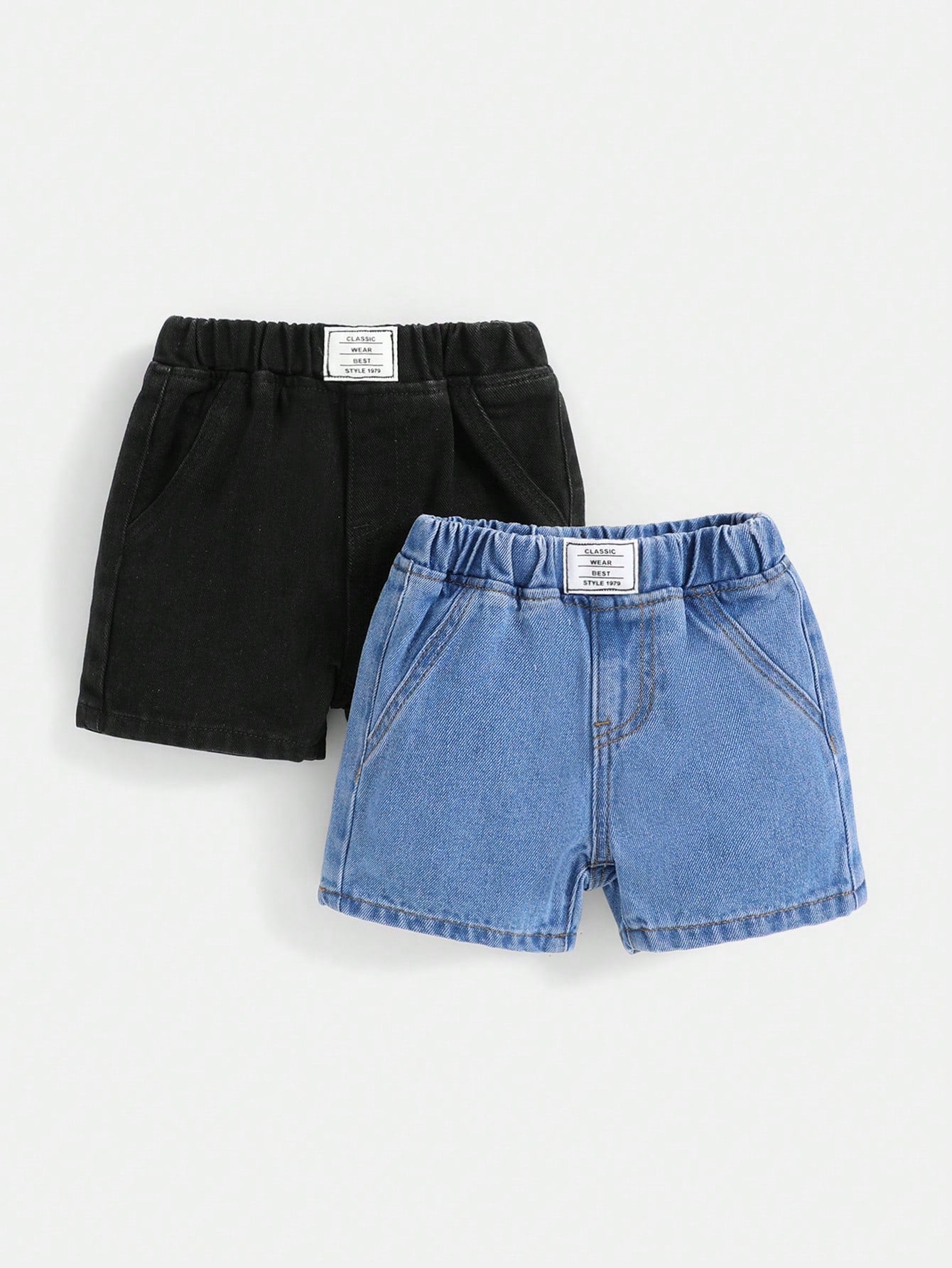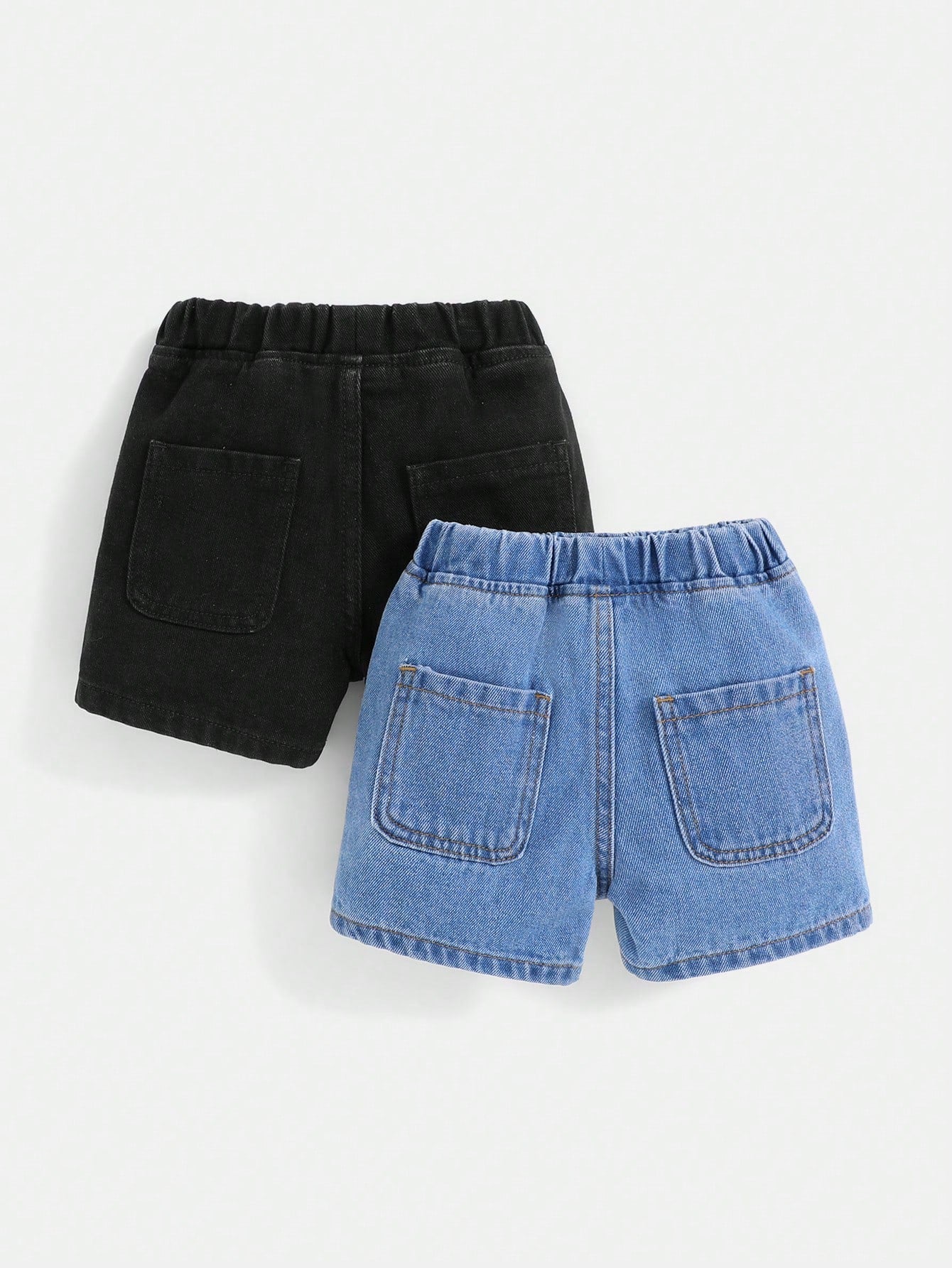2pcs/Set Baby Boys' Spring & Summer Boho Casual Letter Patched Pocket Elastic Waist Soft Denim Jeans