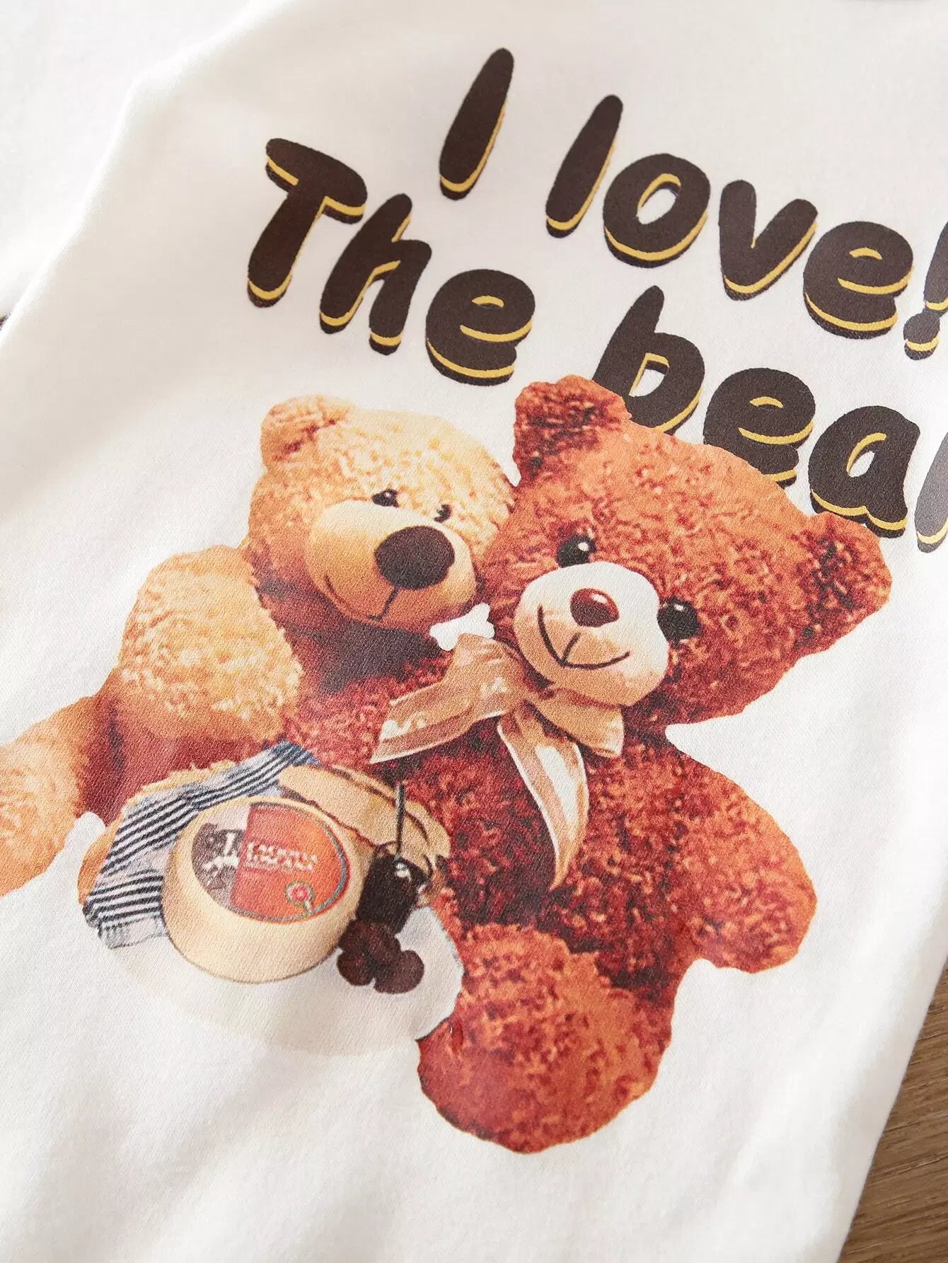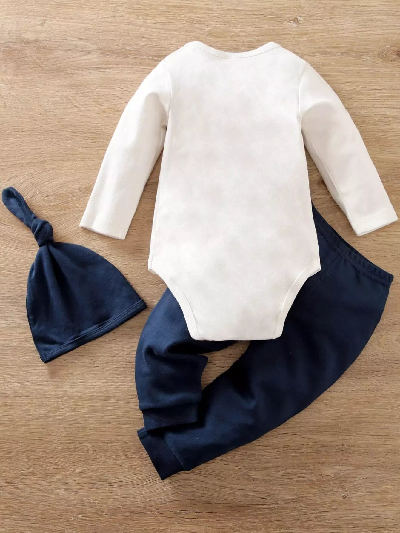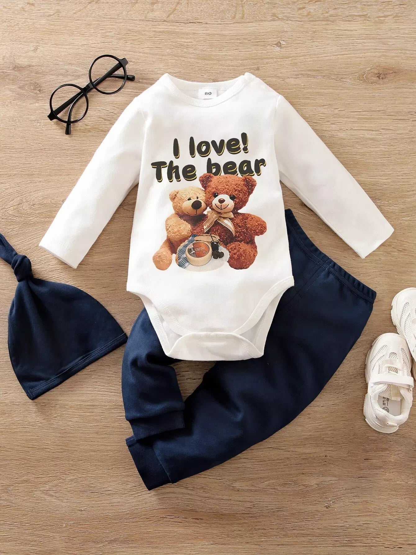 لباس قطعة واحدة وبنطال وقبعة بتصميم دب صغير وشعار جرافيك