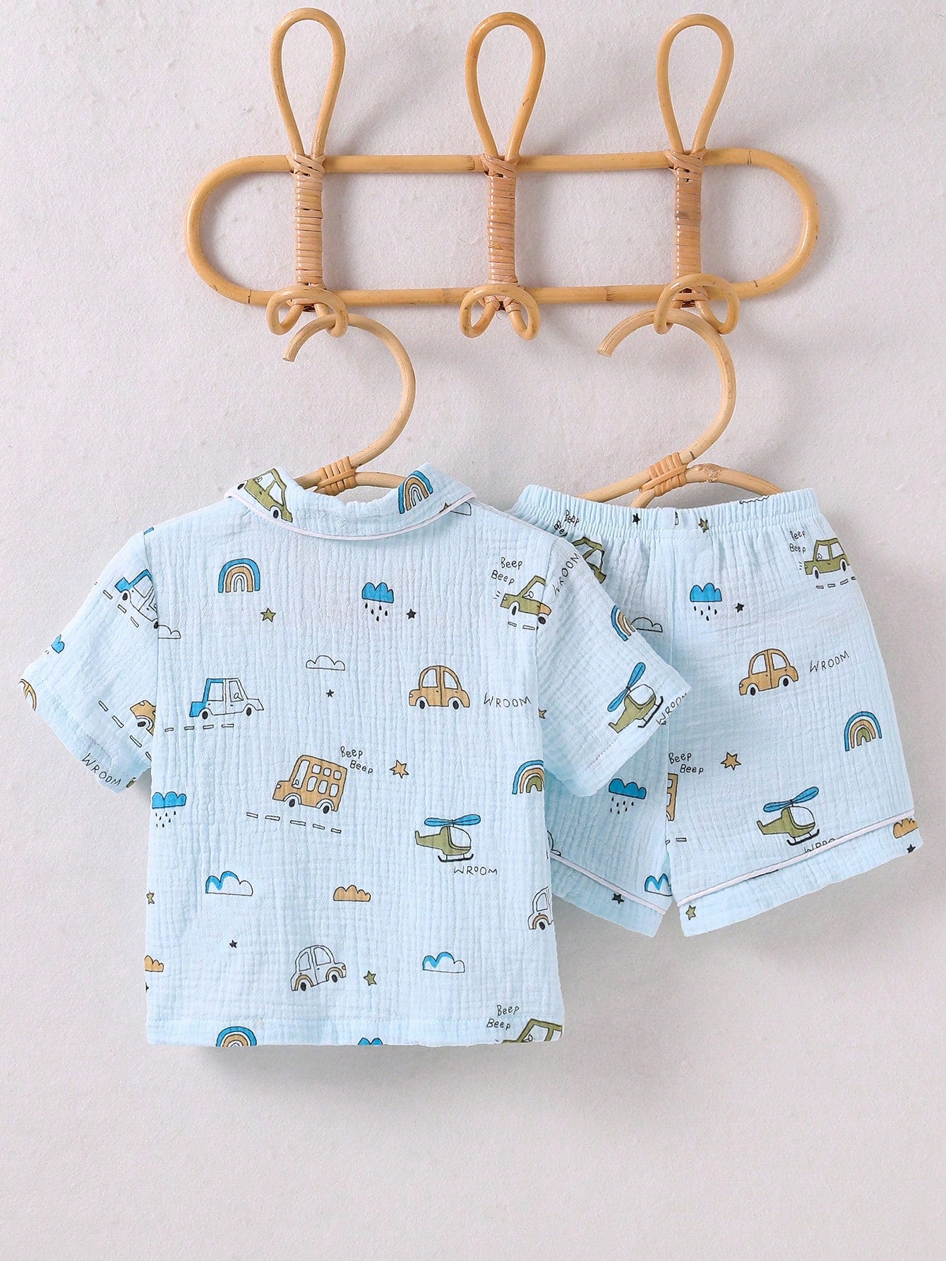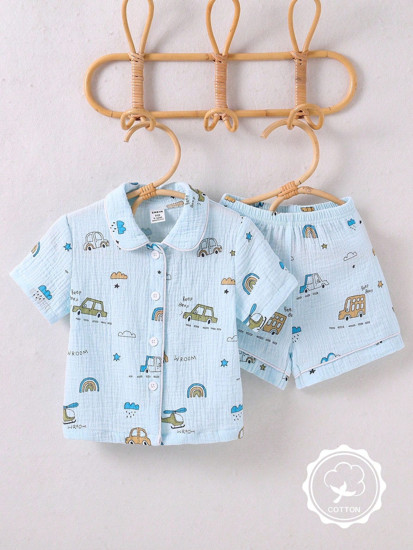 kids Baby Boys' Casual Cute Car Print Collar Short Sleeve Shorts Cotton Breathable Loose Pajamas Set