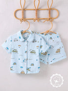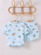 طقم بيجامات فضفاضة من القطن القابل للتنفس للأولاد الصغار، بياقة سيارة لطيفة، وأكمام قصيرة، وشورت