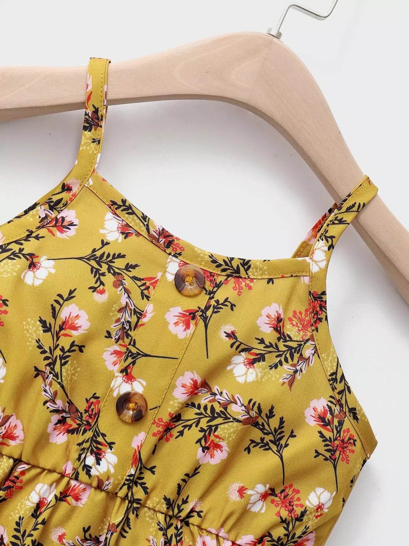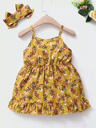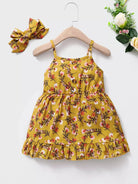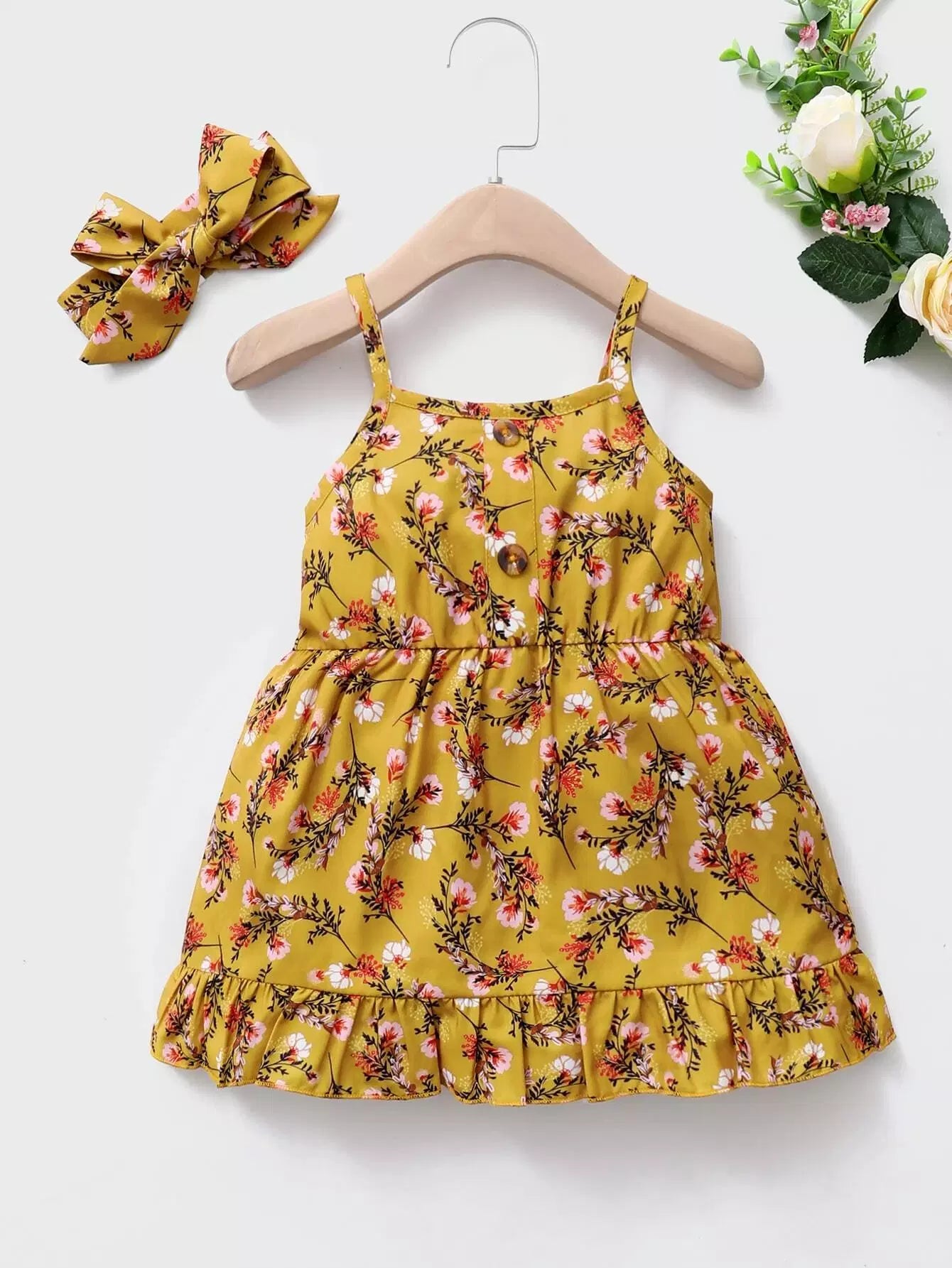 فستان طفلة رضيعة، فستان كامي مزين بالأزهار بالكامل مع عصابة للرأس