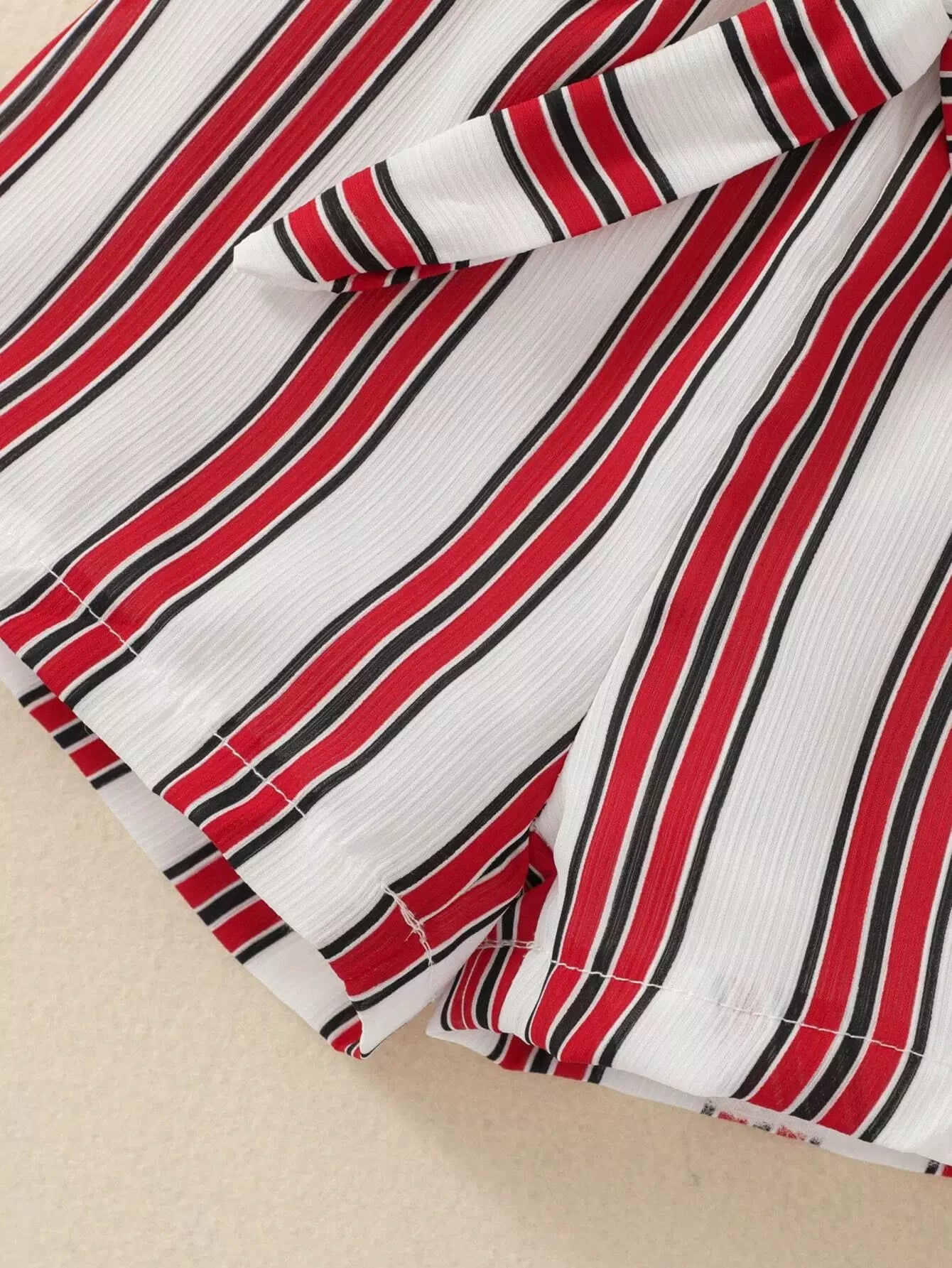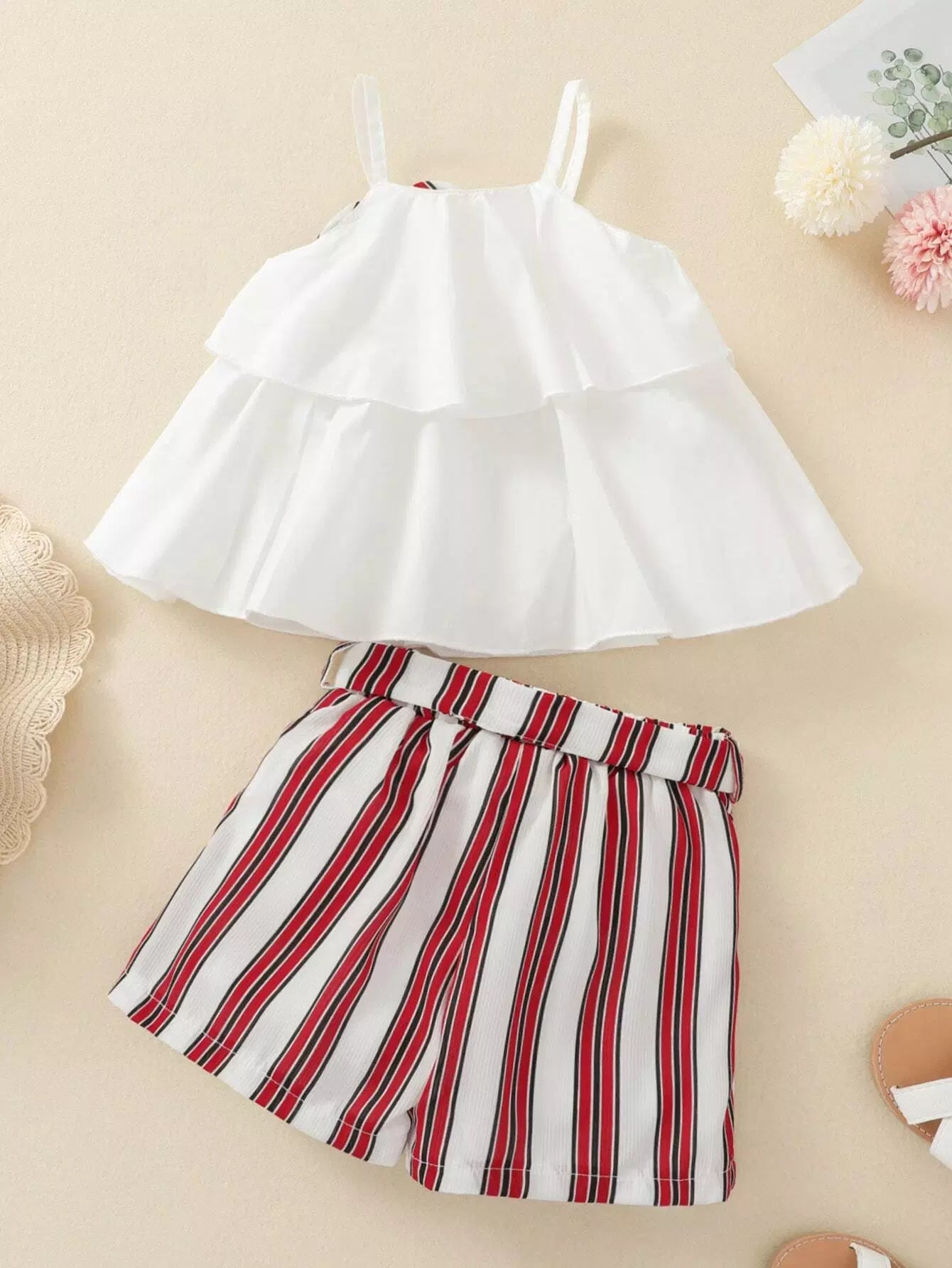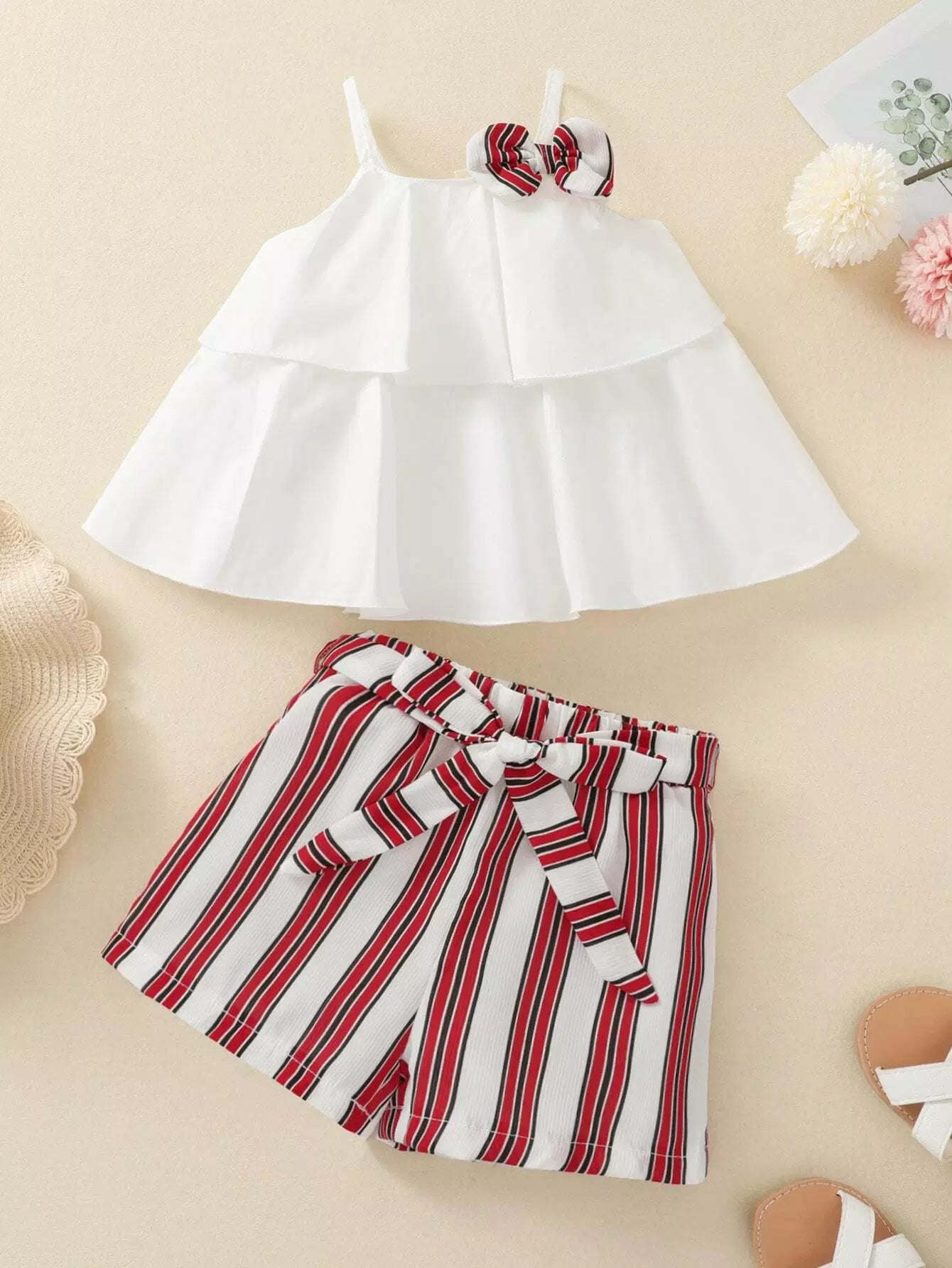 بلوزة كمي بطبقات مع شورت مخطط للطفلة الرضيعة