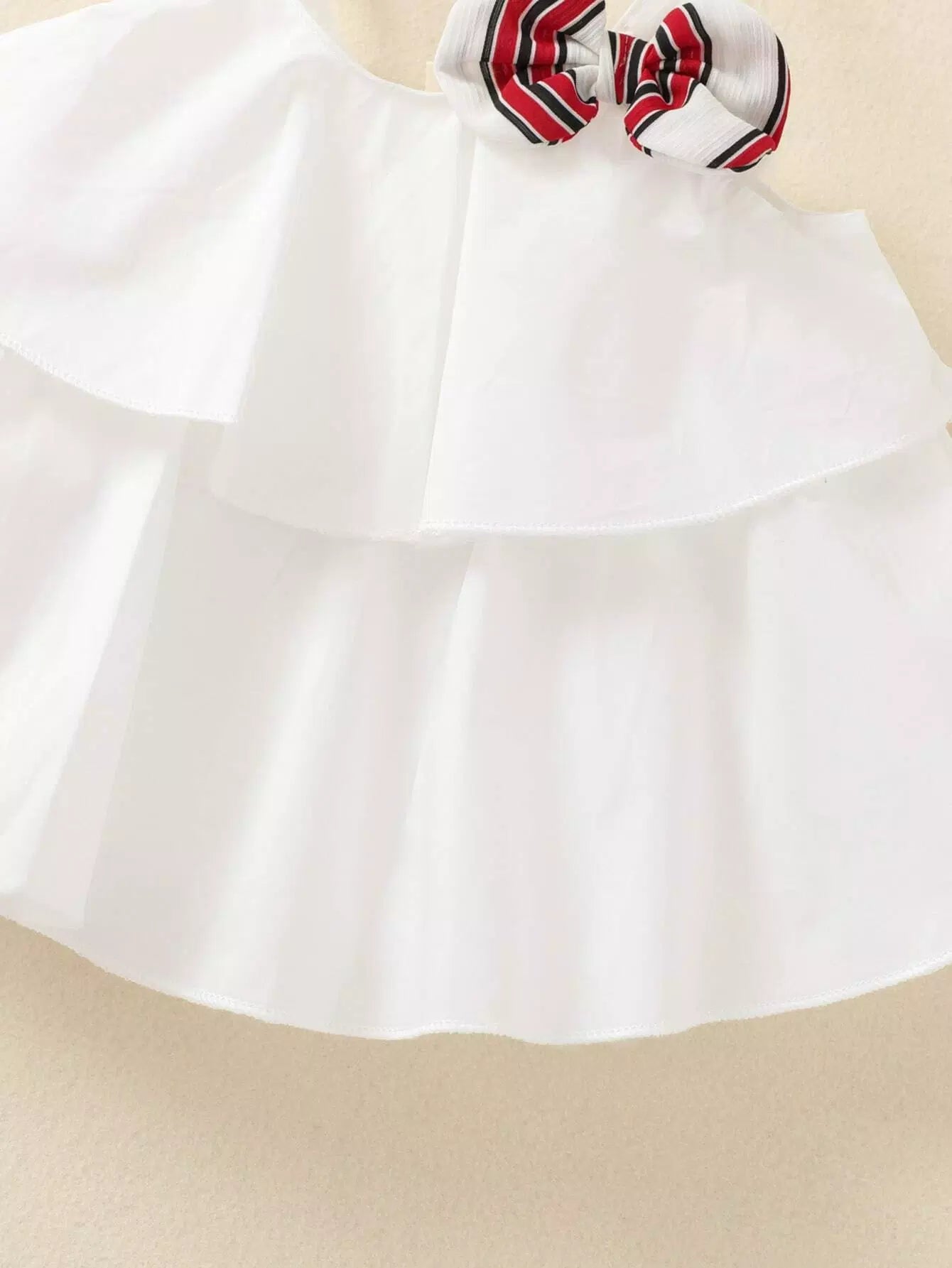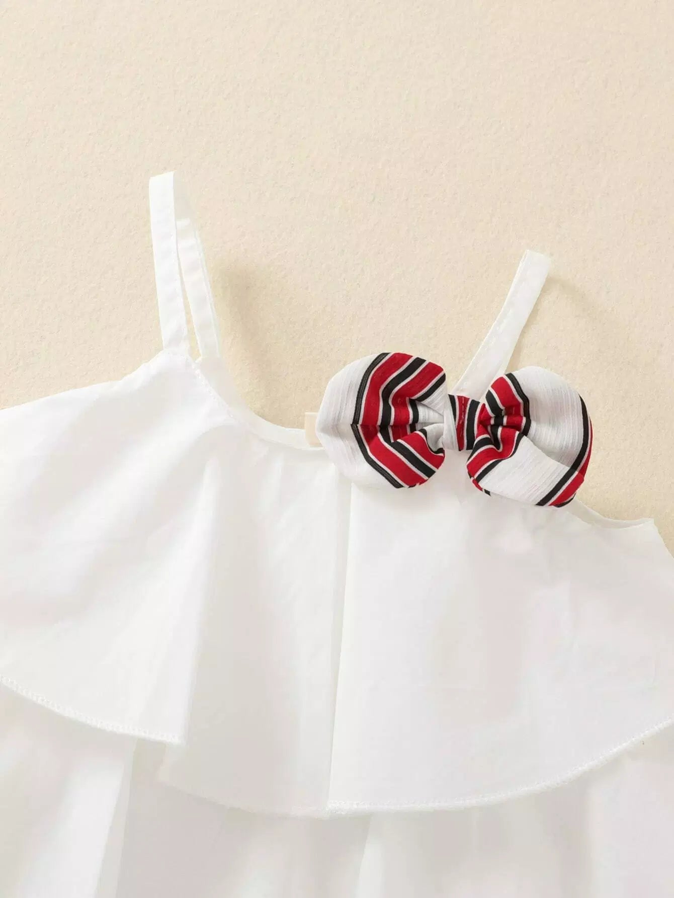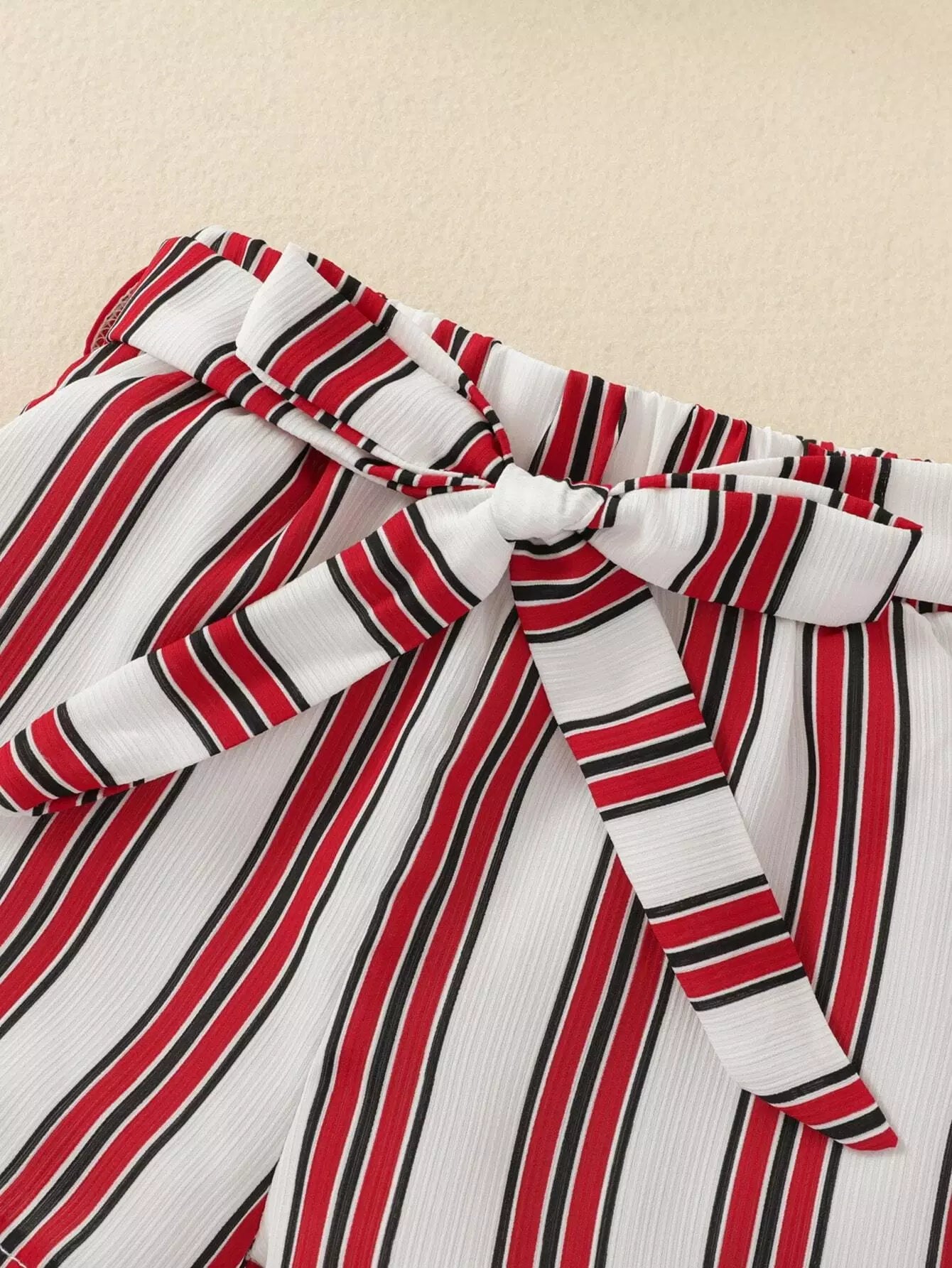 بلوزة كمي بطبقات مع شورت مخطط للطفلة الرضيعة