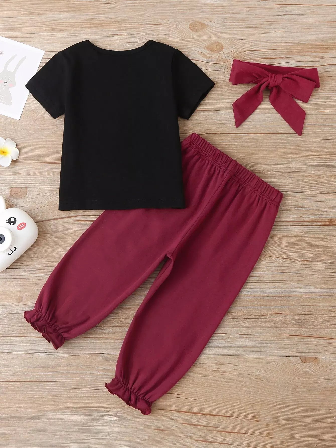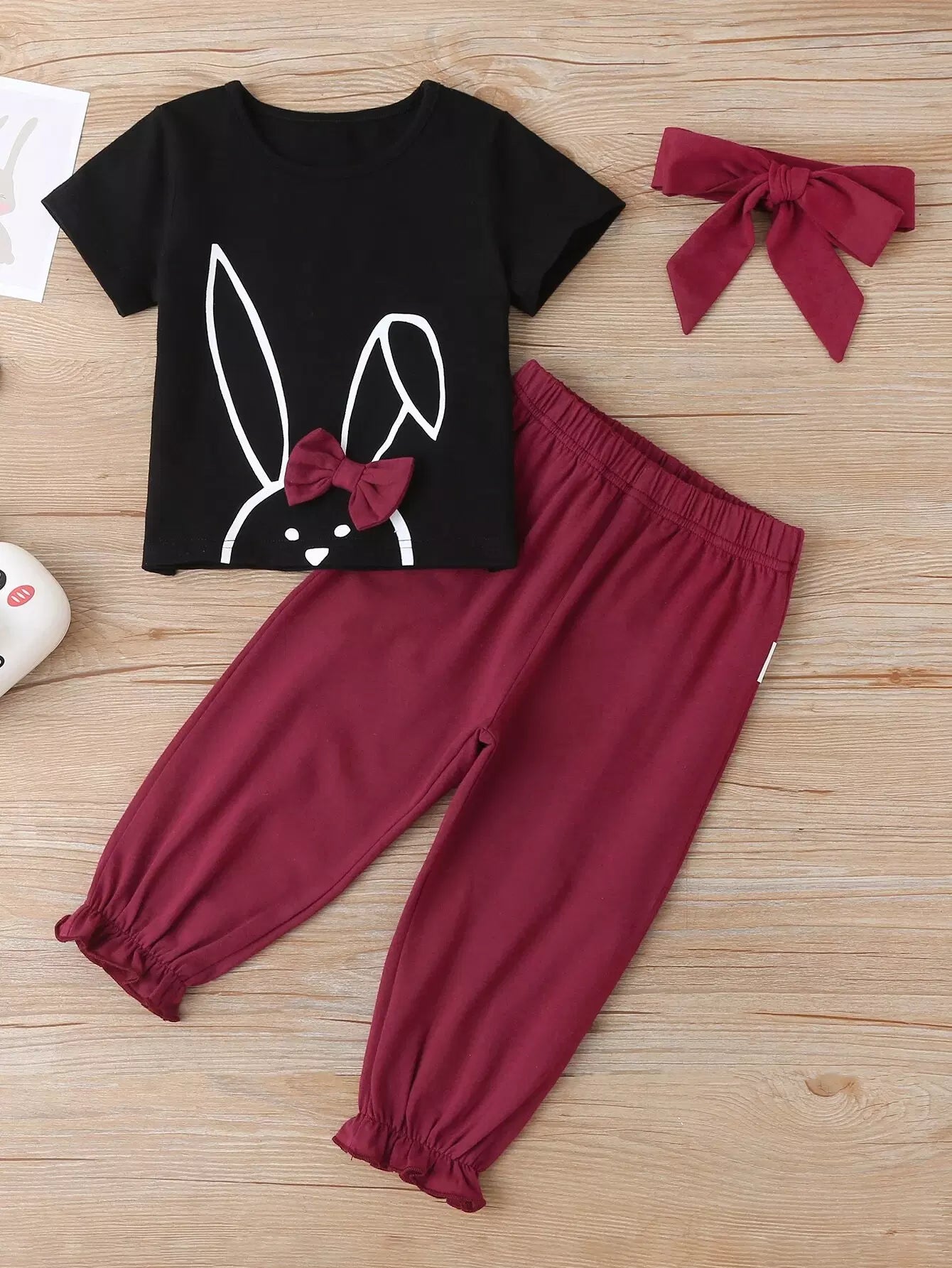 تي شيرت وبنطال بعقدة أمامية على شكل أرنب كرتوني للطفلة الرضيعة وعصابة رأس