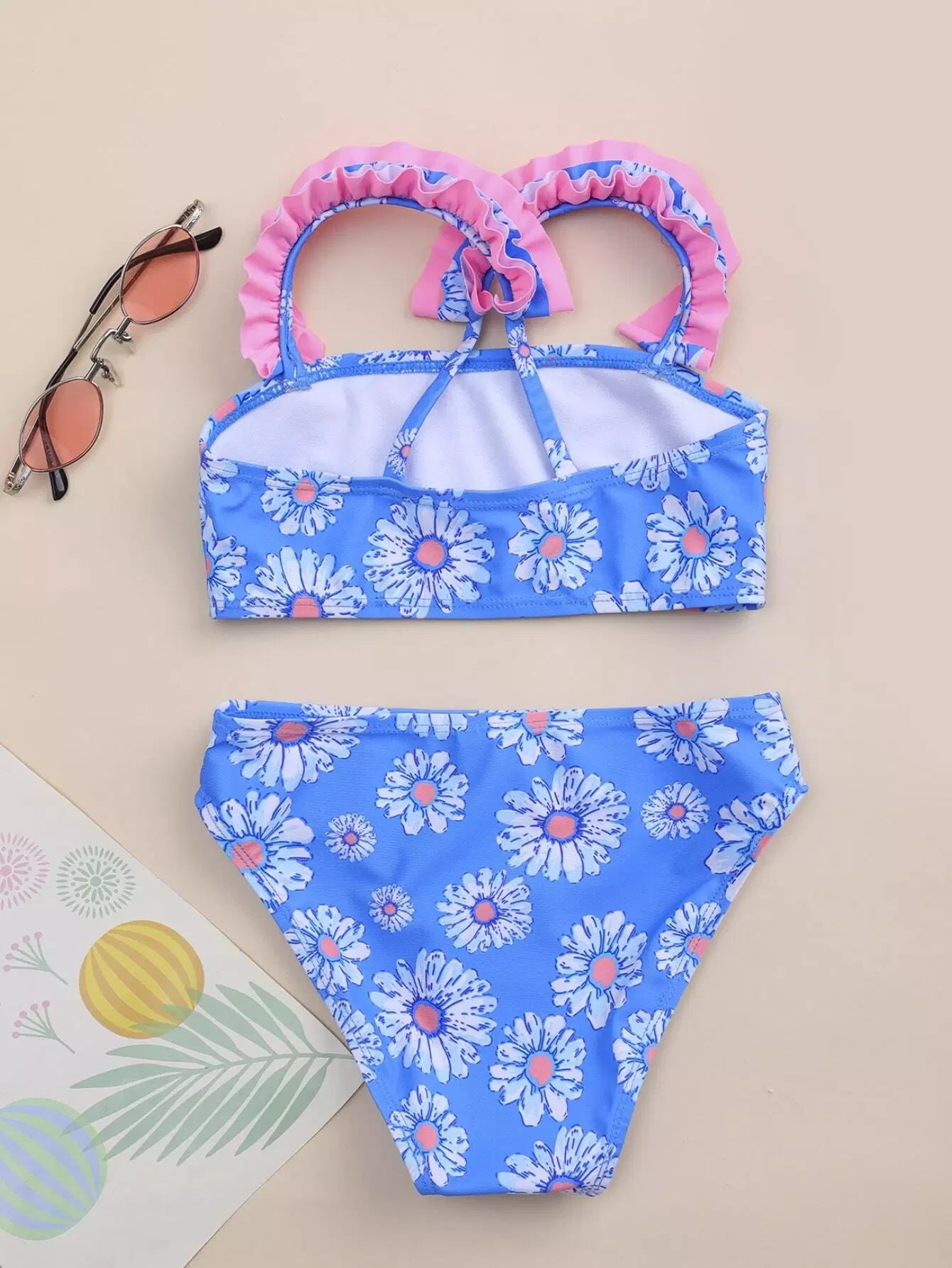 بيكيني سباحة بيكيني كشكش مزين بالزهور للطفلة الرضيعة