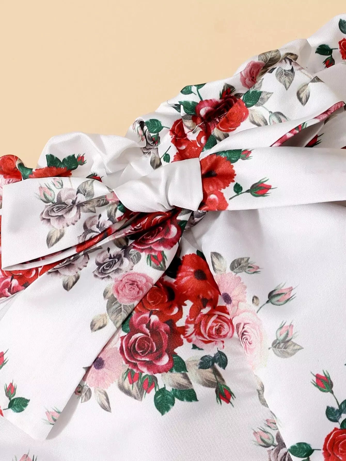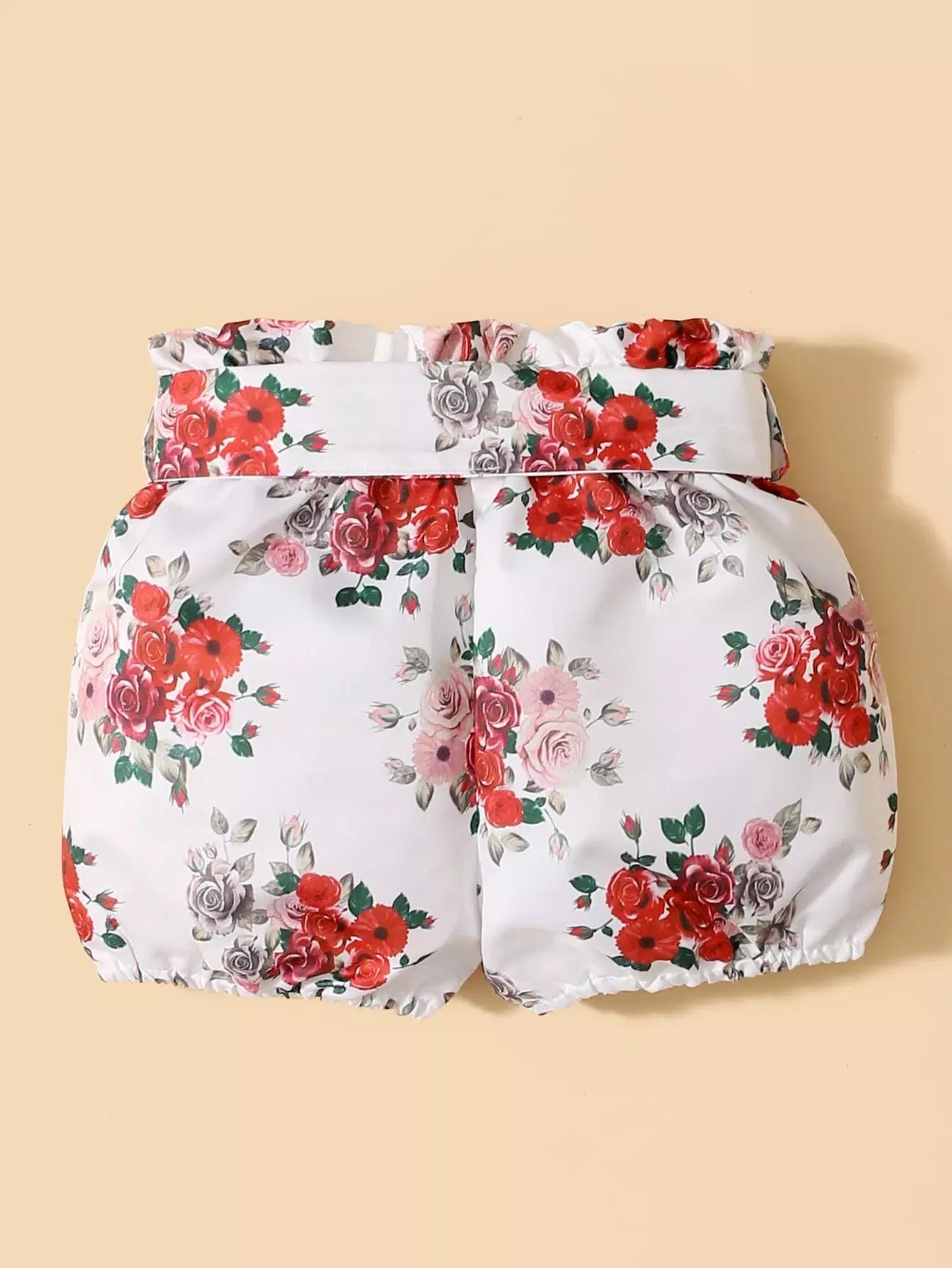 طفلة الأزهار السراويل الخصر كيس ورقي بدون حزام