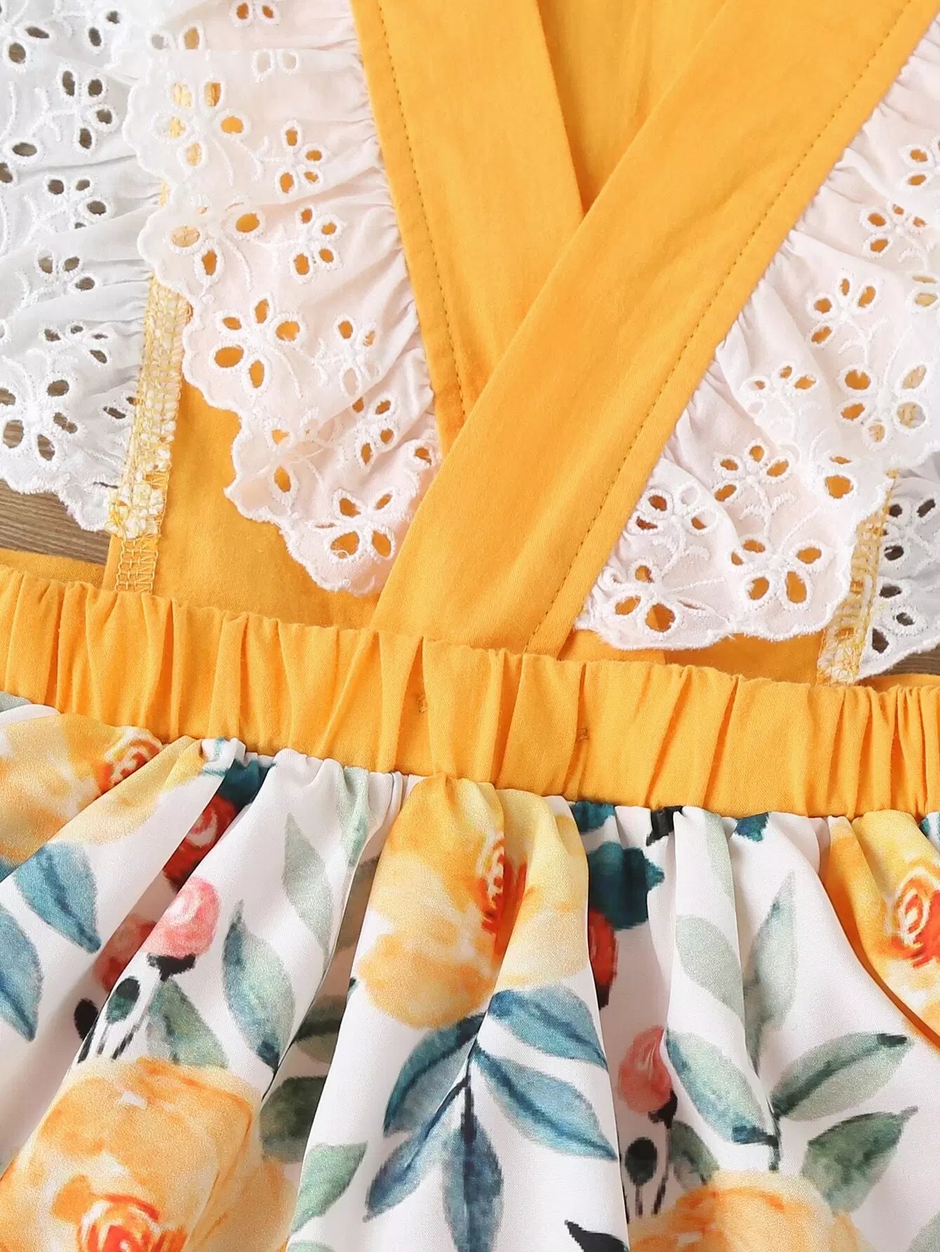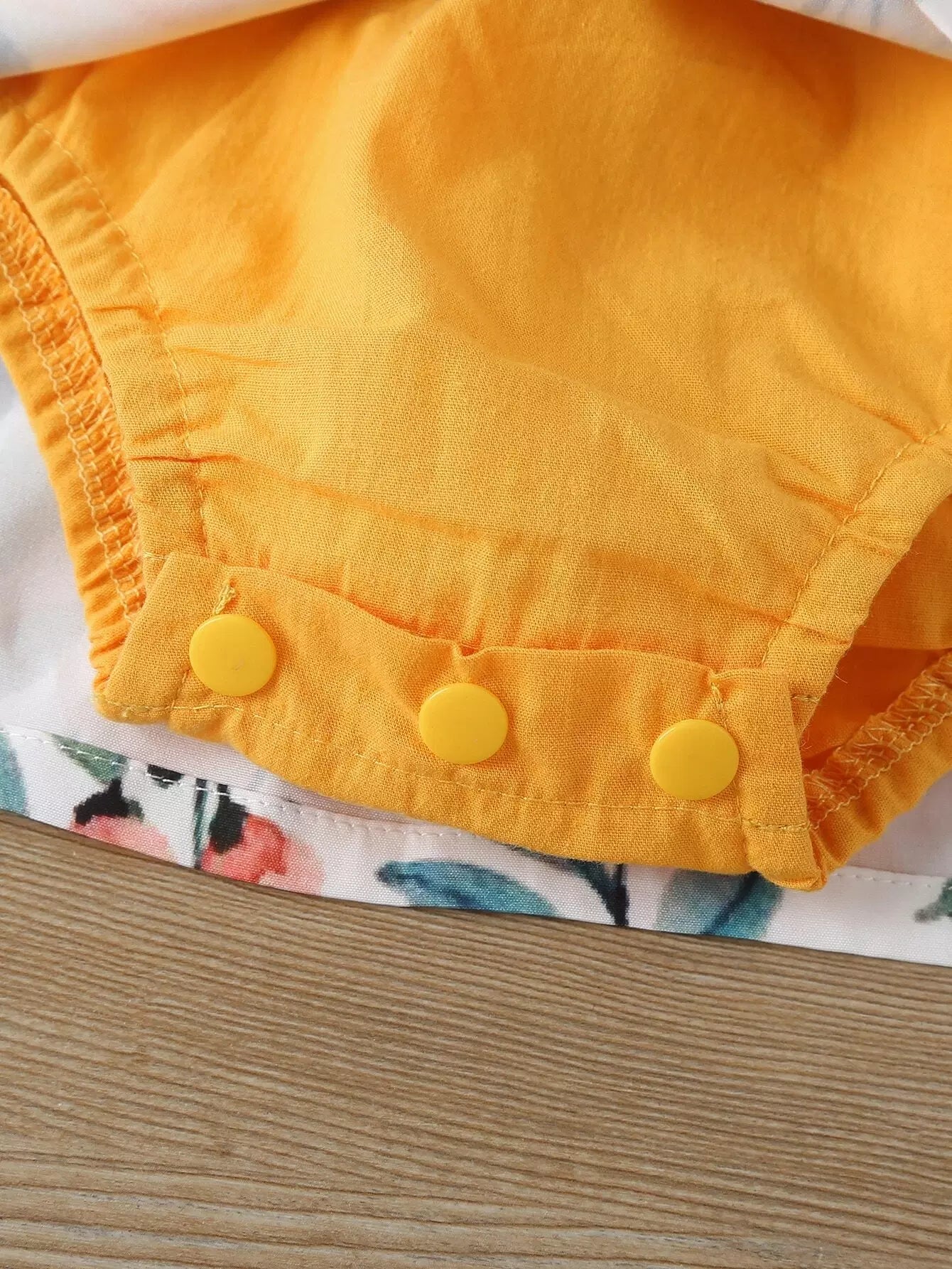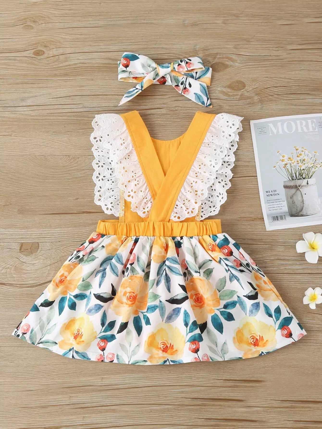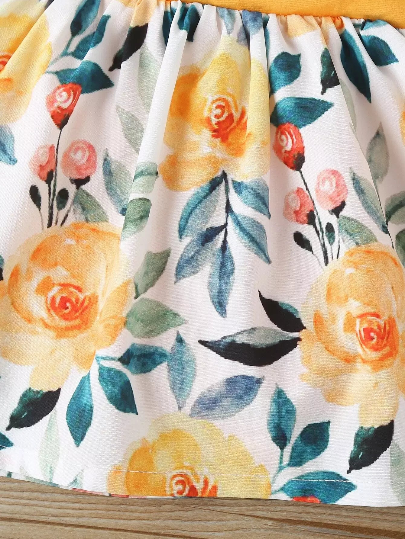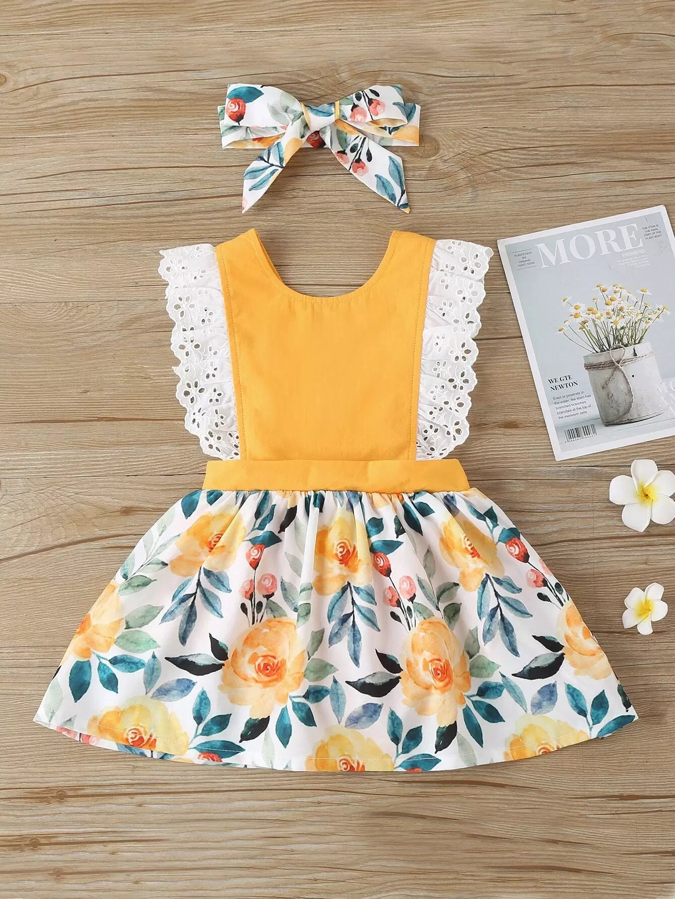 فستان بناتي الرضيعات بطبعة زهور وشريطة رأس مزينة بنقشة زهور