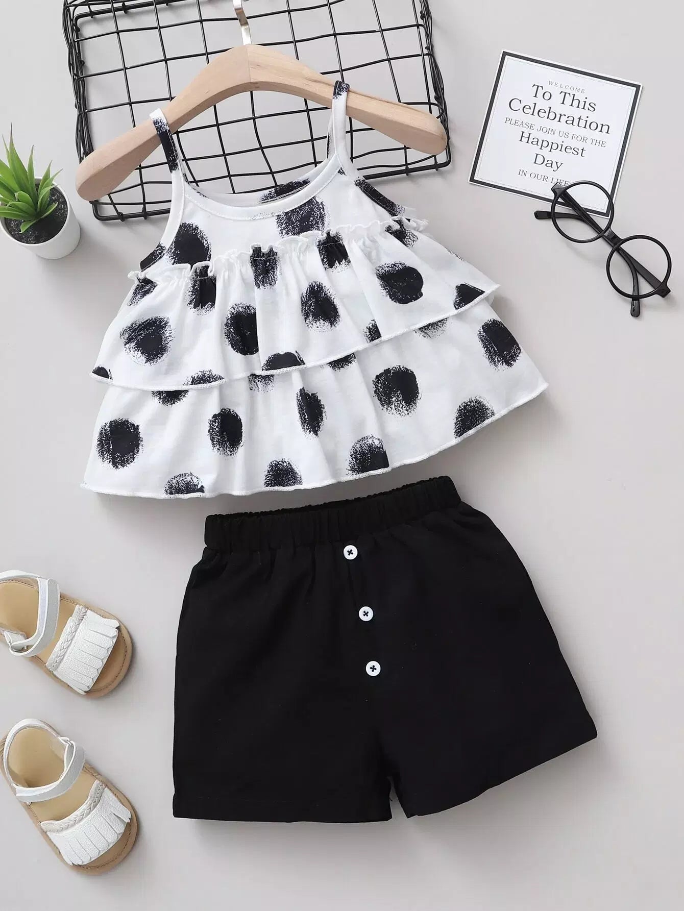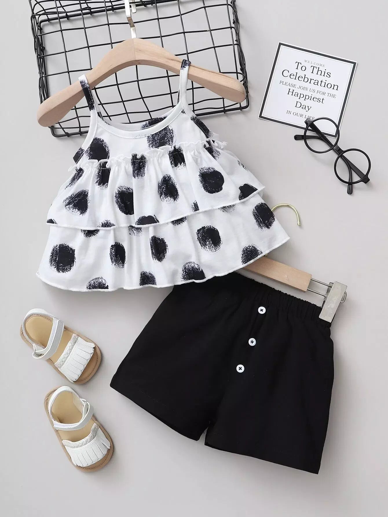 بلوزة بحاشية متعددة الطبقات وشورت قصير بحاشية طفلة رضيعة