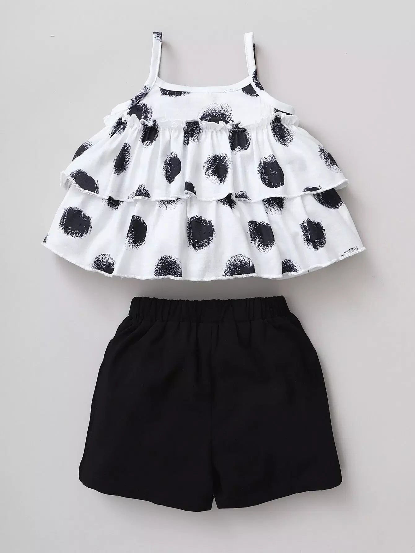 الأطفال - بلوزة وسروال قصير بحاشية متعددة الطبقات للفتيات الصغيرات