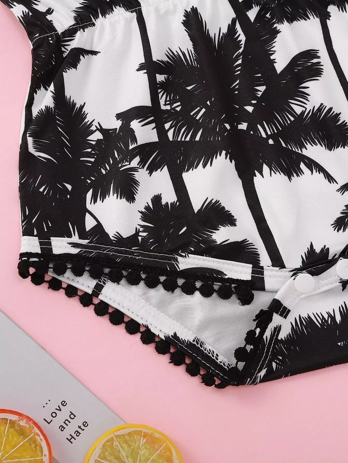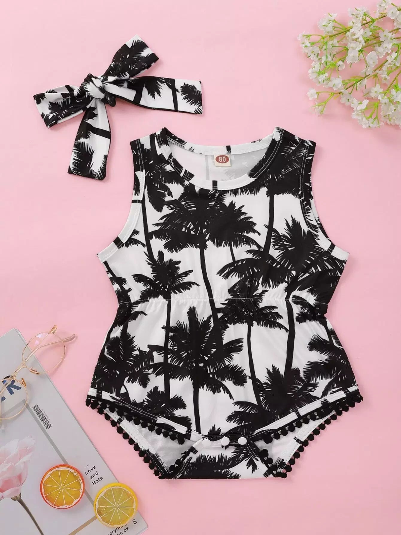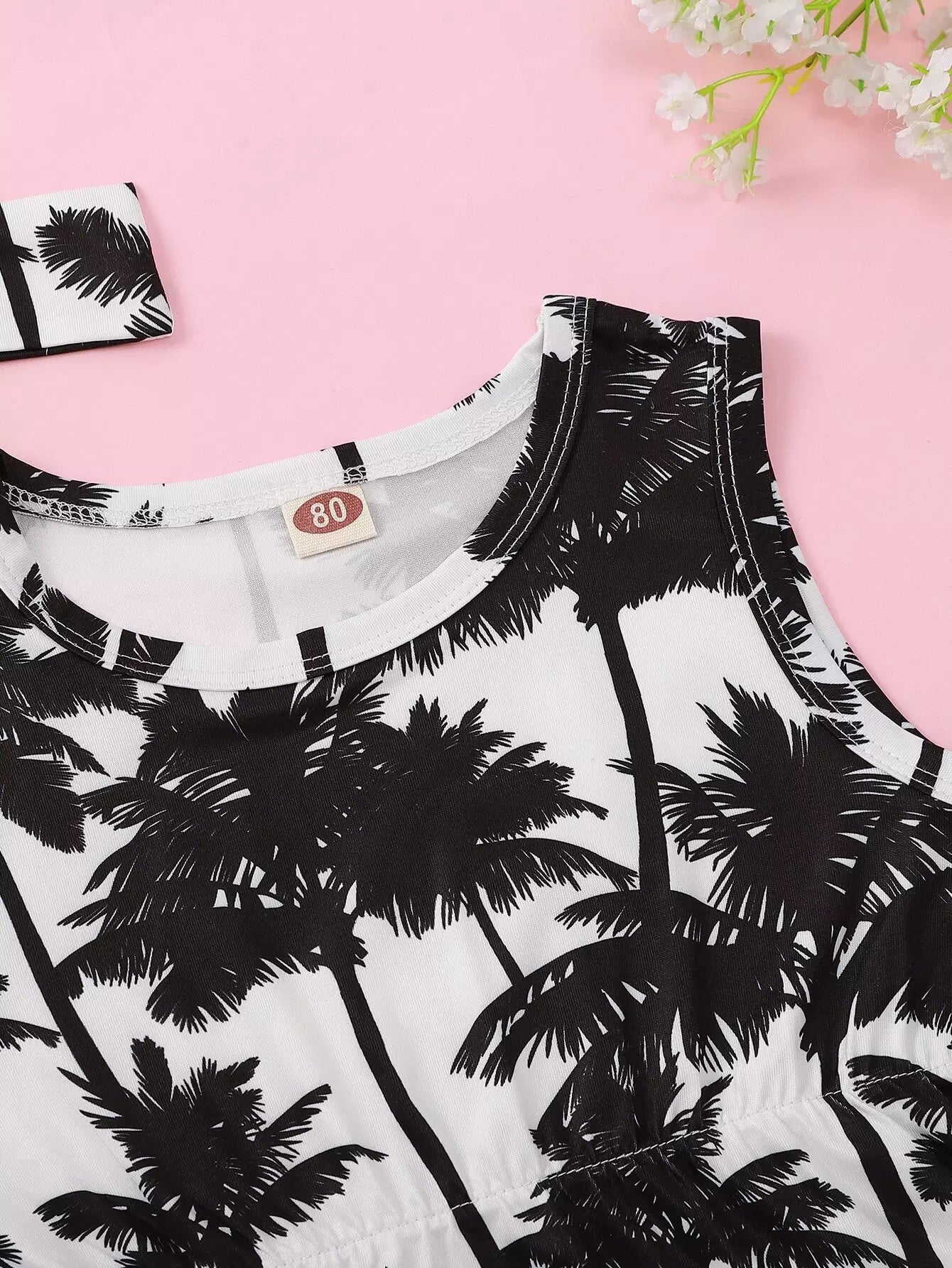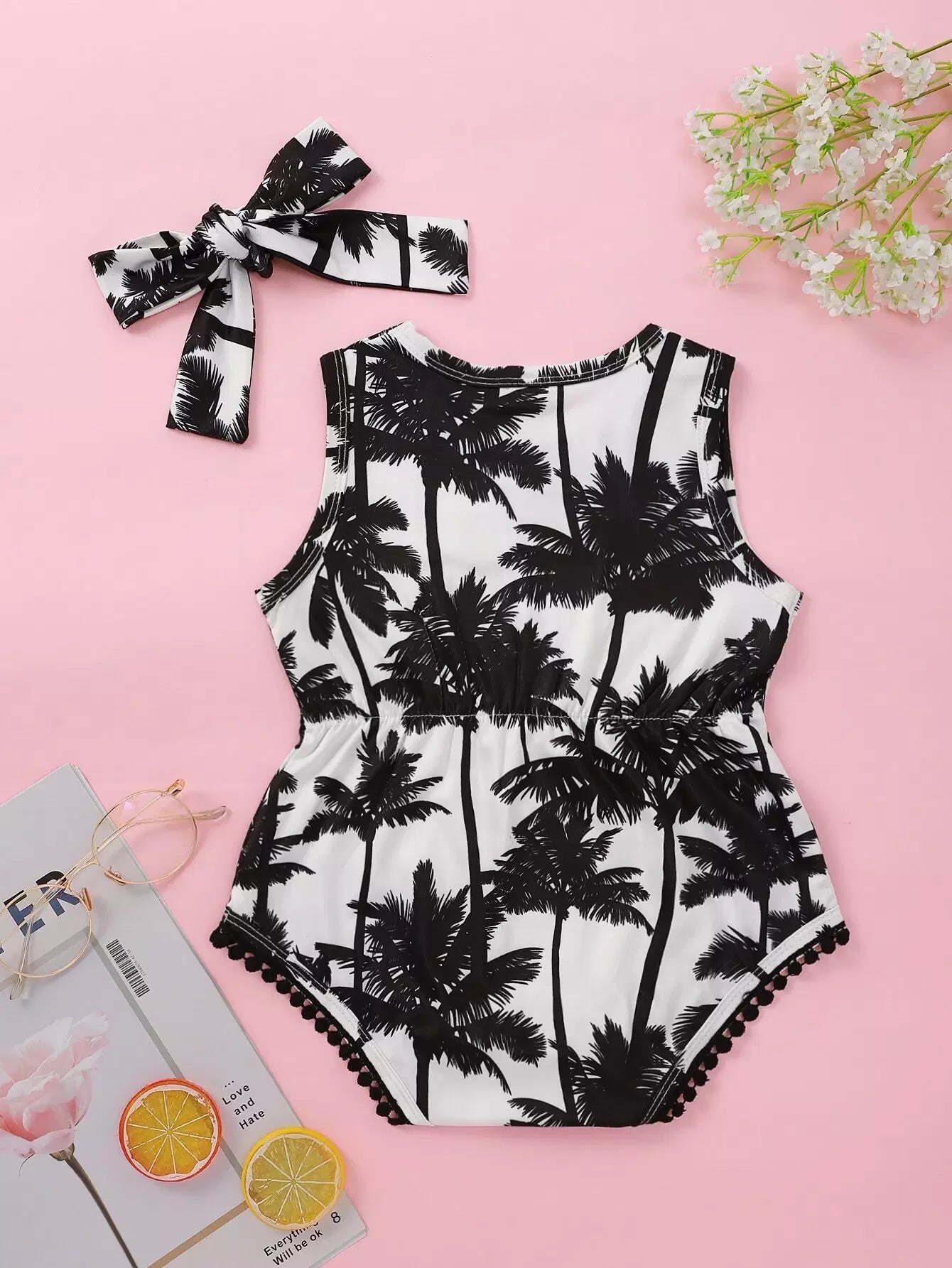 لباس قطعة واحدة للطفلة الرضيعة بطبعة شجرة النخيل وعصابة رأس