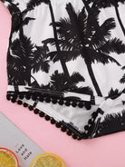 الأطفال - بدلة قطعة واحدة وعصابة رأس بطبعة شجرة النخيل للفتيات الصغيرات