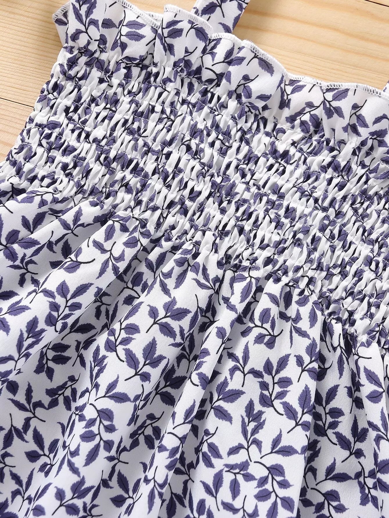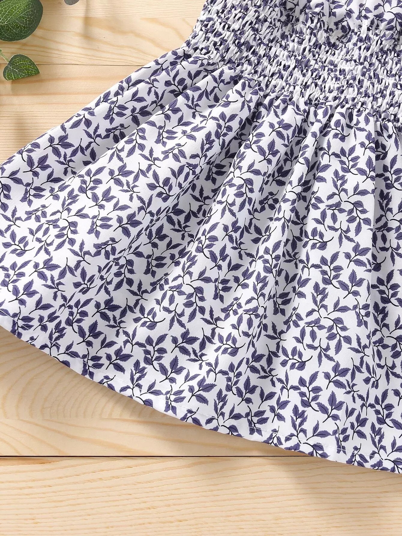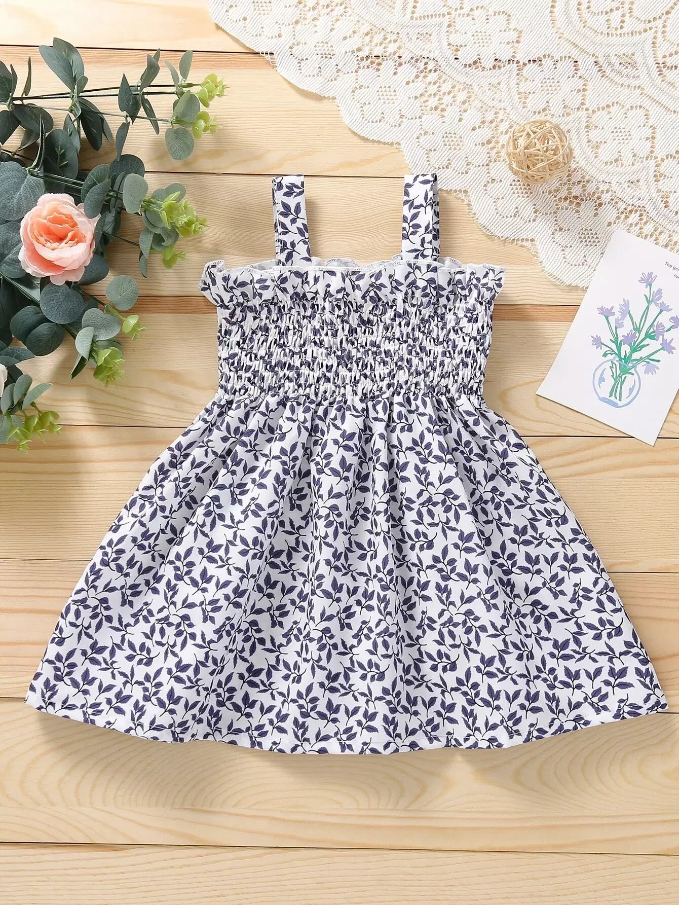 فستان كامي بطبعة نباتات للطفلة الرضيعة بشريط كاريه