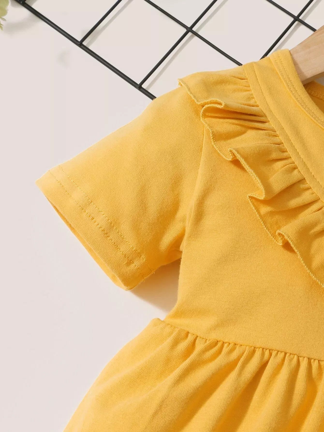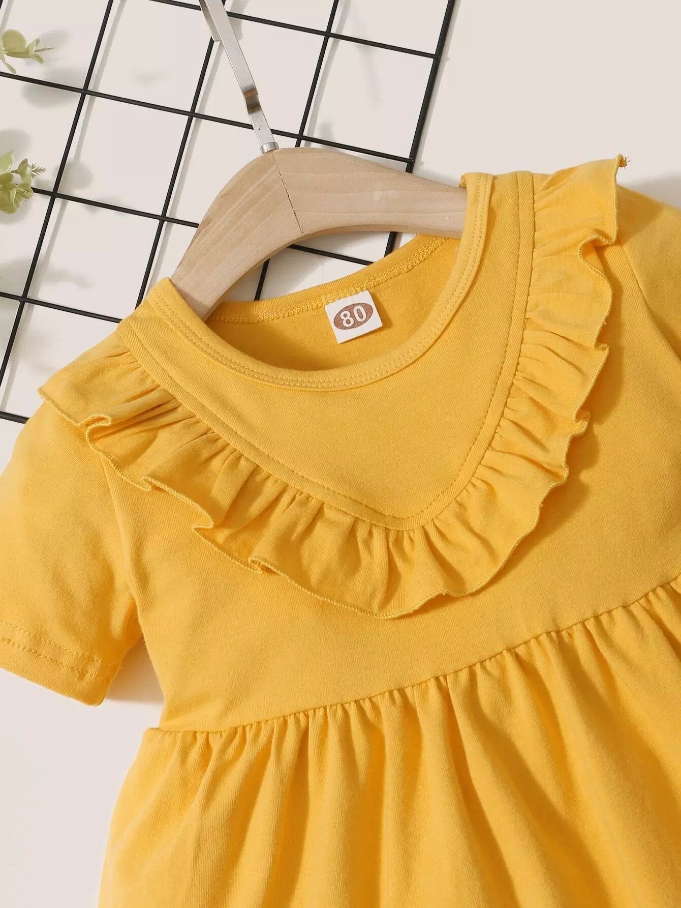 فستان سادة بحواف مكشكشة للطفلة الرضيعة