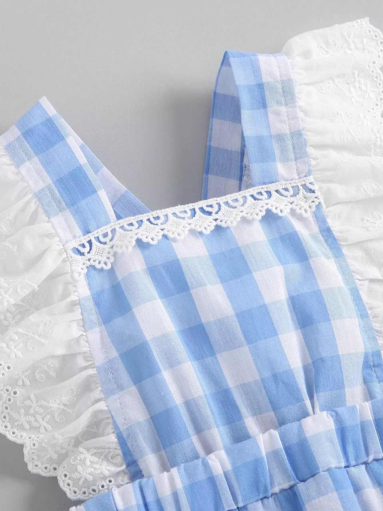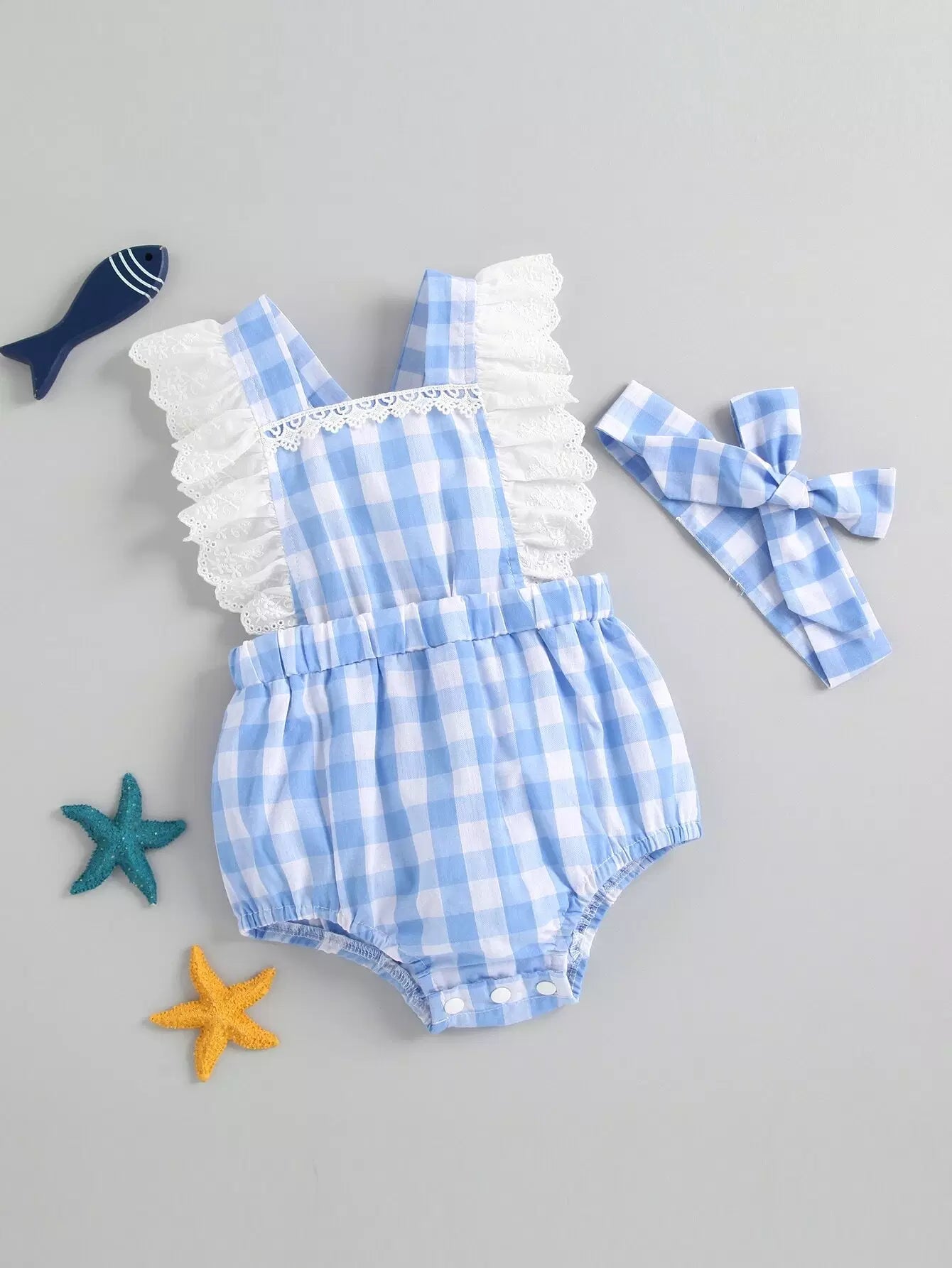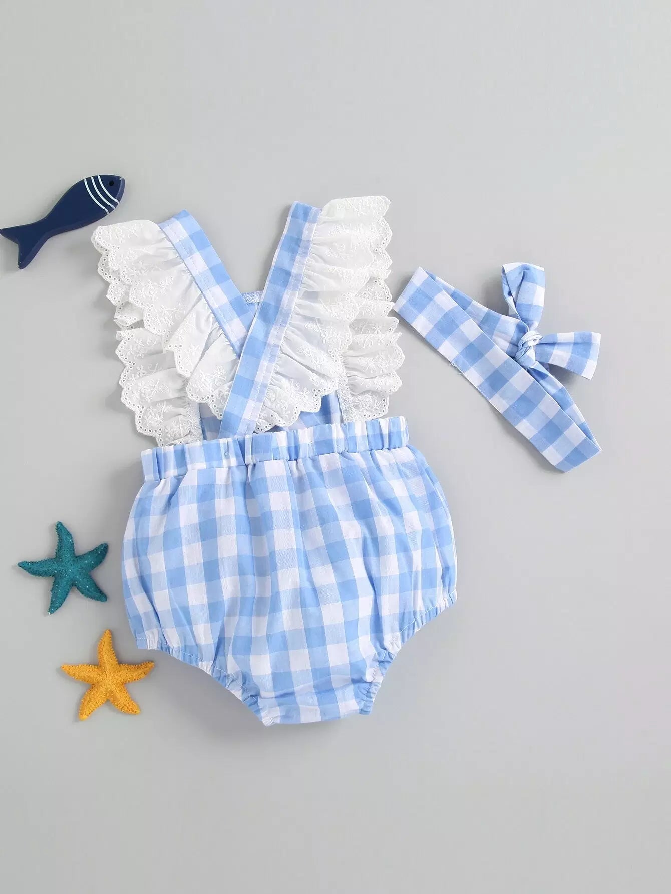 لباس قطعة واحدة للطفلة الرضيعة شيفي كشكش قطني مكشكش مع عصابة للرأس