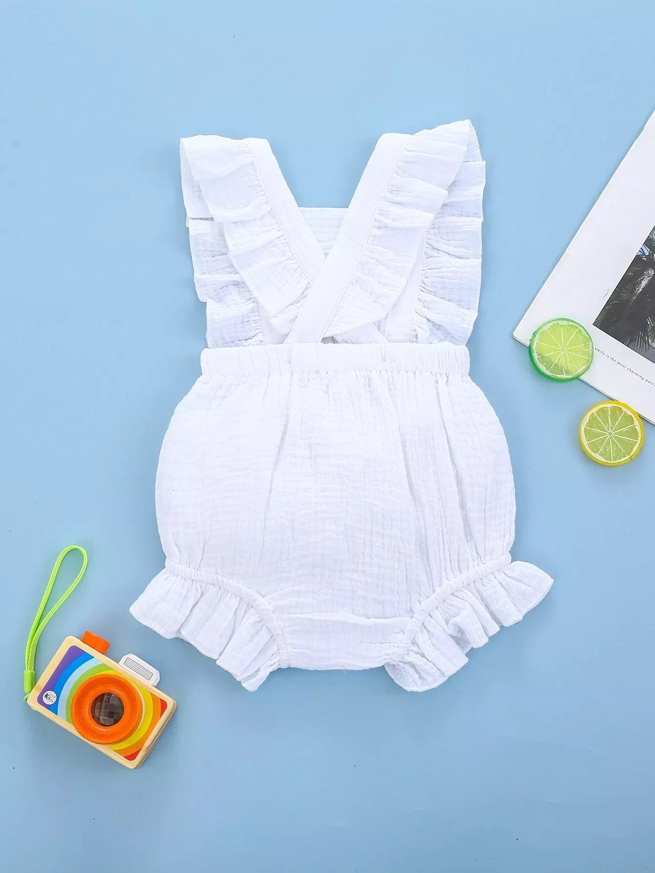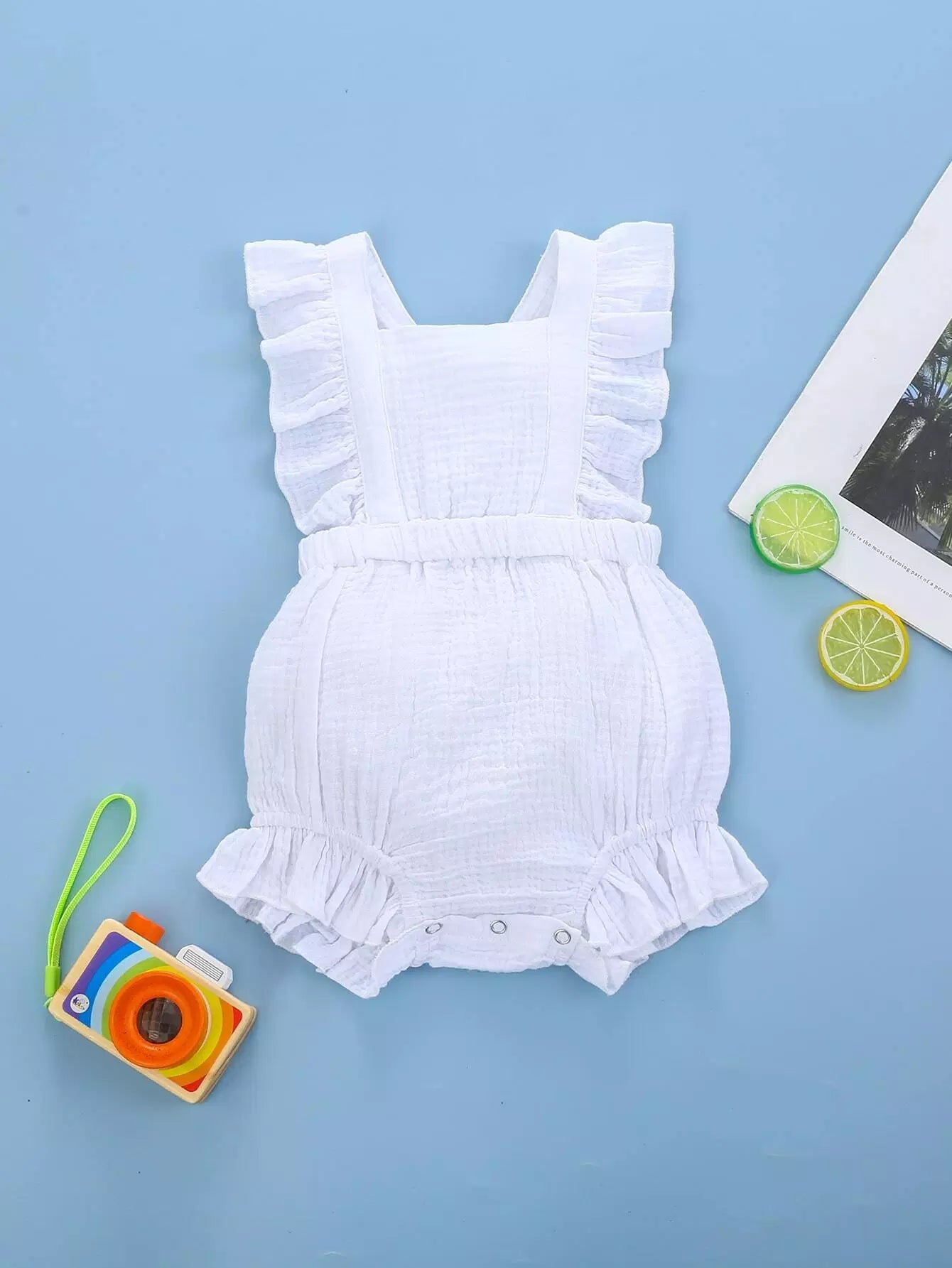 لباس قطعة واحدة مكشكشش سادة للطفلة الرضيعة