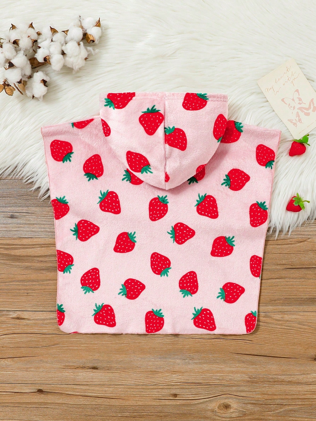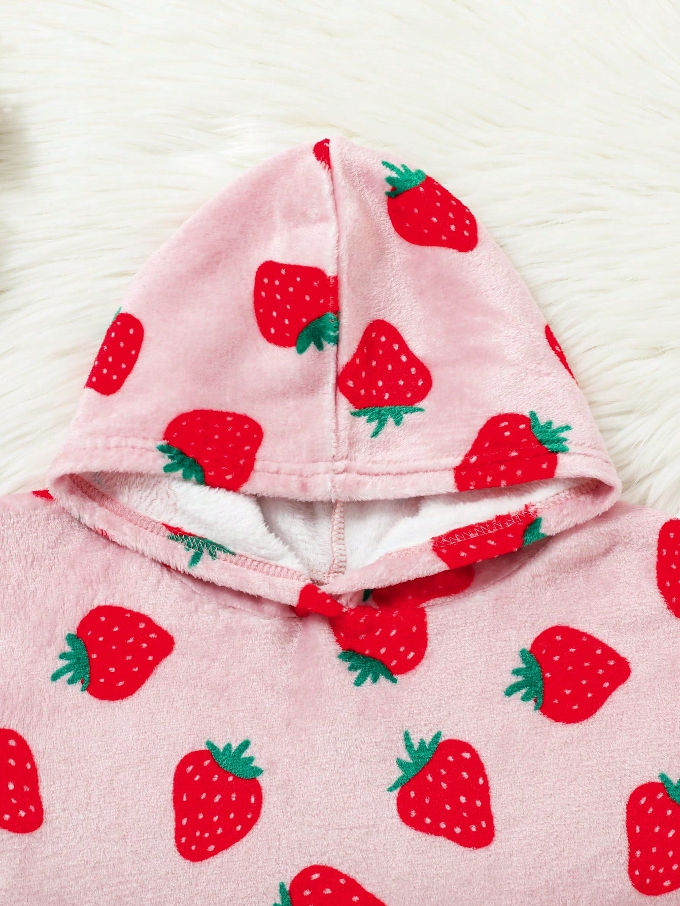 Baby Girl Strawberry Pattern Hooded Comfortable Flannel Absorbent Robe, Pajamas, Blanket, Suitable For