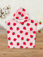 رداء مريح من الفلانيل بغطاء رأس ونقشة الفراولة للبنات، بيجامات، بطانية، مناسب لـ